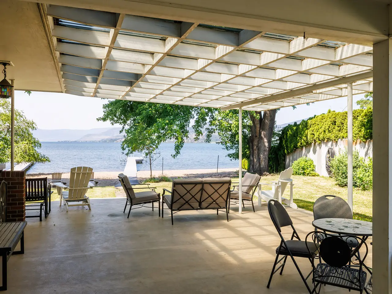 Listed by Unison Jane Hoffman Realty | Prime lakeshore living in Kelowna’s Lower Mission. A rare offering of level lakeshore with spectacular “Hawaiian” golden sand in one of Kelowna’s most coveted neighborhoods. Set on 0.46 acres, this gated estate captures breathtaking lake, mountain, and city views with coveted southwest exposure. Designed for effortless indoor-outdoor living, the generous lakeside patio with a fireplace is perfect for evening entertaining. The spacious living and dining rooms showcase uninterrupted lake views, while a cozy family room offers serene garden vistas. The main level features a luxurious primary bed with ensuite, complemented by 4 additional bedrooms upstairs, ideal for hosting family and friends. Enjoy the best of Okanagan living with a dock featuring composite decking and a boat lift, a 768 sq. ft. detached garage, and RV parking. Mature landscaping, lush gardens, and a private, fenced setting create a true oasis just steps from the vibrant Pandosy Village. An unparalleled opportunity to live the ultimate beach house lifestyle, walkable to shops, dining, schools, and amenities.