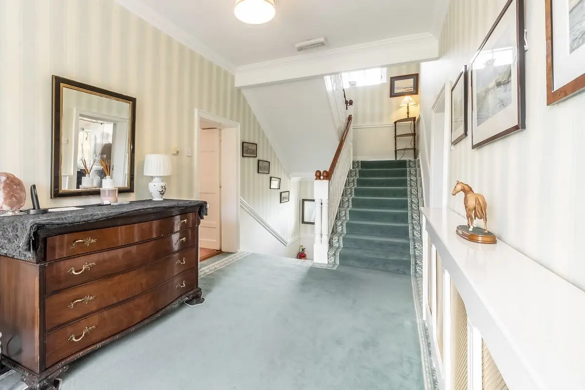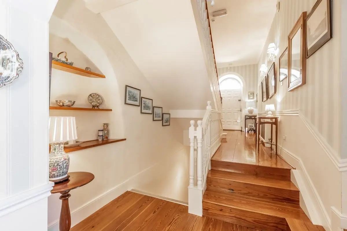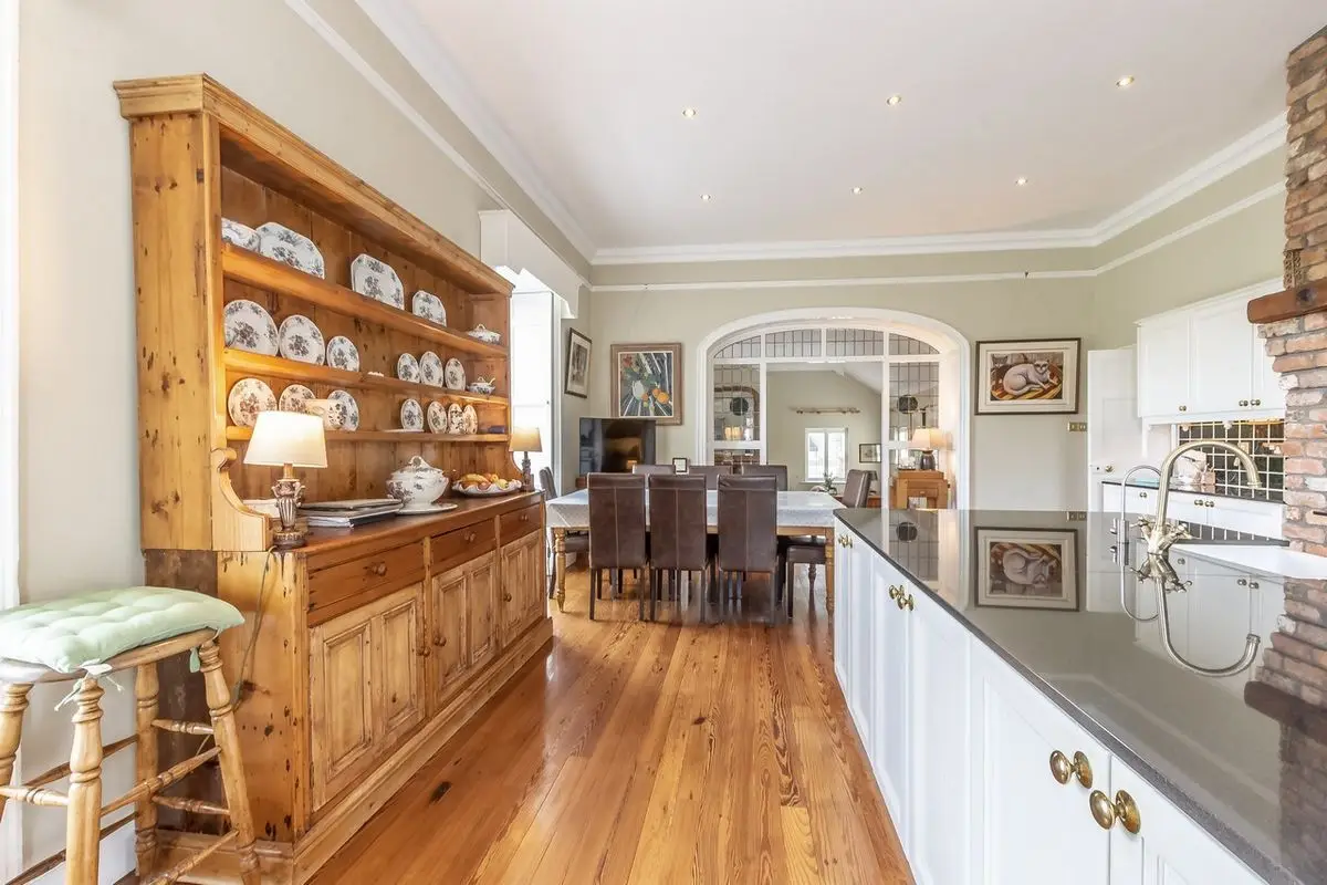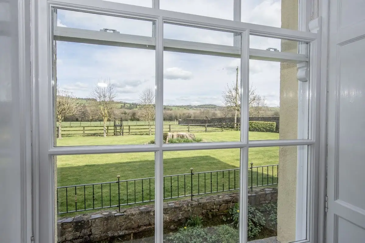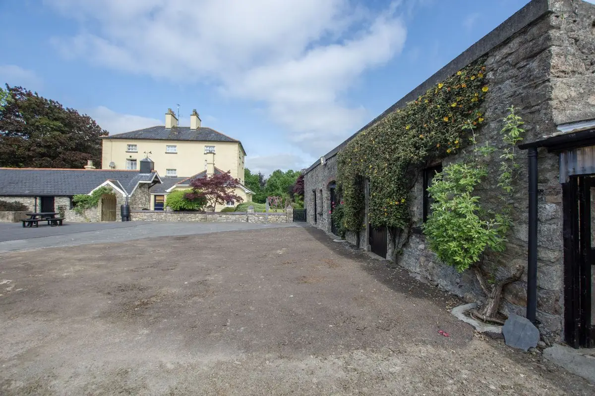 Fanningstown House is approached through wrought iron gates mounted on cut stone pillars with curved side walls with wrought iron railings which lead to a long tree lined post and railed avenue to gravel forecourt. Fanningstown House is a classic Georgian three-story over semi-basement house dating from about 1765 which was close to dereliction when the current vendors purchased it. They undertook an eighteen-month restoration in 1996/1997. Work included re-roofing, new fenestration, re-wiring and re-plumbing and the conversion of the immediate outoffices to habitable accommodation. Fanningstown House represents just about the perfect combination of period character and modern living. The house, totally restored and tastefully extended, is set central to its lands and surrounded by post and rail paddocks.
