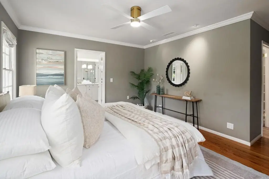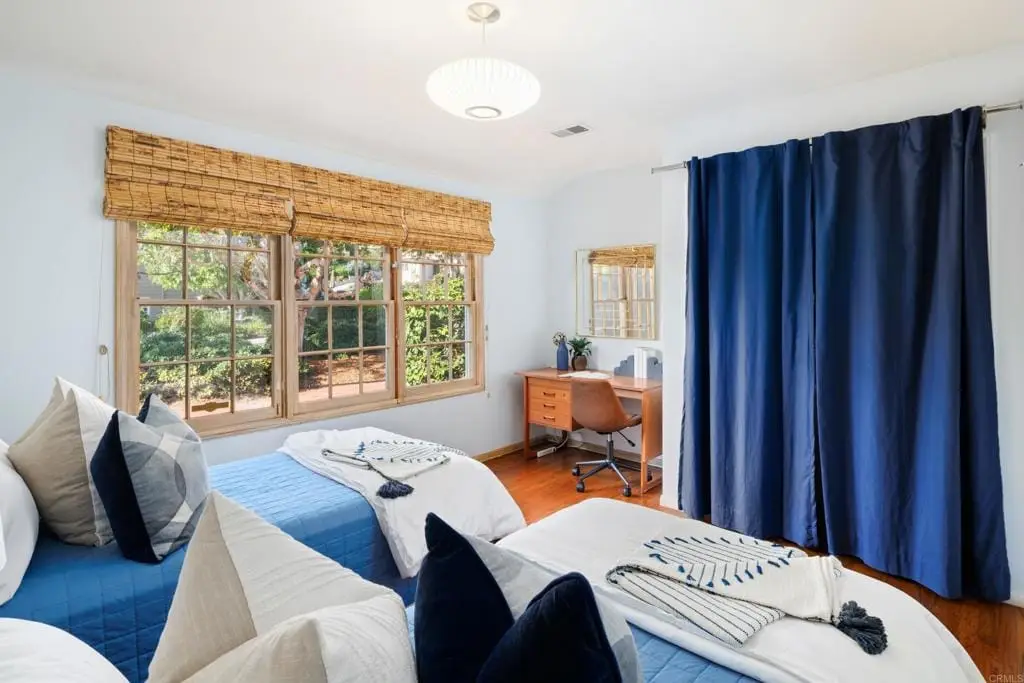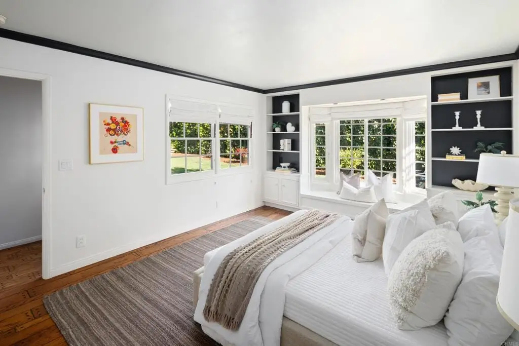 Character defines this Nantucket-style home situated on a flat, almost quarter acre corner lot in coveted Upper Hermosa. Cedar shingles and wood siding with a rich patina set the tone for the craftsmanship within, highlighted by custom built-ins throughout, pegged hardwood floors, detailed dentil mouldings and window benches. The kitchen was fully transformed in 2018 with artisan cabinetry, quartzite countertops, Sub-Zero refrigerator, Dacor ovens, and Miele cooktop to create a modern space that enhances the style, functionality and flow. Open-beamed ceilings, clerestory windows and French doors invite an abundance of natural light while seamlessly connecting to the private, verdant backyard with lush landscaping and heirloom fruit trees (mango, pomegranate, fig, lemon, lime, mandarin & avocado). Single-level living with just a few steps throughout, this home has 4 bedrooms & 4 bathrooms, one of which is a perfect guest suite, and magically blends history, charm and modern elements. Located in one of La Jolla's most sought-after neighborhoods with tree-lined curvilinear streets, and walking distance to beaches, the bike path, Bird Rock & The Village!