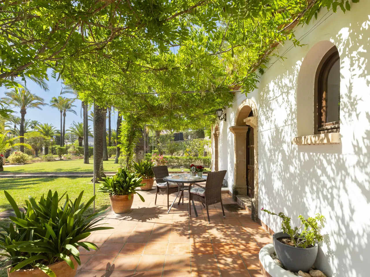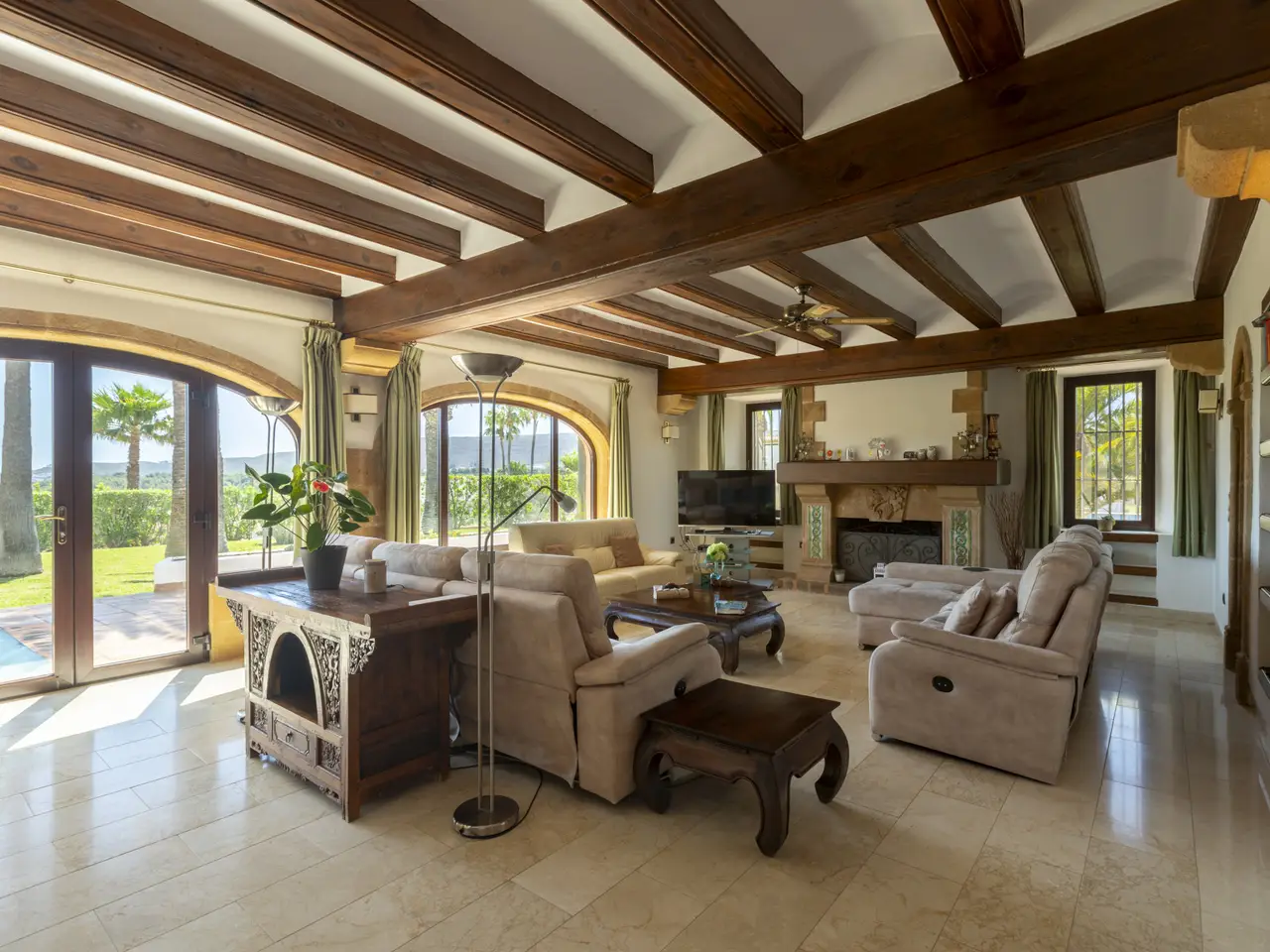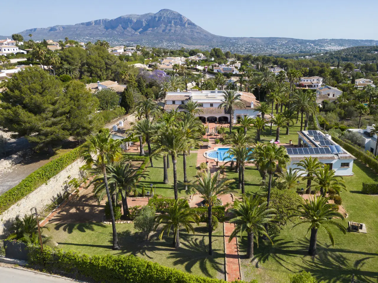 It has a built area of 1,020 square meters, approximately, and a large land of 5,831 square meters totally flat with a wide variety of native vegetation and palm trees, with open views to the valley, located a few meters from the Golf de Jávea and just five minutes from the center of the city of Jávea, this property offers ample space and privacy to enjoy a luxurious lifestyle. With spacious spaces, it has 13 bedrooms and 10 bathrooms, making it the perfect choice for a large family or for those looking for an additional space for guests. It is worth noting that it has an interior patio, a large terrace covered with arches with coarse stone of Javea and a large cellar on the basement floor with large living room, where you can entertain meetings. In addition, the property has a private pool of 16x7 meters, and an area for summer dining next to the pool. It has a well to supply the irrigation of the garden. It has underfloor heating, air conditioning and solar panels. This villa is in excellent condition and offers open views and a privileged location in one of the most exclusive areas of Jávea. Do not miss the opportunity to acquire this unique property and enjoy a luxurious life on the Costa Blanca.