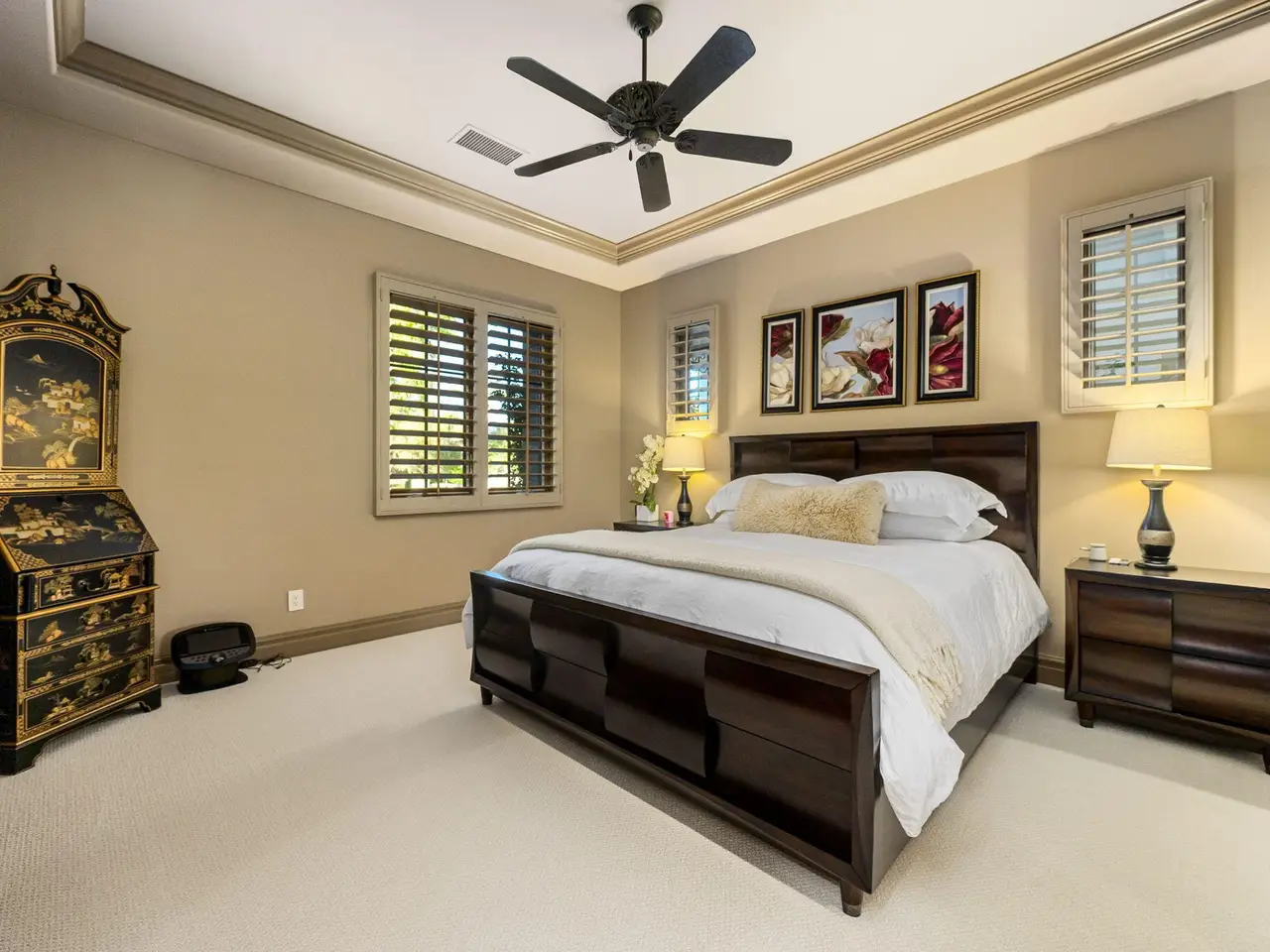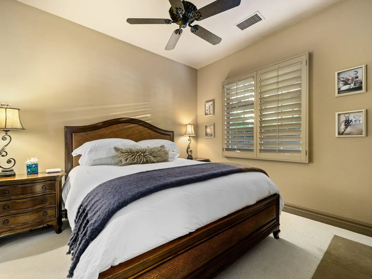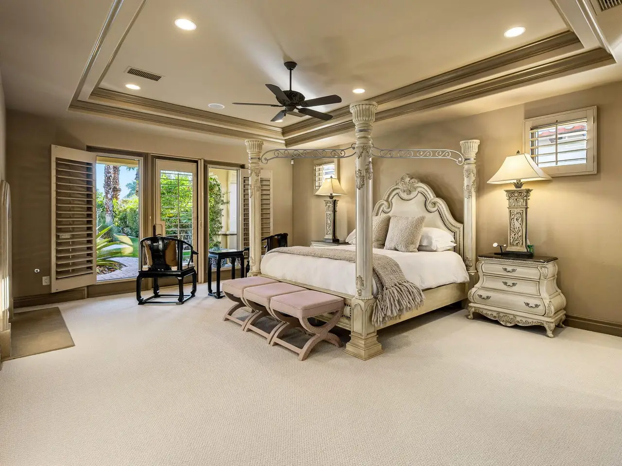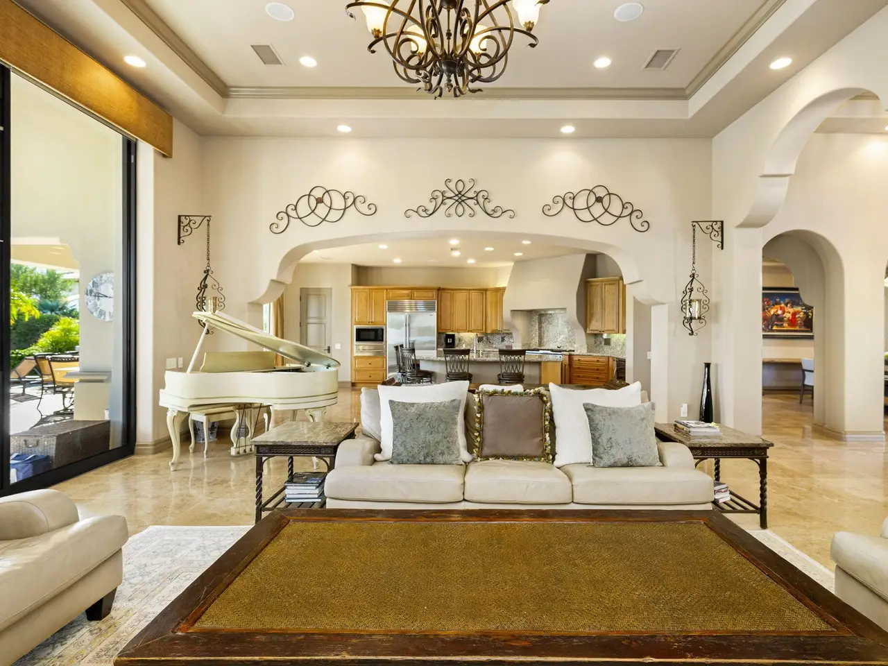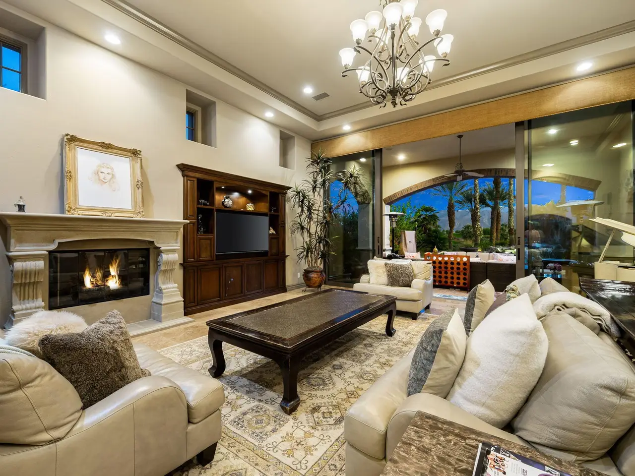 Live every day like a luxury vacation in the prestigious guard-gated community of Andalusia at Coral Mountain, where resort comforts, serene desert beauty, and first-class club amenities blend into an exceptional way of life. Nestled against the dramatic Santa Rosa & Coral Mountains, this private residence offers a peaceful sanctuary with unforgettable natural surroundings and seamless indoor-outdoor living designed to inspire relaxation and connection.Wake to quiet mornings framed by panoramic mountain views, and take in the soft glow of sunrise over the fairway. Enjoy coffee on your patio as the sun warms the peaks, then step out your door and embrace a lifestyle tailored to wellness, leisure, and social connection. With full social membership included in the HOA, residents enjoy access to the clubhouse, dining venues, state-of-the-art fitness & wellness facilities, racquet sports, resort pool, spa services, dog park, and miles of scenic walking and biking trails. A stunning 18-hole Rees Jones championship golf course winds through the community, with optional golf memberships available.Inside the home, tall ceilings, abundant natural light, and large view windows create a refined yet relaxed atmosphere ideal for everyday comfort and entertaining. The kitchen serves as the heart of the home, flowing into generous great-room and dining spaces perfect for gathering with friends after a day on the courts, links, or trails. The private primary retreat offers a peaceful haven for unwinding, complete with spa-inspired bath and dual walk-in closets. Two additional ensuite guest rooms in the main house ensure comfort for visitors, while the two-room casita with living room and bedroom offers the perfect space for extended stays or private work/wellness use.Step outside to your own personal resort environment. A sparkling pool and spa with cascading waterfalls create a tranquil backdrop for sun-soaked afternoons, while the built-in BBQ and covered patio areas set the stage for evening dining under glowing mountain silhouettes. Lush landscaping, open skies, and breathtaking views create a sense of calm and escape that defines life at Andalusia.Whether lounging poolside, enjoying a fitness class, connecting with neighbors at community events, or ending the day with golden mountain sunsets, this is desert luxury living at its finest a home where every moment feels like a retreat.