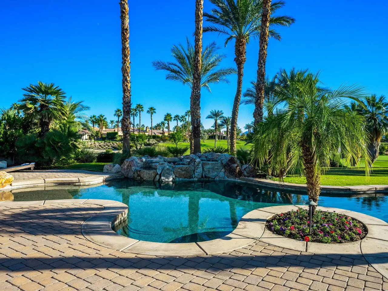 Resort-style pool with waterfalls