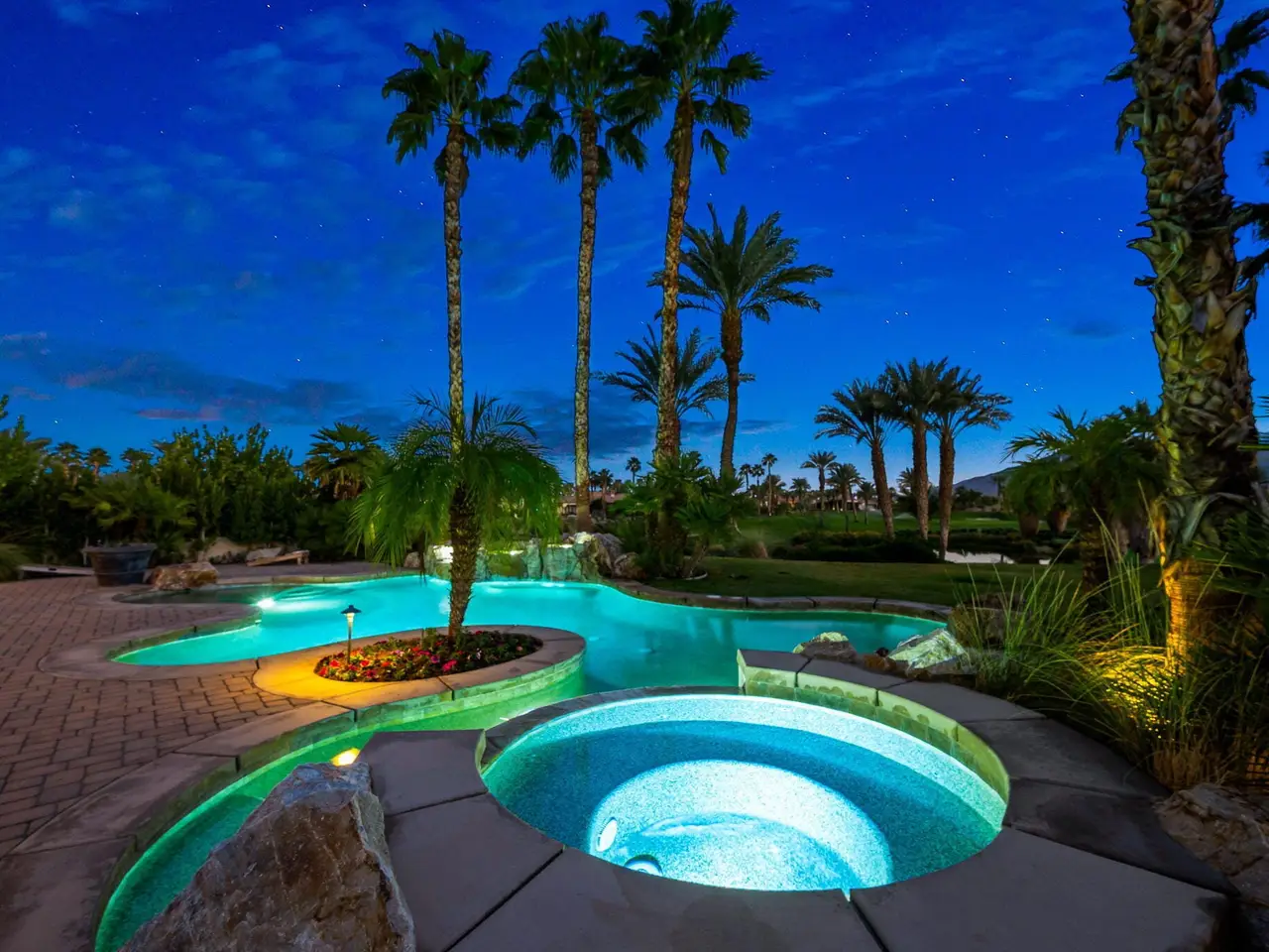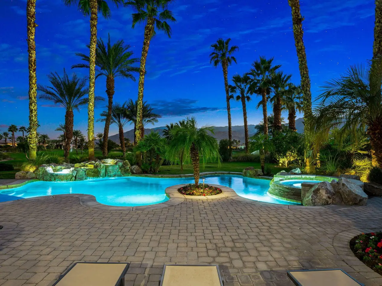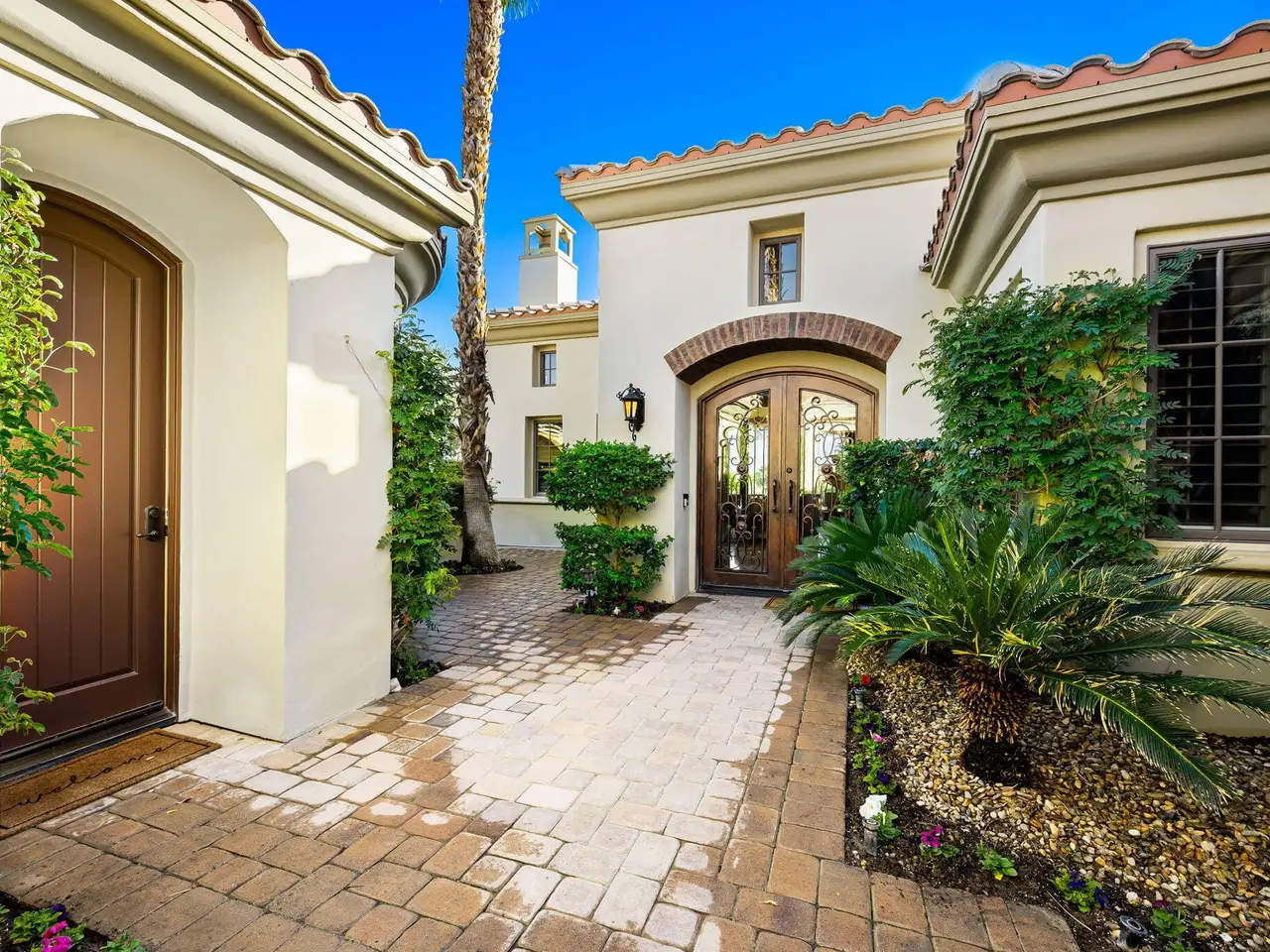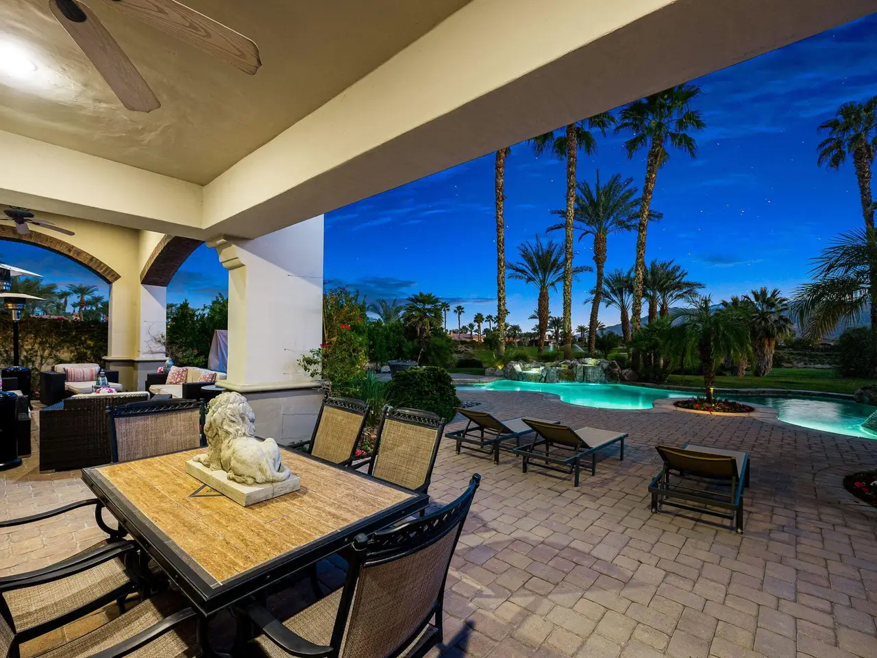 Live every day like a luxury vacation in the prestigious guard-gated community of Andalusia at Coral Mountain, where resort comforts, serene desert beauty, and first-class club amenities blend into an exceptional way of life. Nestled against the dramatic Santa Rosa & Coral Mountains, this private residence offers a peaceful sanctuary with unforgettable natural surroundings and seamless indoor-outdoor living designed to inspire relaxation and connection.Wake to quiet mornings framed by panoramic mountain views, and take in the soft glow of sunrise over the fairway. Enjoy coffee on your patio as the sun warms the peaks, then step out your door and embrace a lifestyle tailored to wellness, leisure, and social connection. With full social membership included in the HOA, residents enjoy access to the clubhouse, dining venues, state-of-the-art fitness & wellness facilities, racquet sports, resort pool, spa services, dog park, and miles of scenic walking and biking trails. A stunning 18-hole Rees Jones championship golf course winds through the community, with optional golf memberships available.Inside the home, tall ceilings, abundant natural light, and large view windows create a refined yet relaxed atmosphere ideal for everyday comfort and entertaining. The kitchen serves as the heart of the home, flowing into generous great-room and dining spaces perfect for gathering with friends after a day on the courts, links, or trails. The private primary retreat offers a peaceful haven for unwinding, complete with spa-inspired bath and dual walk-in closets. Two additional ensuite guest rooms in the main house ensure comfort for visitors, while the two-room casita with living room and bedroom offers the perfect space for extended stays or private work/wellness use.Step outside to your own personal resort environment. A sparkling pool and spa with cascading waterfalls create a tranquil backdrop for sun-soaked afternoons, while the built-in BBQ and covered patio areas set the stage for evening dining under glowing mountain silhouettes. Lush landscaping, open skies, and breathtaking views create a sense of calm and escape that defines life at Andalusia.Whether lounging poolside, enjoying a fitness class, connecting with neighbors at community events, or ending the day with golden mountain sunsets, this is desert luxury living at its finest a home where every moment feels like a retreat.