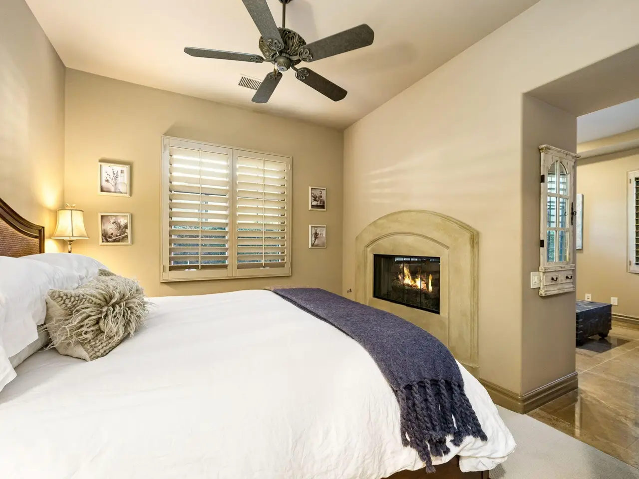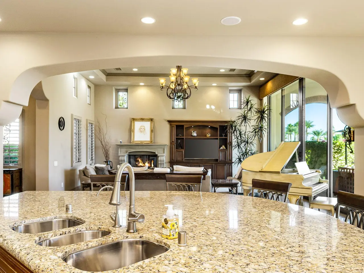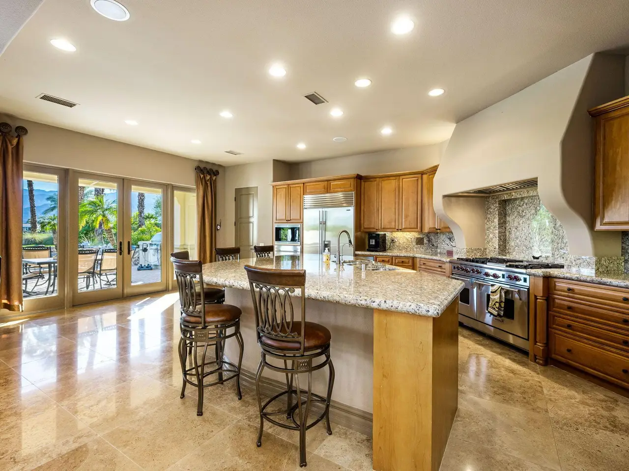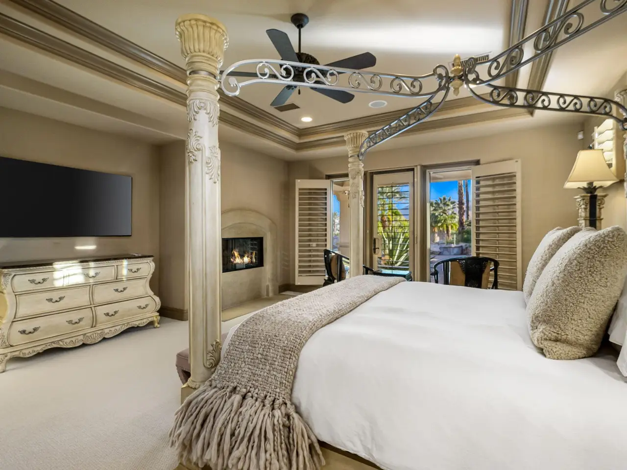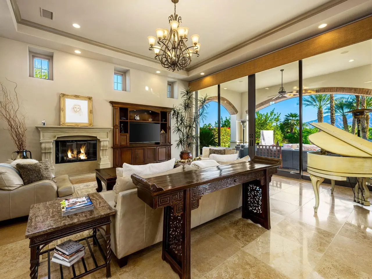 Live every day like a luxury vacation in the prestigious guard-gated community of Andalusia at Coral Mountain, where resort comforts, serene desert beauty, and first-class club amenities blend into an exceptional way of life. Nestled against the dramatic Santa Rosa & Coral Mountains, this private residence offers a peaceful sanctuary with unforgettable natural surroundings and seamless indoor-outdoor living designed to inspire relaxation and connection.Wake to quiet mornings framed by panoramic mountain views, and take in the soft glow of sunrise over the fairway. Enjoy coffee on your patio as the sun warms the peaks, then step out your door and embrace a lifestyle tailored to wellness, leisure, and social connection. With full social membership included in the HOA, residents enjoy access to the clubhouse, dining venues, state-of-the-art fitness & wellness facilities, racquet sports, resort pool, spa services, dog park, and miles of scenic walking and biking trails. A stunning 18-hole Rees Jones championship golf course winds through the community, with optional golf memberships available.Inside the home, tall ceilings, abundant natural light, and large view windows create a refined yet relaxed atmosphere ideal for everyday comfort and entertaining. The kitchen serves as the heart of the home, flowing into generous great-room and dining spaces perfect for gathering with friends after a day on the courts, links, or trails. The private primary retreat offers a peaceful haven for unwinding, complete with spa-inspired bath and dual walk-in closets. Two additional ensuite guest rooms in the main house ensure comfort for visitors, while the two-room casita with living room and bedroom offers the perfect space for extended stays or private work/wellness use.Step outside to your own personal resort environment. A sparkling pool and spa with cascading waterfalls create a tranquil backdrop for sun-soaked afternoons, while the built-in BBQ and covered patio areas set the stage for evening dining under glowing mountain silhouettes. Lush landscaping, open skies, and breathtaking views create a sense of calm and escape that defines life at Andalusia.Whether lounging poolside, enjoying a fitness class, connecting with neighbors at community events, or ending the day with golden mountain sunsets, this is desert luxury living at its finest a home where every moment feels like a retreat.