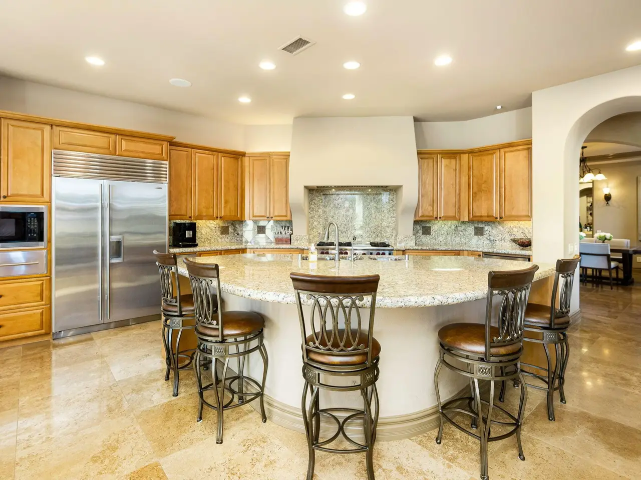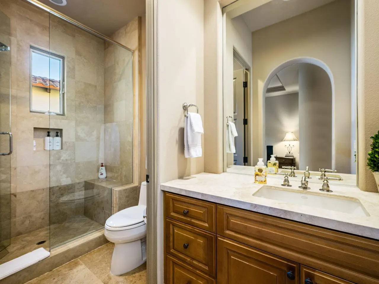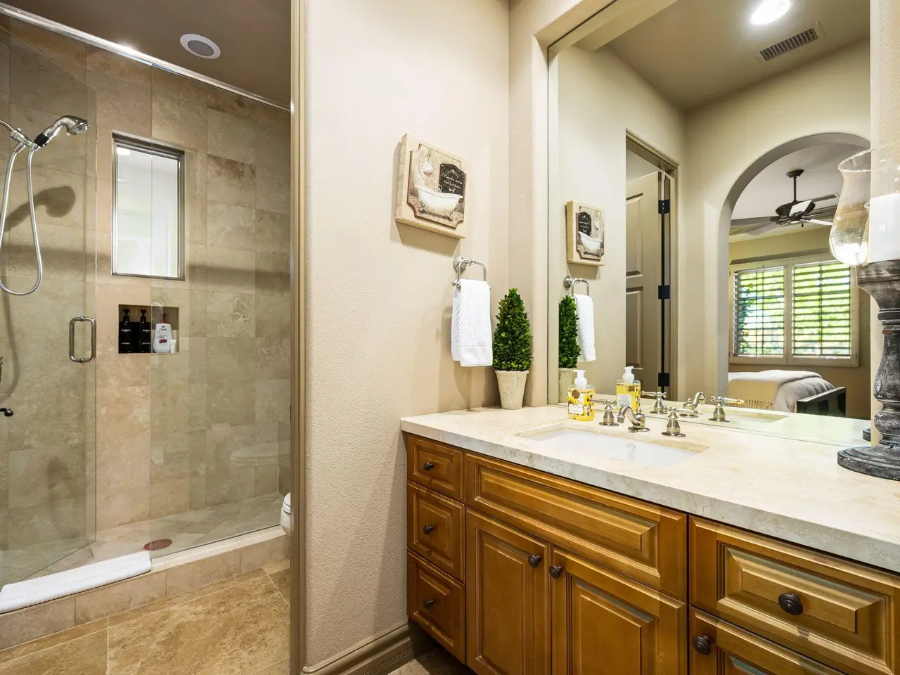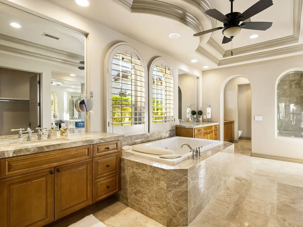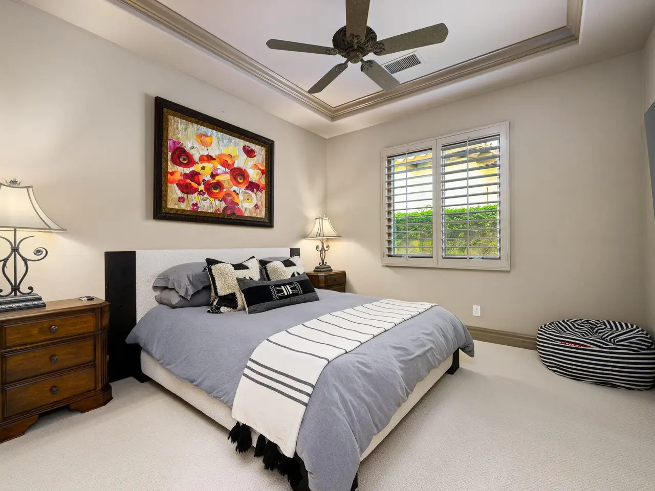 Live every day like a luxury vacation in the prestigious guard-gated community of Andalusia at Coral Mountain, where resort comforts, serene desert beauty, and first-class club amenities blend into an exceptional way of life. Nestled against the dramatic Santa Rosa & Coral Mountains, this private residence offers a peaceful sanctuary with unforgettable natural surroundings and seamless indoor-outdoor living designed to inspire relaxation and connection.Wake to quiet mornings framed by panoramic mountain views, and take in the soft glow of sunrise over the fairway. Enjoy coffee on your patio as the sun warms the peaks, then step out your door and embrace a lifestyle tailored to wellness, leisure, and social connection. With full social membership included in the HOA, residents enjoy access to the clubhouse, dining venues, state-of-the-art fitness & wellness facilities, racquet sports, resort pool, spa services, dog park, and miles of scenic walking and biking trails. A stunning 18-hole Rees Jones championship golf course winds through the community, with optional golf memberships available.Inside the home, tall ceilings, abundant natural light, and large view windows create a refined yet relaxed atmosphere ideal for everyday comfort and entertaining. The kitchen serves as the heart of the home, flowing into generous great-room and dining spaces perfect for gathering with friends after a day on the courts, links, or trails. The private primary retreat offers a peaceful haven for unwinding, complete with spa-inspired bath and dual walk-in closets. Two additional ensuite guest rooms in the main house ensure comfort for visitors, while the two-room casita with living room and bedroom offers the perfect space for extended stays or private work/wellness use.Step outside to your own personal resort environment. A sparkling pool and spa with cascading waterfalls create a tranquil backdrop for sun-soaked afternoons, while the built-in BBQ and covered patio areas set the stage for evening dining under glowing mountain silhouettes. Lush landscaping, open skies, and breathtaking views create a sense of calm and escape that defines life at Andalusia.Whether lounging poolside, enjoying a fitness class, connecting with neighbors at community events, or ending the day with golden mountain sunsets, this is desert luxury living at its finest a home where every moment feels like a retreat.
