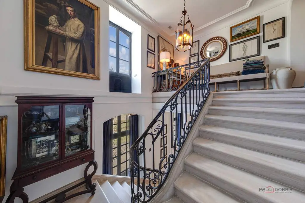 The "Ralph H. Poole House" stands as an enduring testament to David Adler's visionary craftsmanship, a cornerstone of architectural excellence, nestled amidst the Illinois prairie. Originally conceived between 1911-14 in collaboration w/Henry Dangler & landscape design by Frederick Law Olmsted, the residence is the essence of a Parisian home transplanted into the heart of the Midwest. As you enter the flowing driveway w/over 8 beautifully manicured acres, you are transported to your own private getaway. Stepping across its threshold, one is immediately enveloped by a sense of symmetry, balance, and proportion that seamlessly intertwines both interior and exterior spaces. Meticulously restored & elevated to its current state of opulence (2017), every facet of the home, from its plumbing & electrical systems, to chimneys & landscape, have all been redone or enhanced, & bears witness in a transformation to its original splendor! The current owner's hands were involved in every element of the design with true thought in bringing the home into the 21st century for living but honoring all of its history! Enter the expansive foyer/gallery with 13 ft ceilings on the main floor, a grand vestibule anchored by a sweeping limestone staircase, adorned w/ an infinity pattern stone floor & wheat & chaff plaster relief adorning the walls. The foyer offers access to the living room, boasting a signature black terrazzo floor, complemented by a marble fireplace and raised paneled walls with an exquisite Baccarat crystal chandelier. Adjacent, the library beckons w/ rich Gum Wood encased bookcases, paneling & marble carved fireplace, w/beautiful white oak flooring. The former music room is now a stunning dining room w/ fireplace, raised plaster walls & stunning white oak flooring adjacent to the family room. The oval sunroom, strategically positioned on the southwest corner, harnesses sunlight throughout the day & seasons, with the opposing side of the home containing the oval family room which now is seamlessly integrated w/the state-of-the-art kitchen, that exudes modern sophistication w/floor-to-ceiling custom cabinets, a waterfall marble island, & top-of-the-line appliances. The butler's pantry is also a wonderful complement for entertaining between the family room, & dining room. The first floor also has a large ensuite bedroom drenched with natural light, with a french door opening to the southern gardens. Adjacent is a beautiful first floor office with lovely southern views as well. There is also an elegant powder room and a large mud room off of the kitchen. Ascending the grand staircase to the second floor reveals a primary bedroom retreat adorned w/ a generous walk-in closet, mirrored double vanities, radiant heated floor & a luxurious frameless glass shower w/Greek key design elements & black/white marble throughout. There are two large bedrooms that share a beautiful bath w/ floating tub/shower, one bedroom that is ensuite & three additional bedrooms that share a beautifully updated full bath and a laundry room w/built-ins on this floor, near the back staircase. The unfinished basement has several large rooms, an original laundry room, dry storage and mechanicals. Outside, the newer pool area beckons w/ a bluestone patio and limestone stairs, with a pool house for your storage needs. The meticulously landscaped grounds feature a terrace patio connecting the home with the two-bedroom coach house. The coach house has a two-car garage, a studio area and second floor private guest apartment (904 sq ft) w/kitchenette, full bath, two bedrooms & living room. There is also an additional detached one +car garage, completing this unparalleled estate of timeless allure and modern convenience. Move right in and enjoy all that this luxurious estate has to offer near schools, parks, and town!