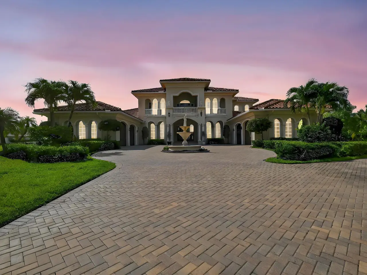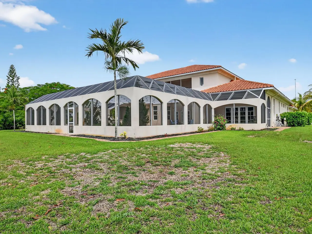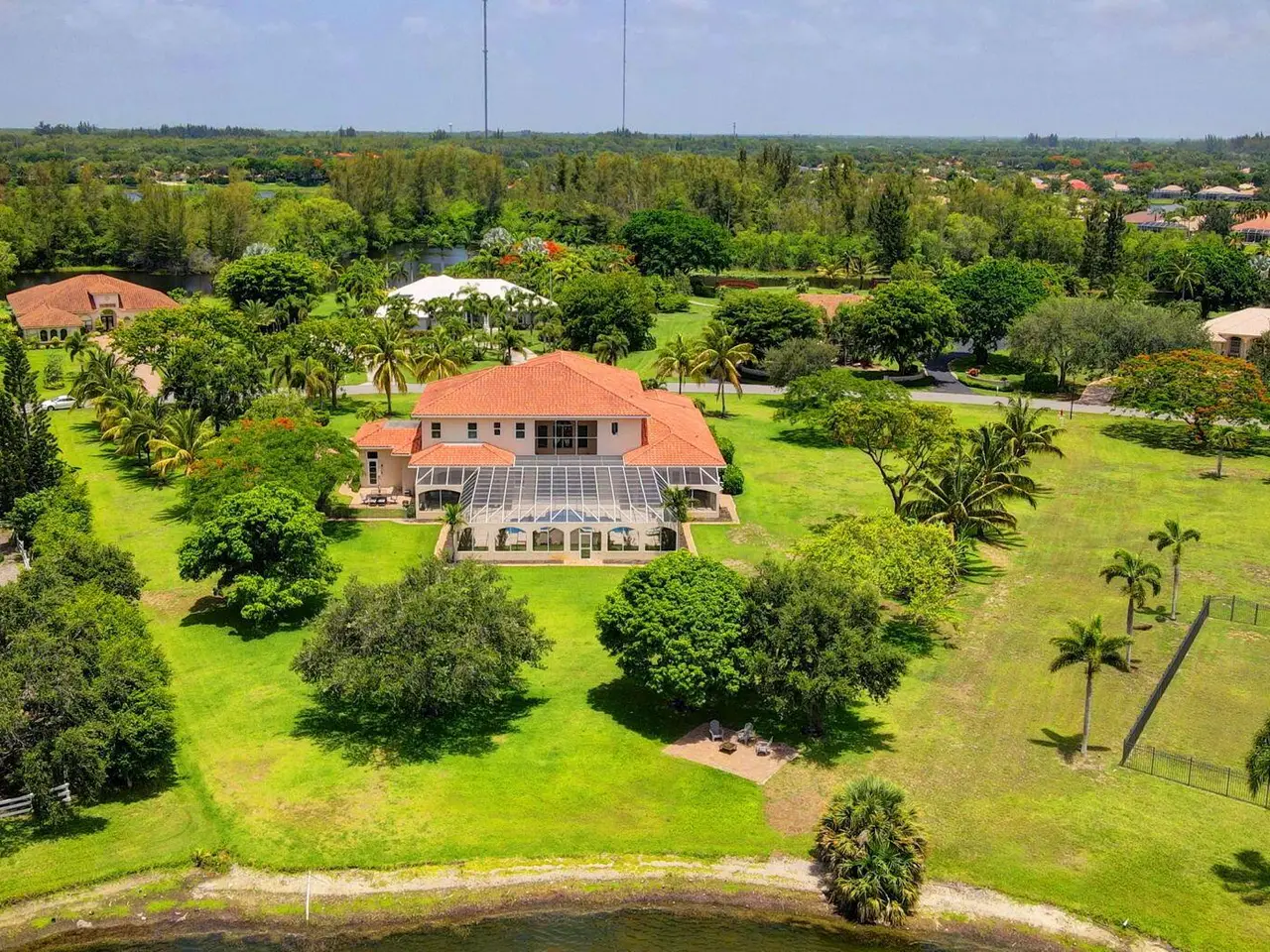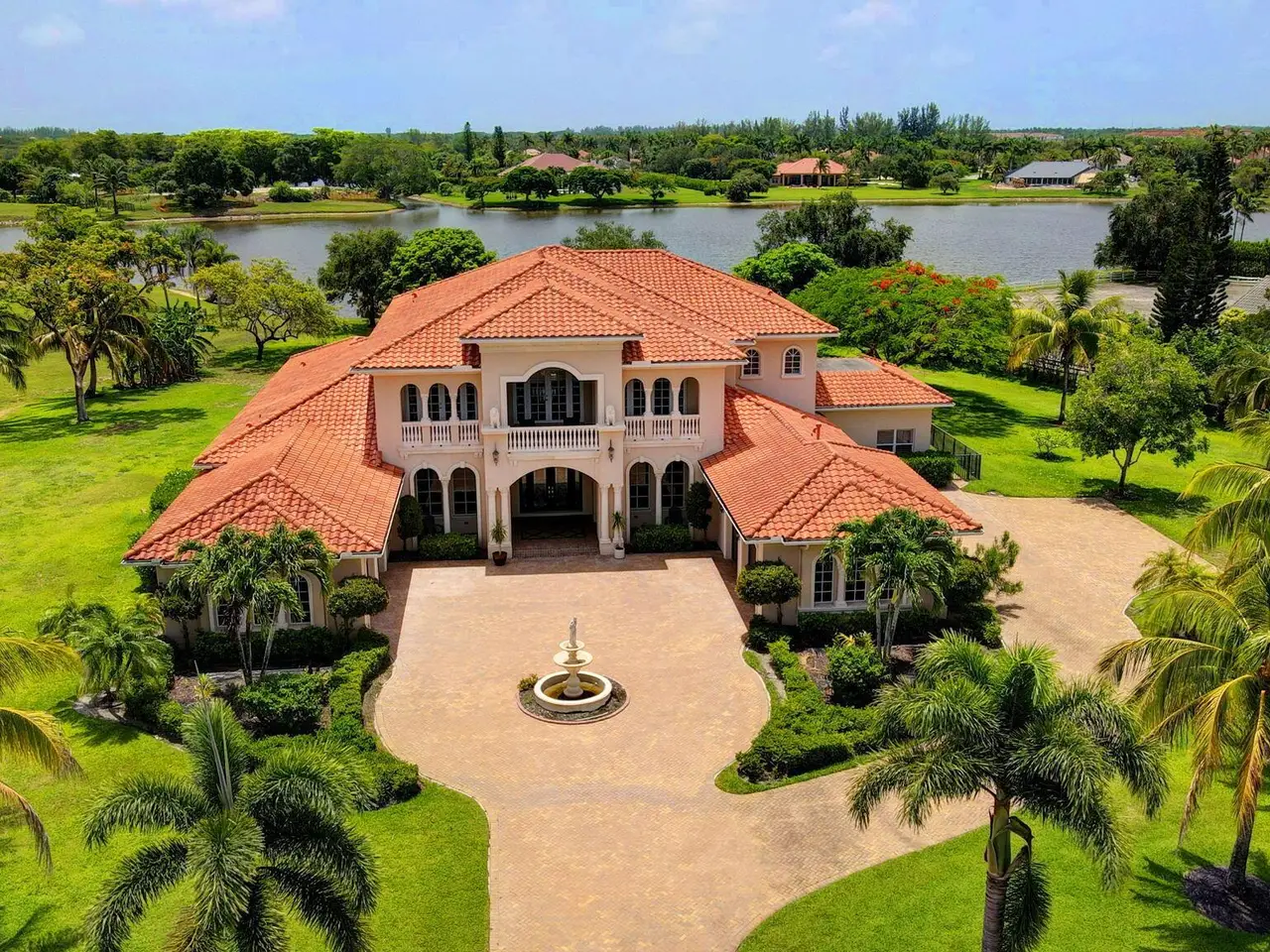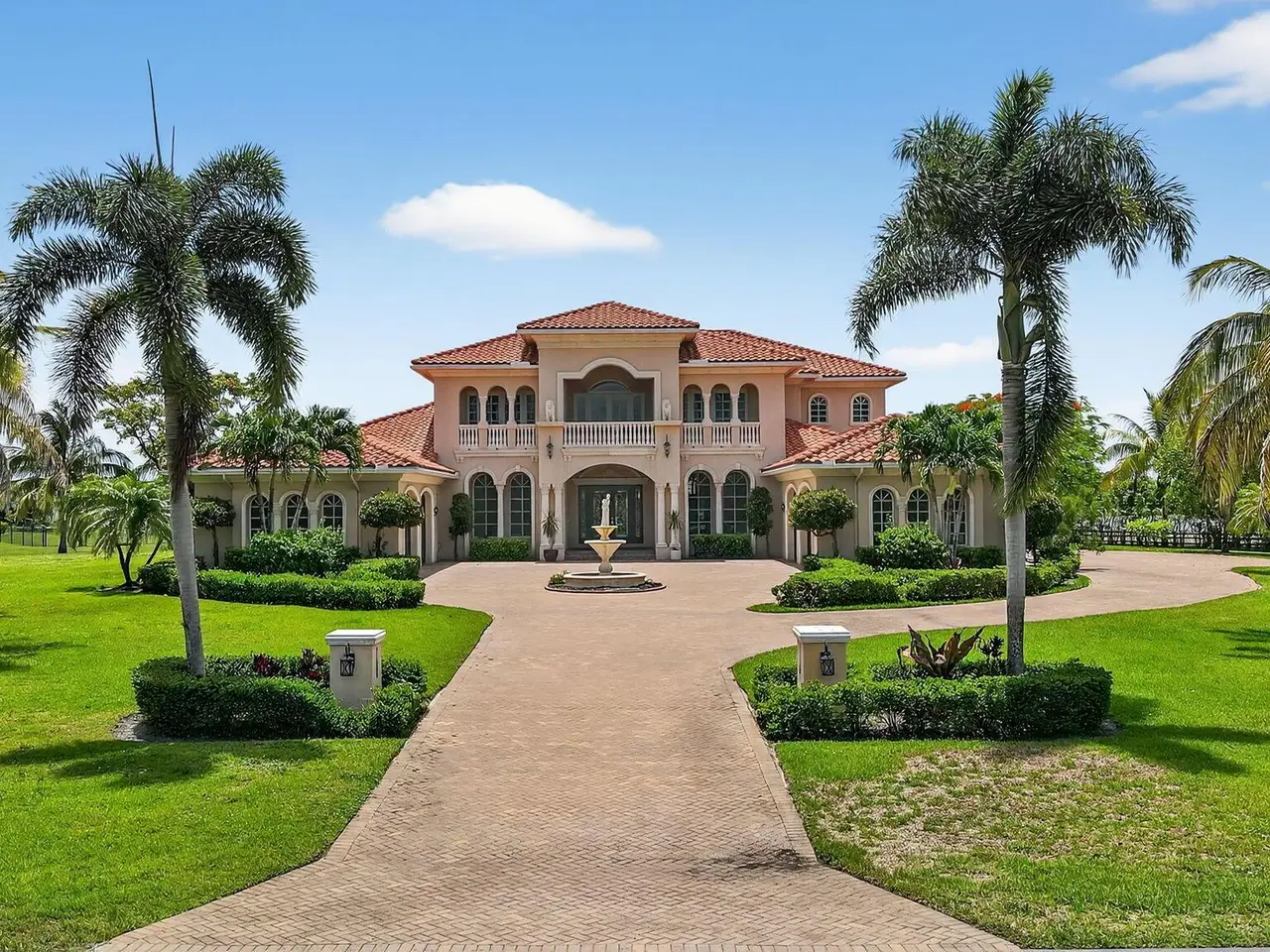 Casual elegance & exquisite craftsmanship define this magnificent custom-built home featuring 6 bedrooms, 7.5 bathrooms & 4 car garage. Situated on over 2 acres, the estate welcomes you with a wide circular driveway & fountain centerpiece. In the grand foyer, gleaming marble floors, a dazzling crystal chandelier & soaring ceilings create an unforgettable first impression. A breathtaking winding staircase sets the tone for the sophisticated design found throughout. The chef's island kitchen is a culinary dream, with 2 wall ovens, a Sub-Zero refrigerator & gas stove- perfect for entertaining or everyday luxury. Nearly every main room showcases a unique ceiling design, adding character & charm at every turn! Outside is your resort-style oasis. The pool/spa area is framed by elegant walled arches, creating a serene Mediterranean retreat. Multiple balconies & patios offer the perfect setting for al fresco dining, relaxation or entertaining. Wander down to the peaceful lakeside patio and soak in the views. Equestrians, your horses are welcome! Despite the serene seclusion, this exceptional home is conveniently located near restaurants, shops, cultural venues, & the Palm Beach International Airport. This one-of-a-kind estate is where timeless design meets modern luxury. Come experience it for yourself!