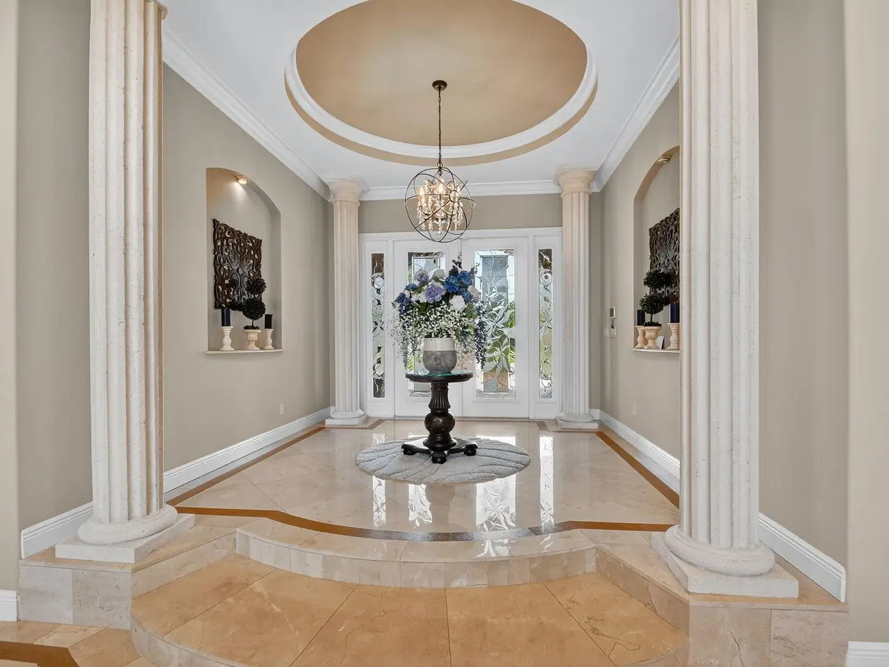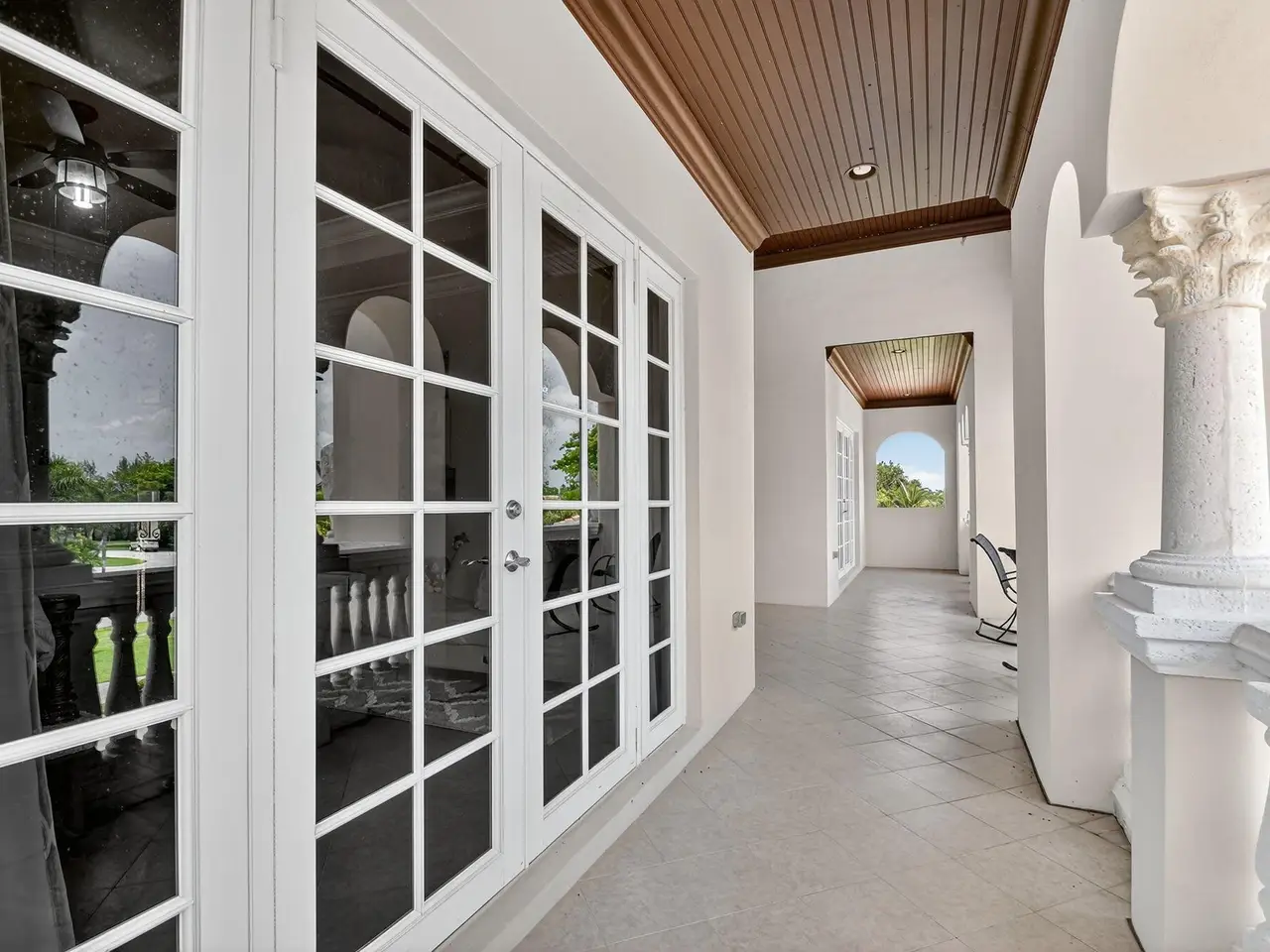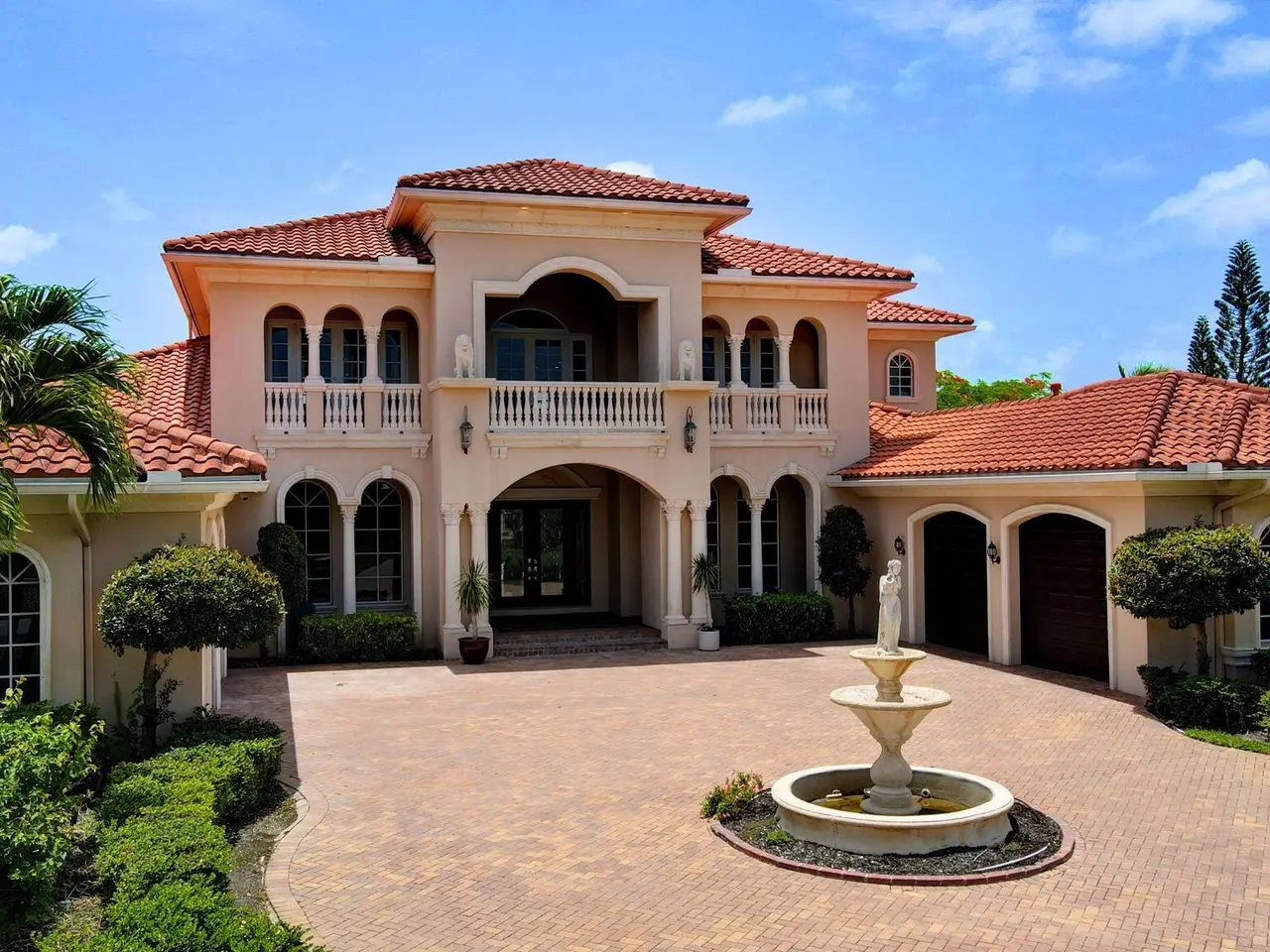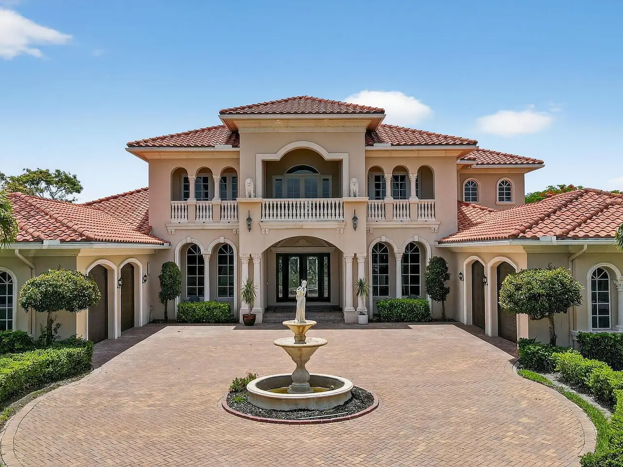 Casual elegance & exquisite craftsmanship define this magnificent custom-built home featuring 6 bedrooms, 7.5 bathrooms & 4 car garage. Situated on over 2 acres, the estate welcomes you with a wide circular driveway & fountain centerpiece. In the grand foyer, gleaming marble floors, a dazzling crystal chandelier & soaring ceilings create an unforgettable first impression. A breathtaking winding staircase sets the tone for the sophisticated design found throughout. The chef's island kitchen is a culinary dream, with 2 wall ovens, a Sub-Zero refrigerator & gas stove- perfect for entertaining or everyday luxury. Nearly every main room showcases a unique ceiling design, adding character & charm at every turn! Outside is your resort-style oasis. The pool/spa area is framed by elegant walled arches, creating a serene Mediterranean retreat. Multiple balconies & patios offer the perfect setting for al fresco dining, relaxation or entertaining. Wander down to the peaceful lakeside patio and soak in the views. Equestrians, your horses are welcome! Despite the serene seclusion, this exceptional home is conveniently located near restaurants, shops, cultural venues, & the Palm Beach International Airport. This one-of-a-kind estate is where timeless design meets modern luxury. Come experience it for yourself!