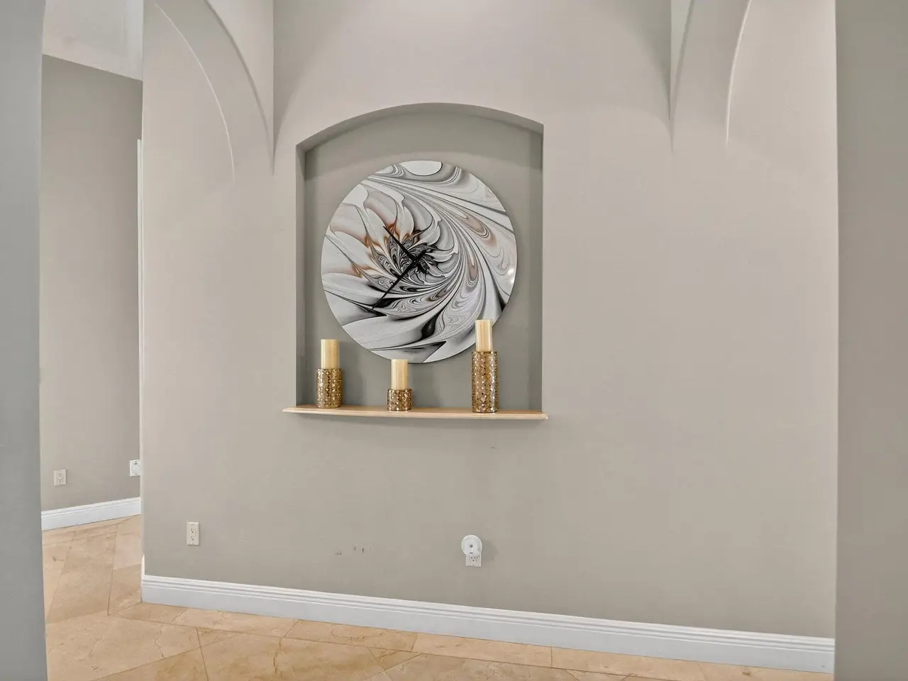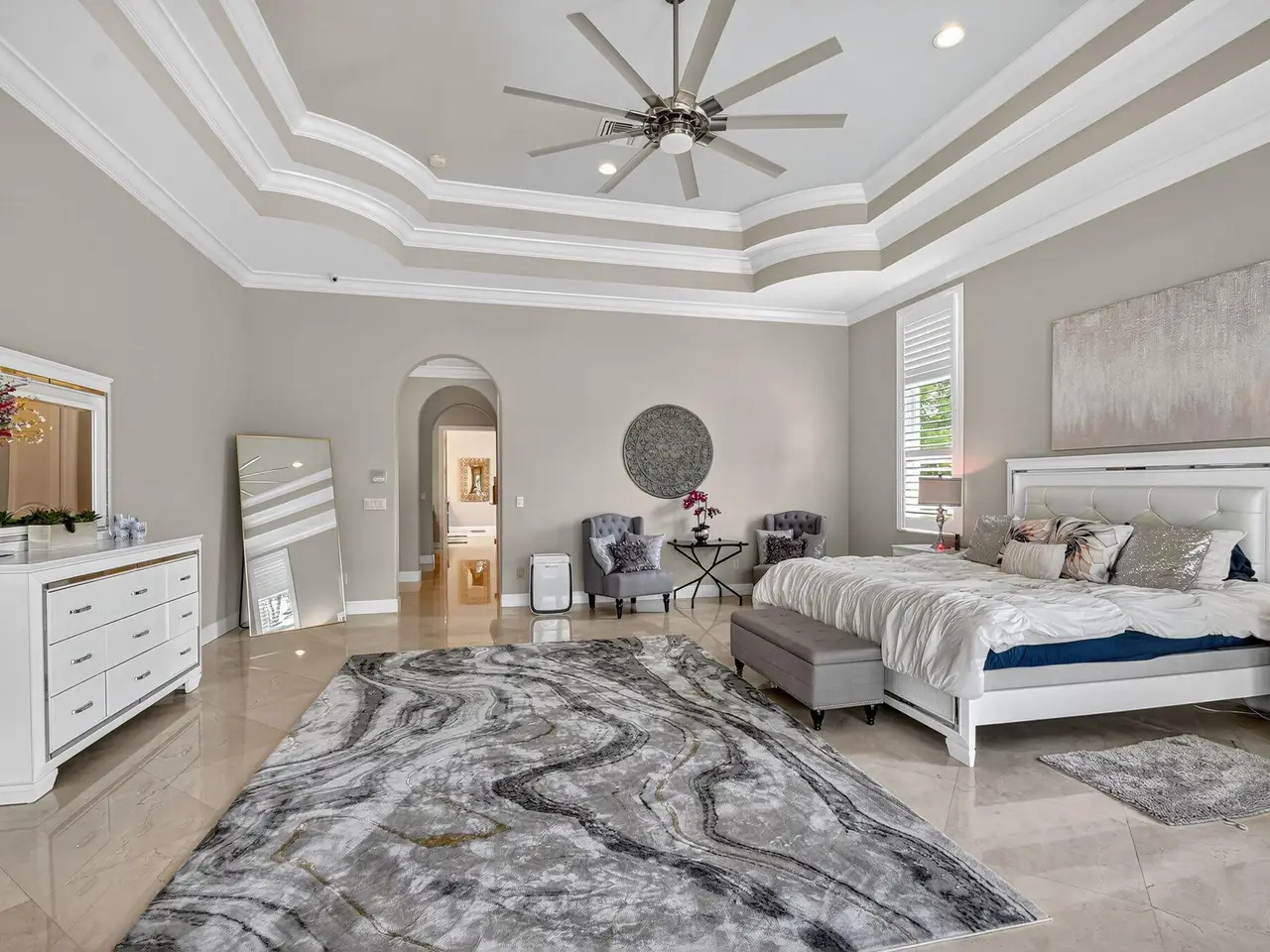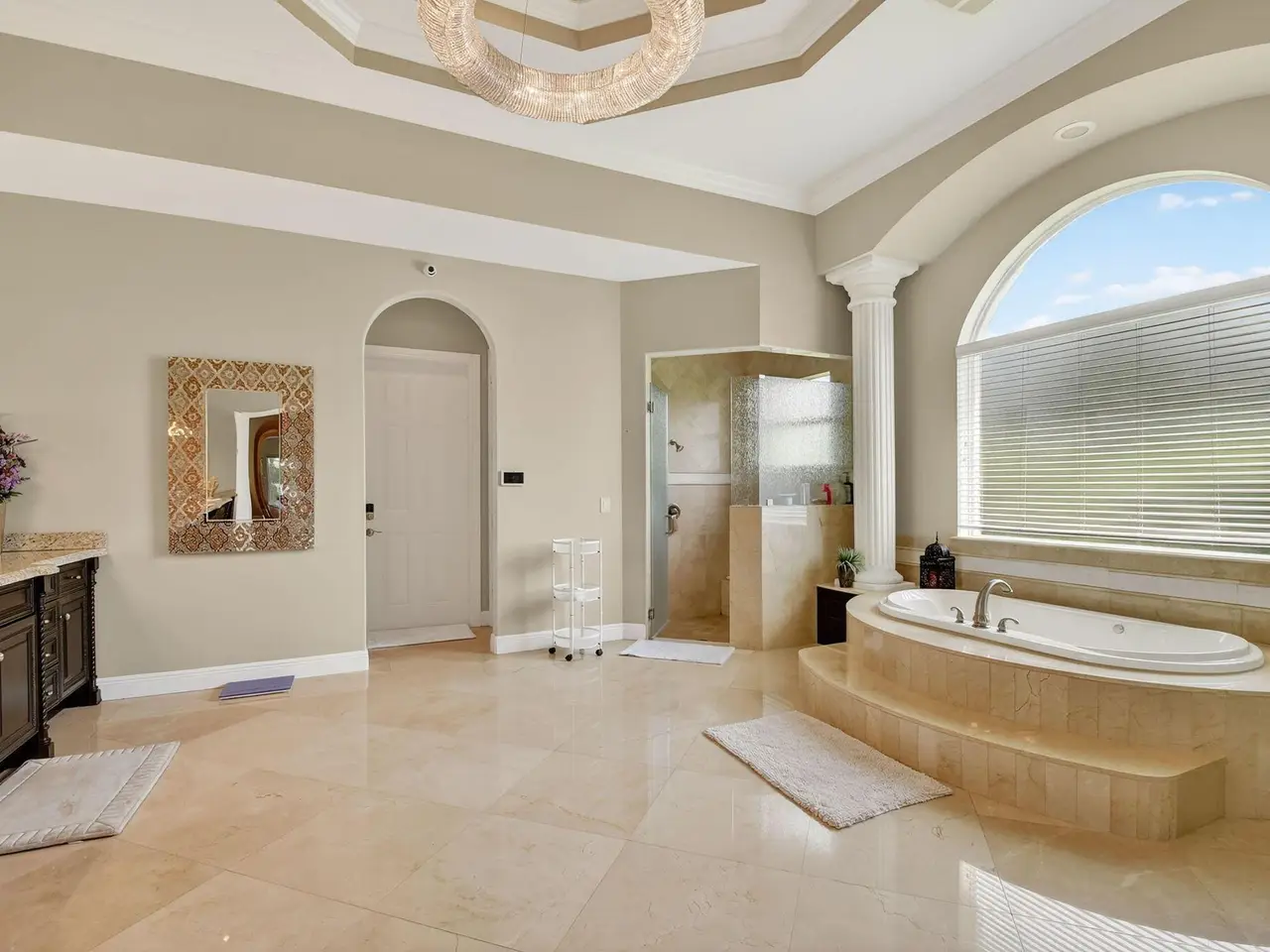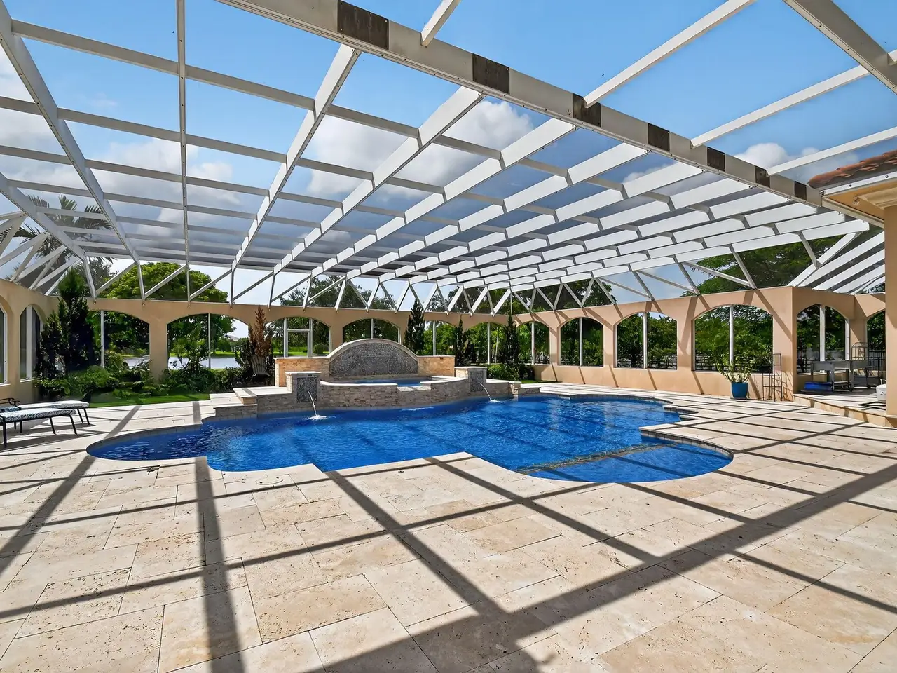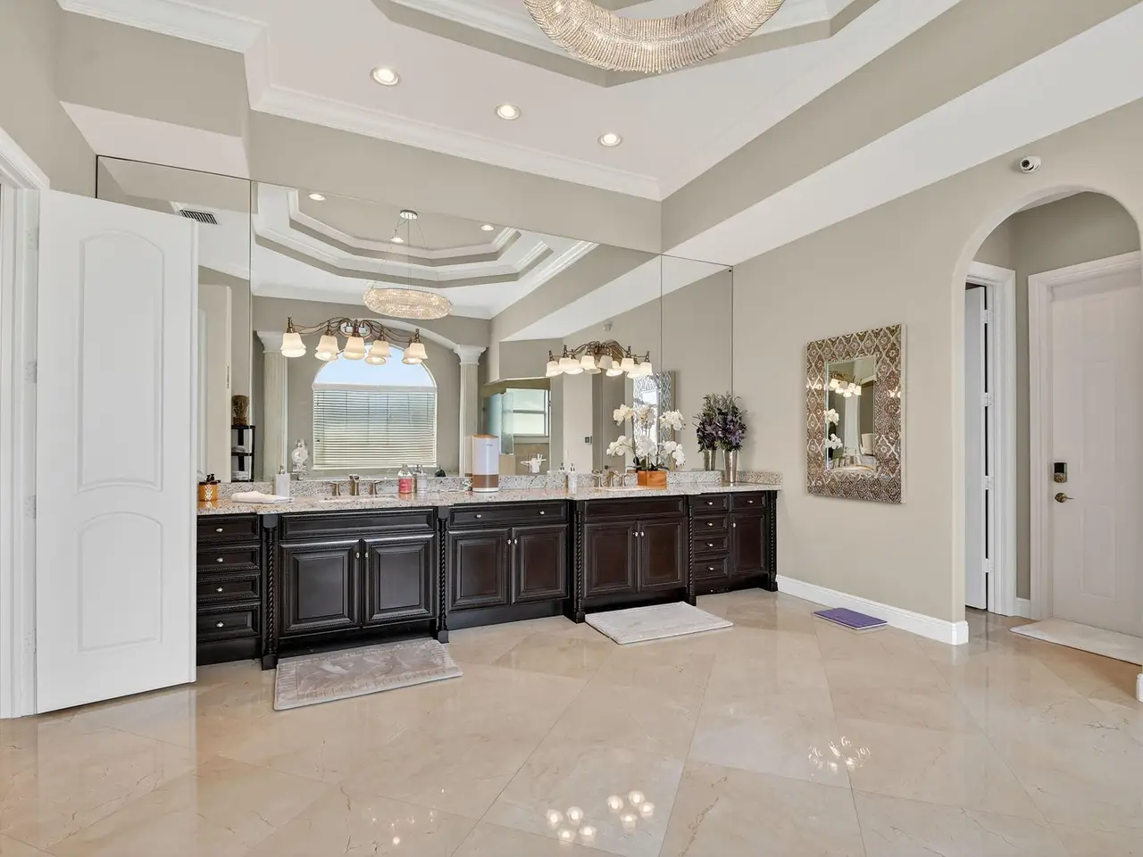 Casual elegance & exquisite craftsmanship define this magnificent custom-built home featuring 6 bedrooms, 7.5 bathrooms & 4 car garage. Situated on over 2 acres, the estate welcomes you with a wide circular driveway & fountain centerpiece. In the grand foyer, gleaming marble floors, a dazzling crystal chandelier & soaring ceilings create an unforgettable first impression. A breathtaking winding staircase sets the tone for the sophisticated design found throughout. The chef's island kitchen is a culinary dream, with 2 wall ovens, a Sub-Zero refrigerator & gas stove- perfect for entertaining or everyday luxury. Nearly every main room showcases a unique ceiling design, adding character & charm at every turn! Outside is your resort-style oasis. The pool/spa area is framed by elegant walled arches, creating a serene Mediterranean retreat. Multiple balconies & patios offer the perfect setting for al fresco dining, relaxation or entertaining. Wander down to the peaceful lakeside patio and soak in the views. Equestrians, your horses are welcome! Despite the serene seclusion, this exceptional home is conveniently located near restaurants, shops, cultural venues, & the Palm Beach International Airport. This one-of-a-kind estate is where timeless design meets modern luxury. Come experience it for yourself!