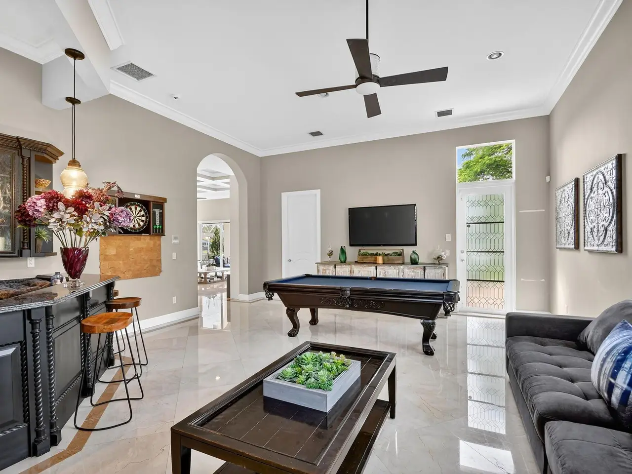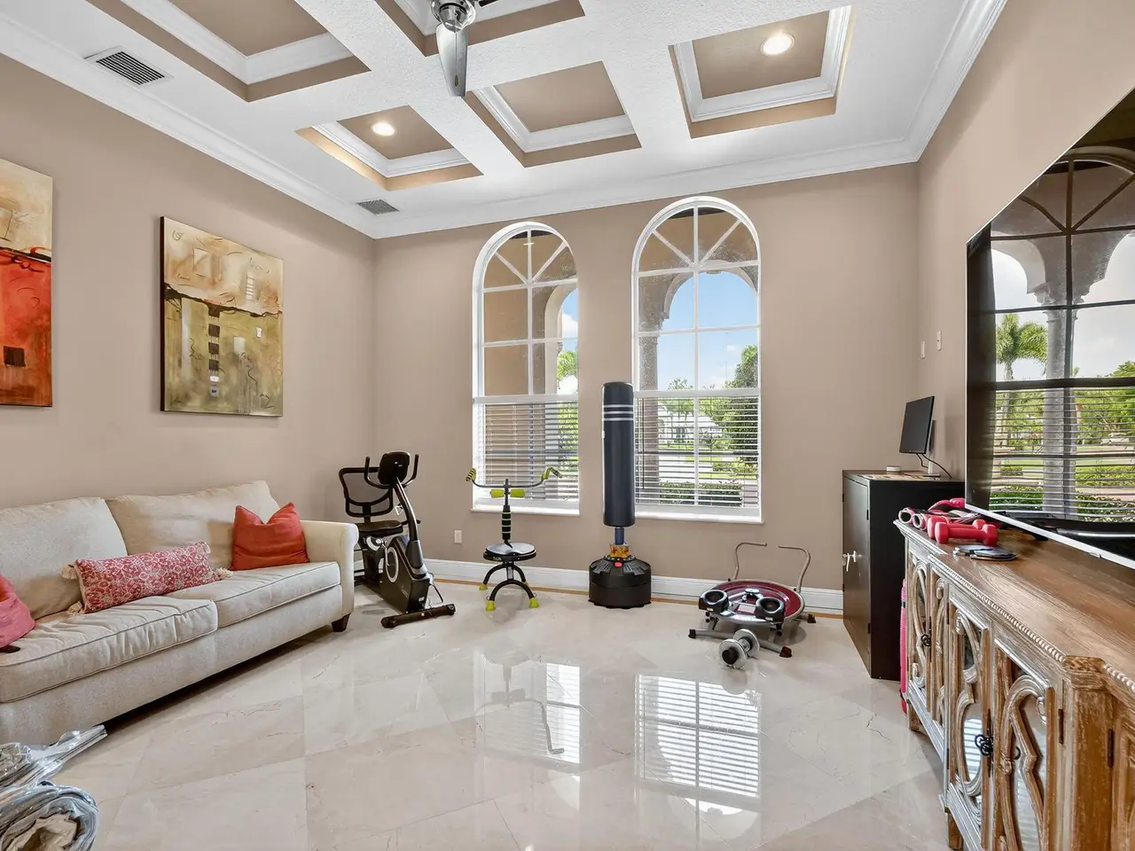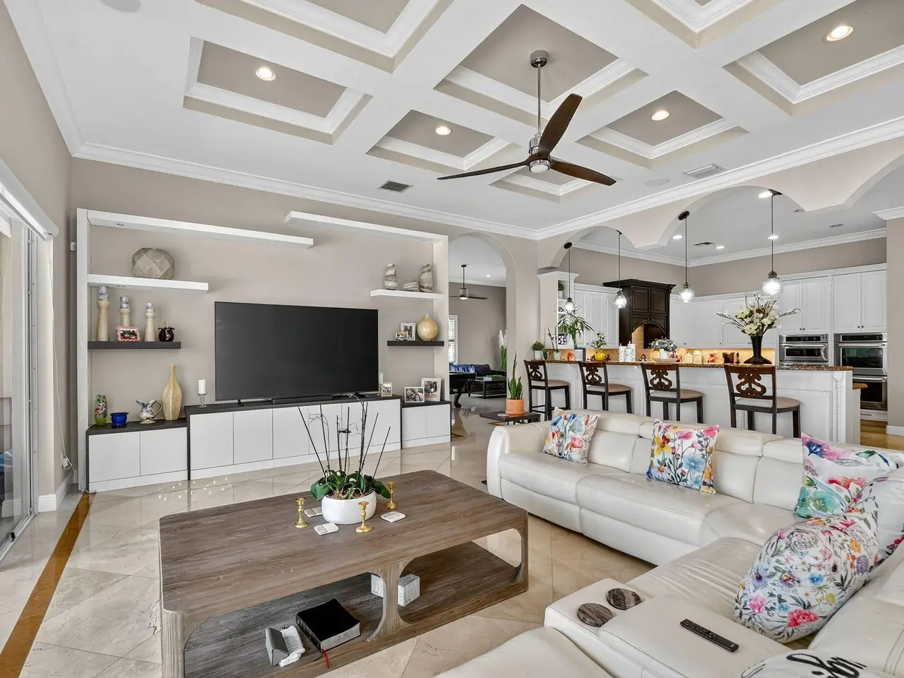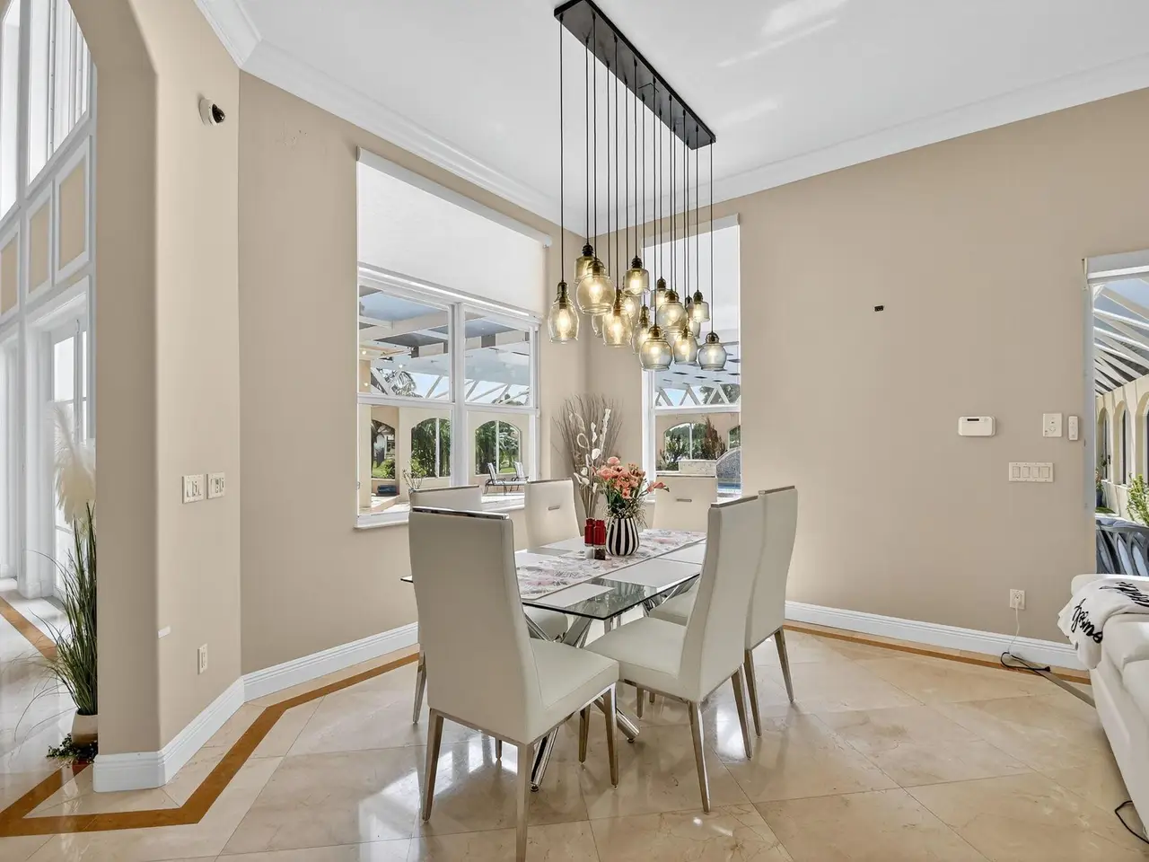 Casual elegance & exquisite craftsmanship define this magnificent custom-built home featuring 6 bedrooms, 7.5 bathrooms & 4 car garage. Situated on over 2 acres, the estate welcomes you with a wide circular driveway & fountain centerpiece. In the grand foyer, gleaming marble floors, a dazzling crystal chandelier & soaring ceilings create an unforgettable first impression. A breathtaking winding staircase sets the tone for the sophisticated design found throughout. The chef's island kitchen is a culinary dream, with 2 wall ovens, a Sub-Zero refrigerator & gas stove- perfect for entertaining or everyday luxury. Nearly every main room showcases a unique ceiling design, adding character & charm at every turn! Outside is your resort-style oasis. The pool/spa area is framed by elegant walled arches, creating a serene Mediterranean retreat. Multiple balconies & patios offer the perfect setting for al fresco dining, relaxation or entertaining. Wander down to the peaceful lakeside patio and soak in the views. Equestrians, your horses are welcome! Despite the serene seclusion, this exceptional home is conveniently located near restaurants, shops, cultural venues, & the Palm Beach International Airport. This one-of-a-kind estate is where timeless design meets modern luxury. Come experience it for yourself!