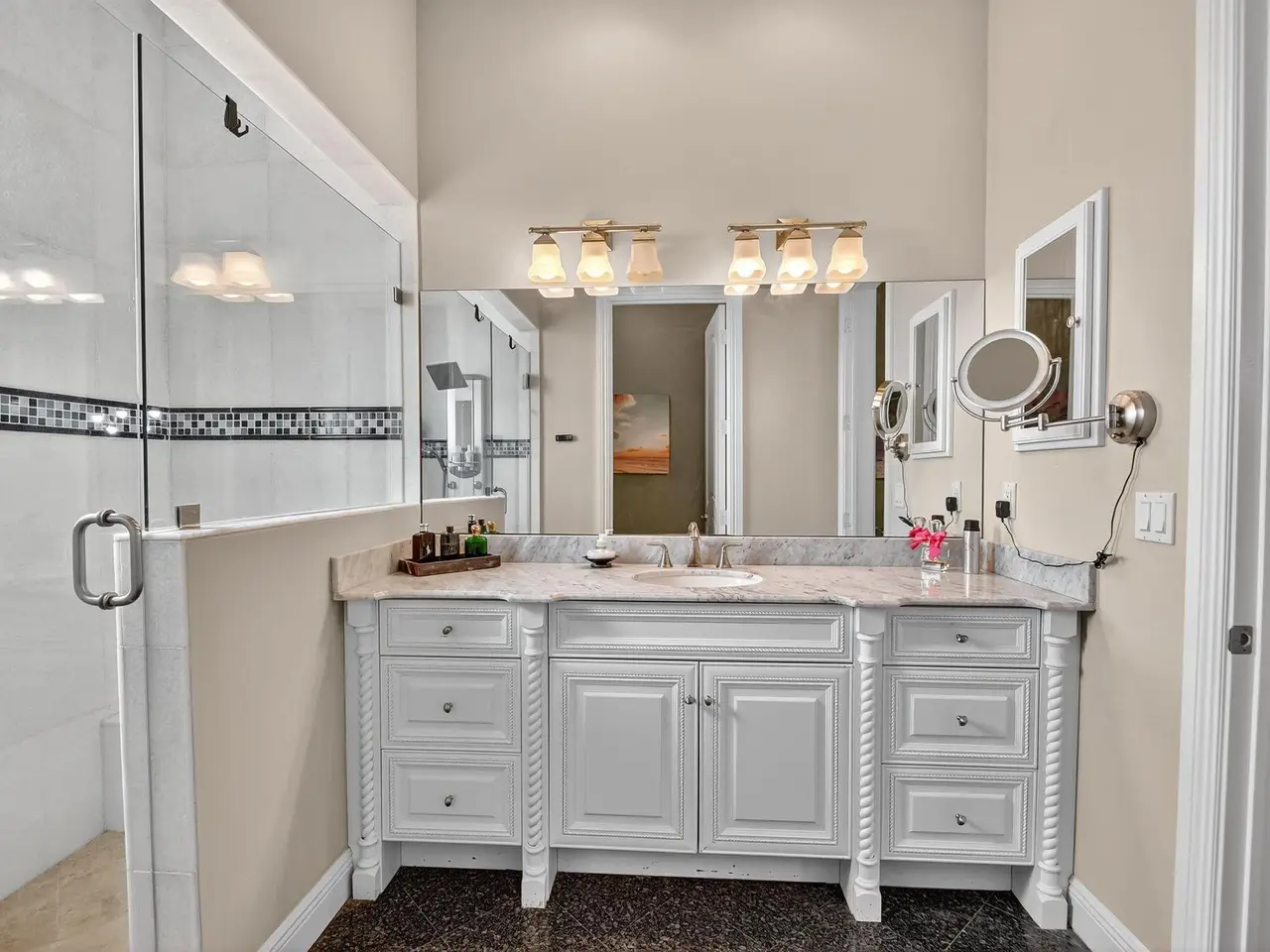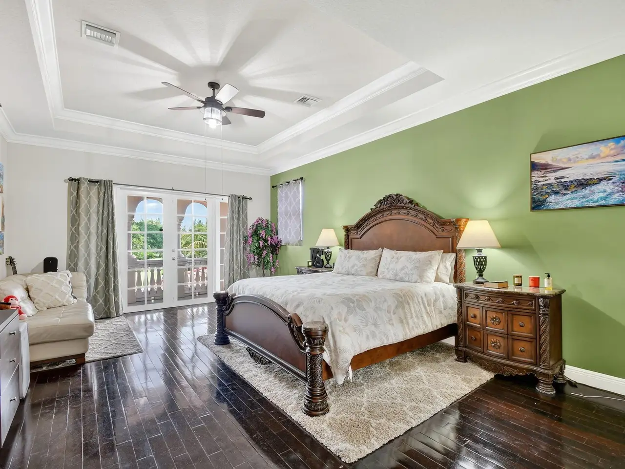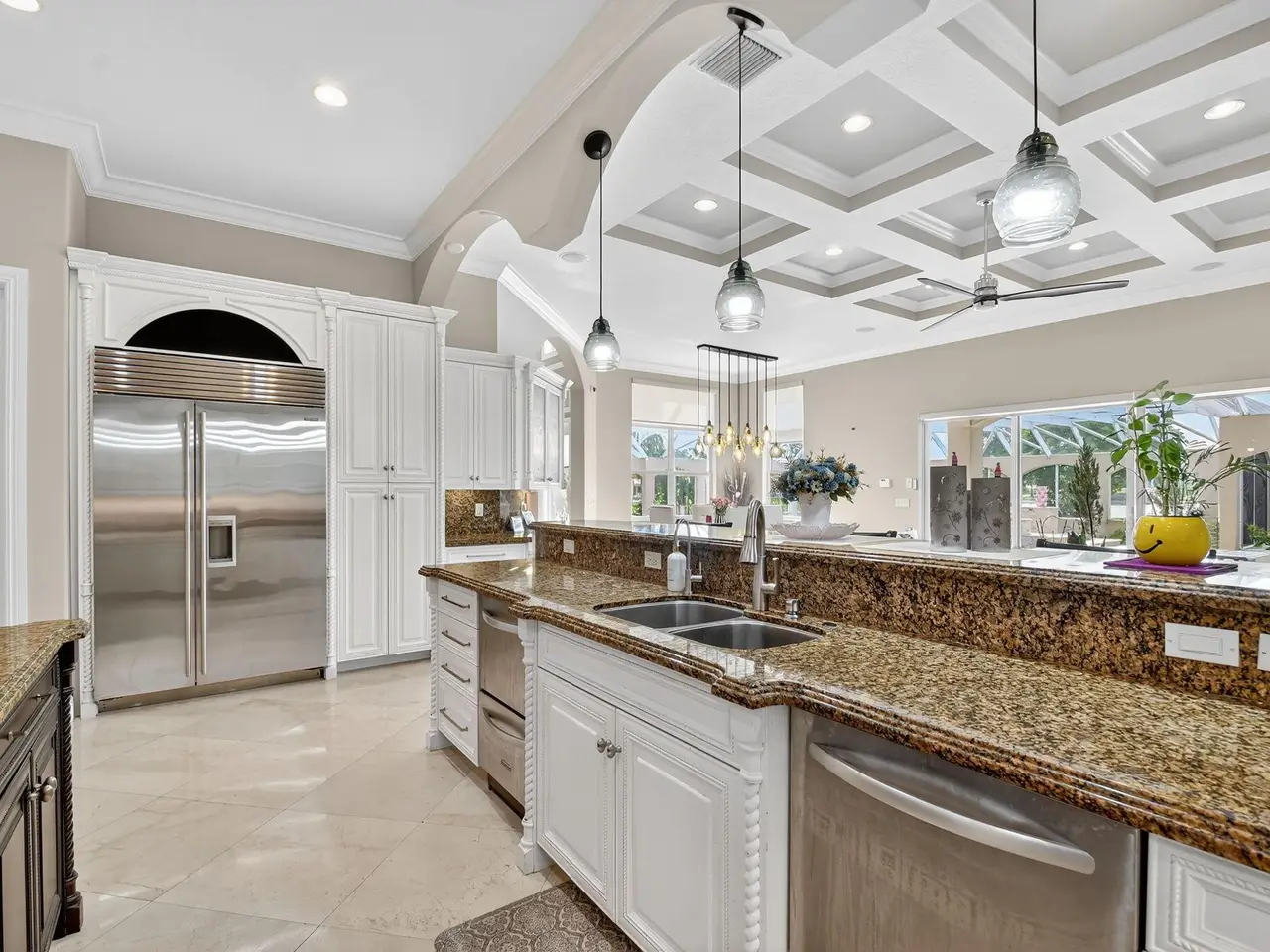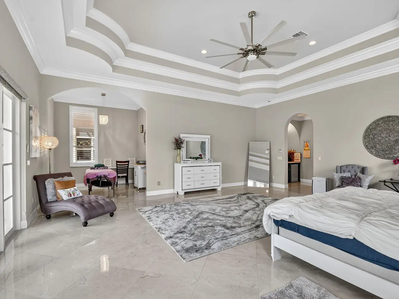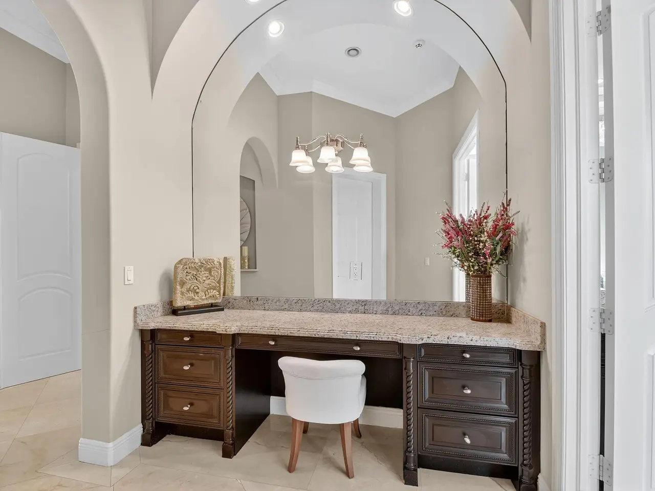 Casual elegance & exquisite craftsmanship define this magnificent custom-built home featuring 6 bedrooms, 7.5 bathrooms & 4 car garage. Situated on over 2 acres, the estate welcomes you with a wide circular driveway & fountain centerpiece. In the grand foyer, gleaming marble floors, a dazzling crystal chandelier & soaring ceilings create an unforgettable first impression. A breathtaking winding staircase sets the tone for the sophisticated design found throughout. The chef's island kitchen is a culinary dream, with 2 wall ovens, a Sub-Zero refrigerator & gas stove- perfect for entertaining or everyday luxury. Nearly every main room showcases a unique ceiling design, adding character & charm at every turn! Outside is your resort-style oasis. The pool/spa area is framed by elegant walled arches, creating a serene Mediterranean retreat. Multiple balconies & patios offer the perfect setting for al fresco dining, relaxation or entertaining. Wander down to the peaceful lakeside patio and soak in the views. Equestrians, your horses are welcome! Despite the serene seclusion, this exceptional home is conveniently located near restaurants, shops, cultural venues, & the Palm Beach International Airport. This one-of-a-kind estate is where timeless design meets modern luxury. Come experience it for yourself!