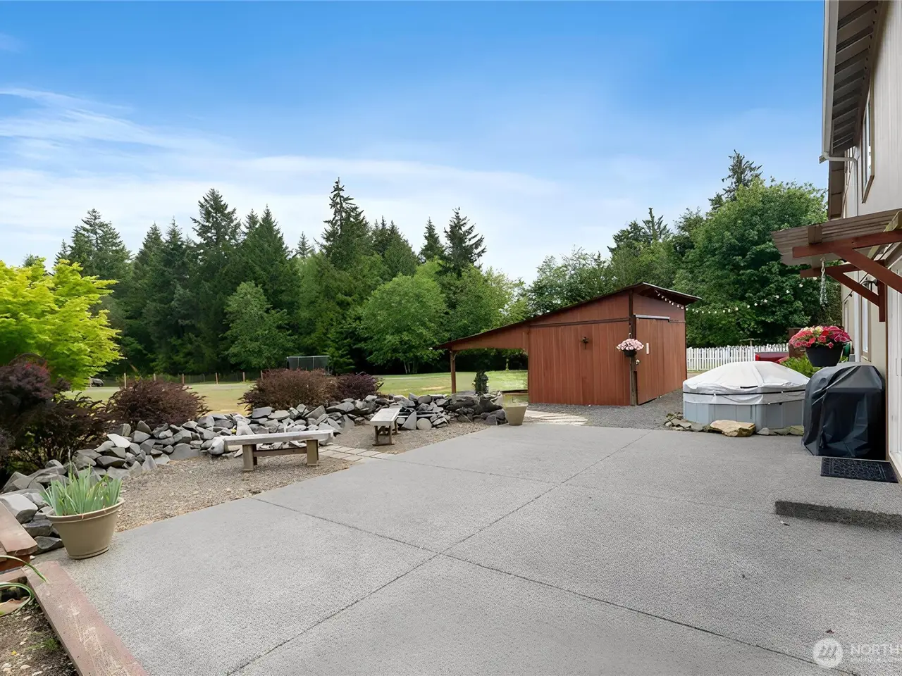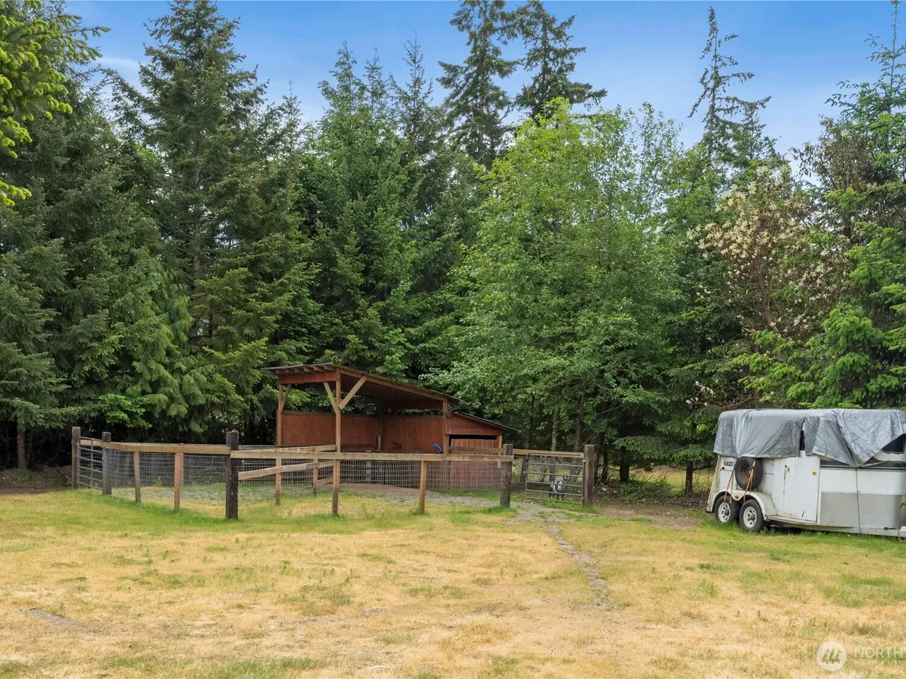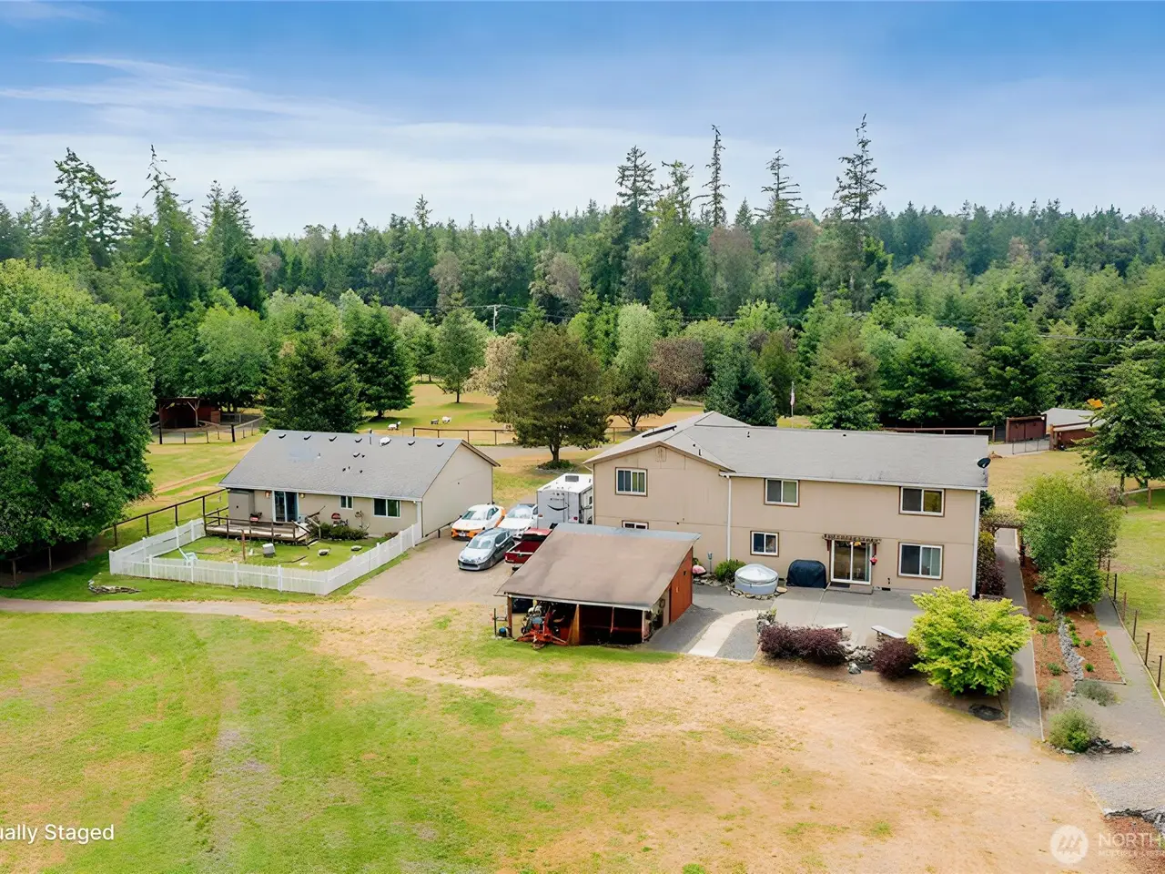 Turn-key 4BR/3BA custom home with a 3 bdrm ADU Rambler on a fully equipped hobby farm! Enjoy 3,000 sq ft of updated living space w/AC, jetted tub, office, digital climate controls & ceiling fans in all BRs. Outdoors: 7.35 Acres, 3 fenced pastures, horse round pen, ATV trails, chicken coop, duck enclosure w/plumbed pool, 200 sq ft shed, RV hookup, EV-ready garage & generator plug-in. Relax w/water feature, hot tub & fire pit. Gated entry w/remotes & package slide. ADT security, high-speed DSL. ADU w/ 1200 sq ft, 3BR/2BA, garage & fenced yard. Prime location--school bus stop at driveway, 2 min to Evergreen Elem, 11 min to Key Center, 29 min to Costco, near Joemma & Penrose Parks. A rare blend of comfort, space & rural charm!
