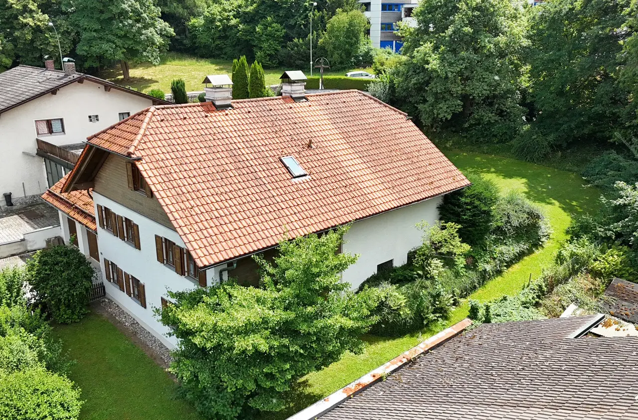 This spacious detached house on the popular Birkenberg in Landshut offers you and your family a living environment that combines freedom, security and many perspectives. On a park-like, beautifully ingrown plot of over 1,160 m², you can enjoy plenty of privacy, sunny retreats and space for your individual ideas. The house impresses as soon as you enter with its alpine character and the striking crippled hipped roof, which stylishly underlines the rural charm. On three floors and around 250 m² of living space, there are eight rooms that can be used flexibly - as a spacious family area, space for guests or your personal home office. Thanks to the separate granny apartment, multi-generational living, a care home or the combination of living and working under one roof can also be easily implemented. A special highlight is the cozy living/dining area with tiled stove, which provides warmth on cold days. The property features a fitted kitchen, several bathrooms, a guest WC, two terraces and a balcony - so everyone can find their favorite spot. The partial basement offers additional storage and usable space. The house is in a well-kept condition, but also offers potential that you can develop according to your own ideas. With a manageable amount of modernization work, you can create a contemporary home that combines tradition and comfort in a unique way. The solid construction, a mixture of stove, electric and underfloor heating, high-quality parquet and tiled floors and the large garden area create the best conditions for a cozy lifestyle. Two garages and two further parking spaces round off the offer. The location speaks for itself: close to the city center yet quiet, you can reach shopping facilities, sports centers, schools and local recreation areas in just a few minutes. Thanks to good connections, the A92 freeway, the airport and Munich city center are also within easy reach. This house is a real collector's item - spacious, versatile and full of possibilities for families looking for a special home. Be inspired by its charm during a viewing.