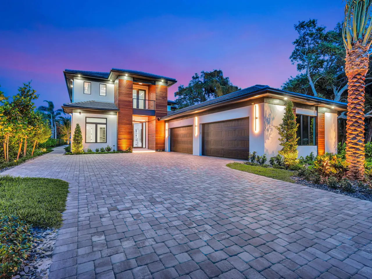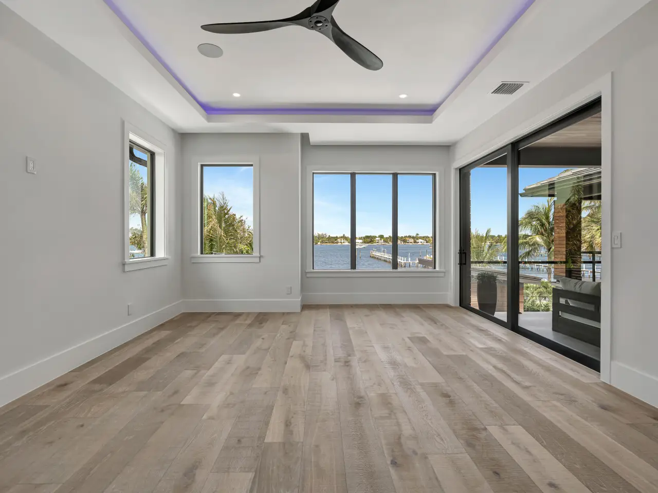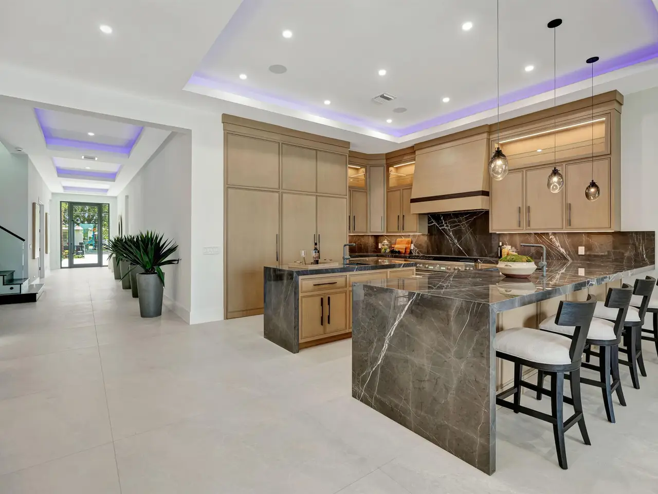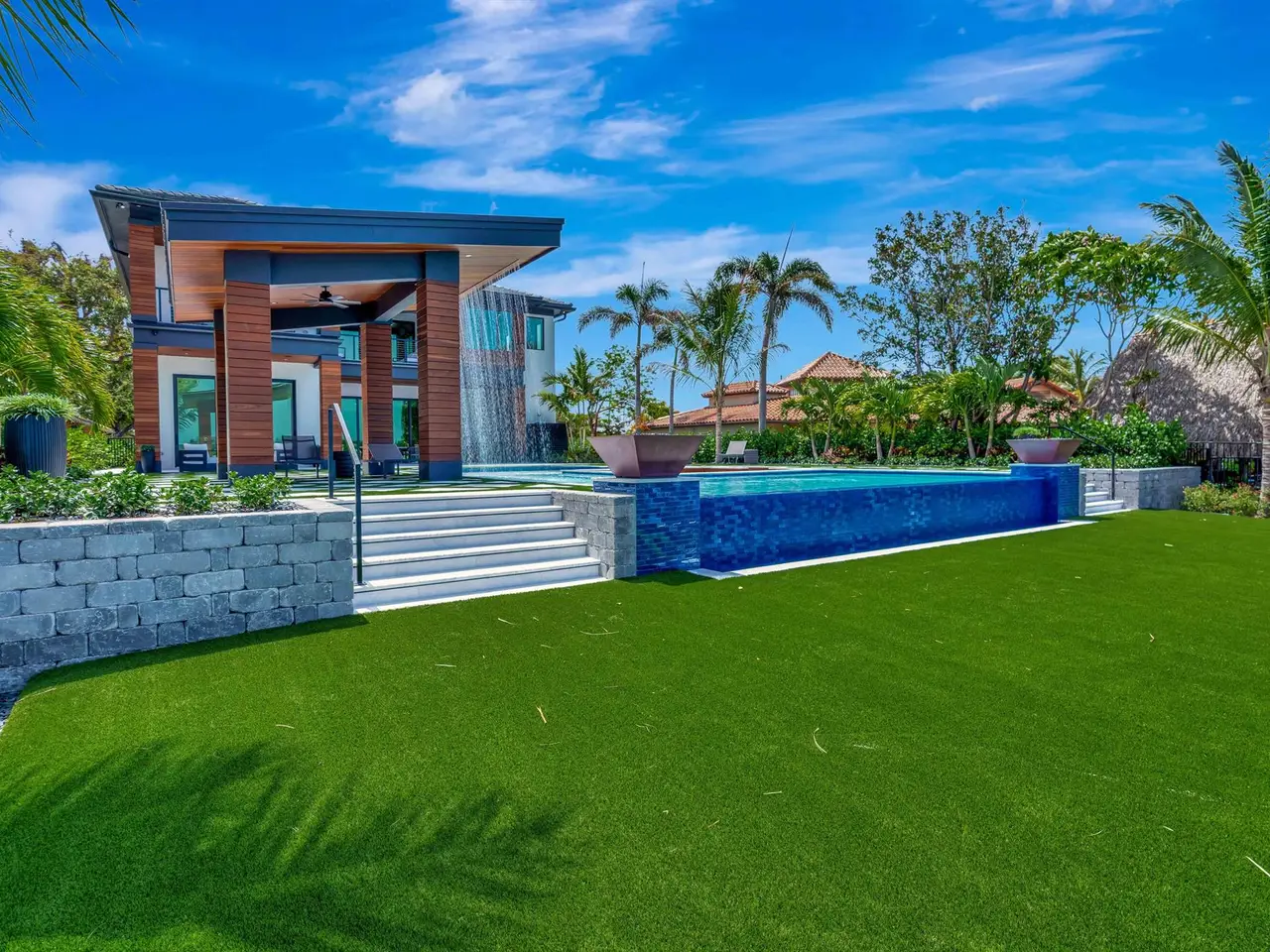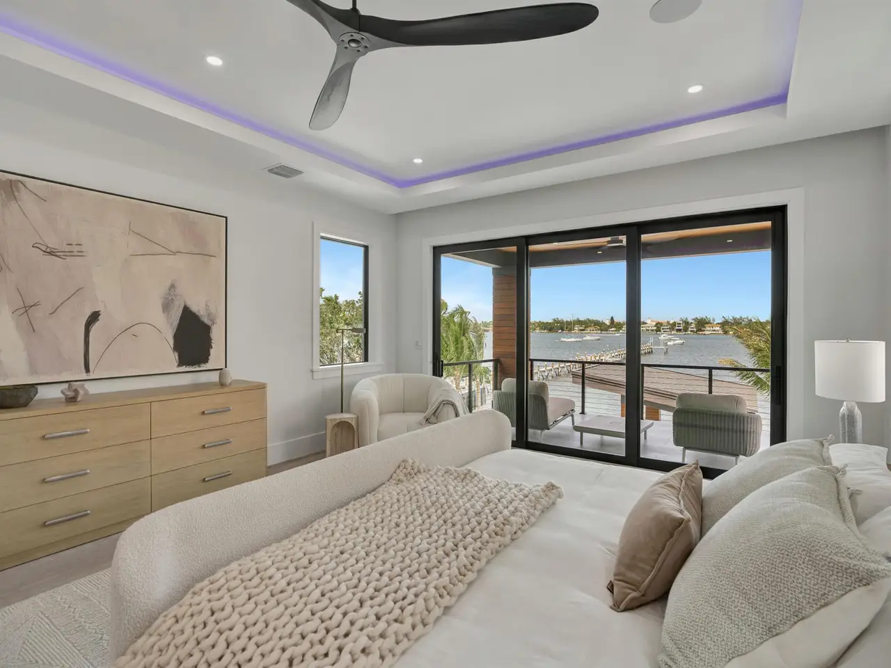 Brand-new gated intracoastal estate in prime Lantana location! Brand new 385 foot dock with 32k boat lift and pilings to tie up your very large vessels. This is the lowest price per square foot new construction on the direct intracoastal in Palm Beach County! Walk to the beach, Eau Resort & Spa, and top dining spots. Just 1.5 mi to I-95, minutes to PBI & private jet access. This smart, energy-efficient compound offers ultimate privacy with unobstructed water views, upstairs/downstairs living rooms & master suites. Loaded with upgrades: Sonos, security, landscape lighting. Backyard is a showstoppera"$500K+ resort-style pool, sunken firepit, waterfall gazebo w/ 10 stools, and multiple fire features. Luxury living at its finest!
