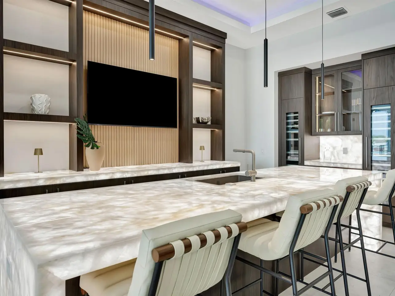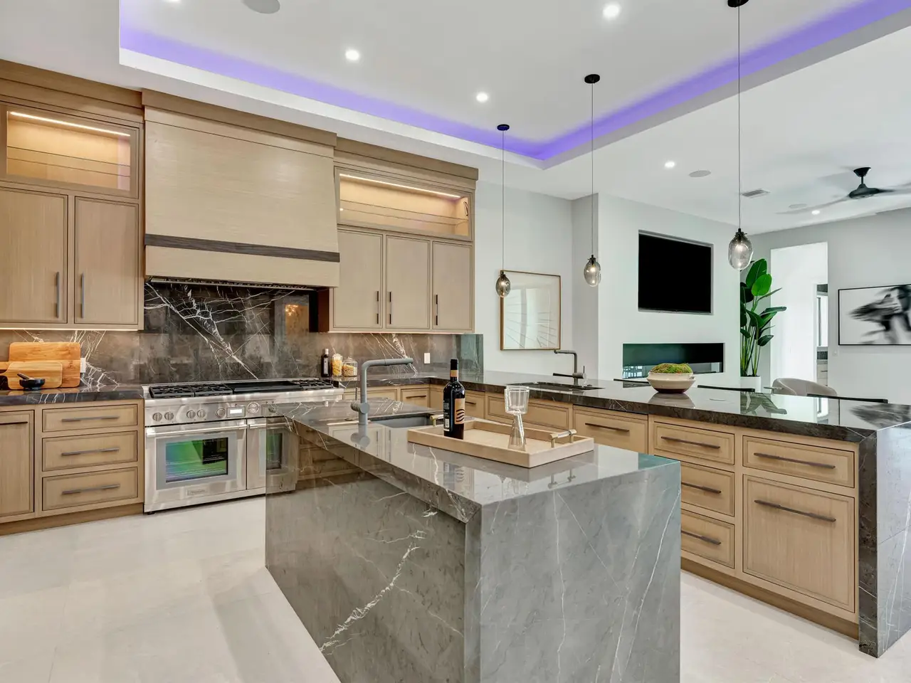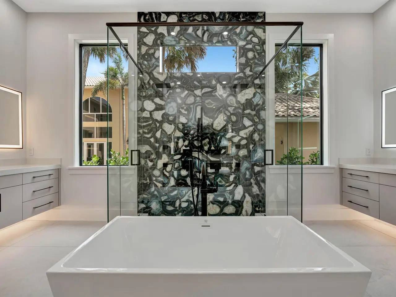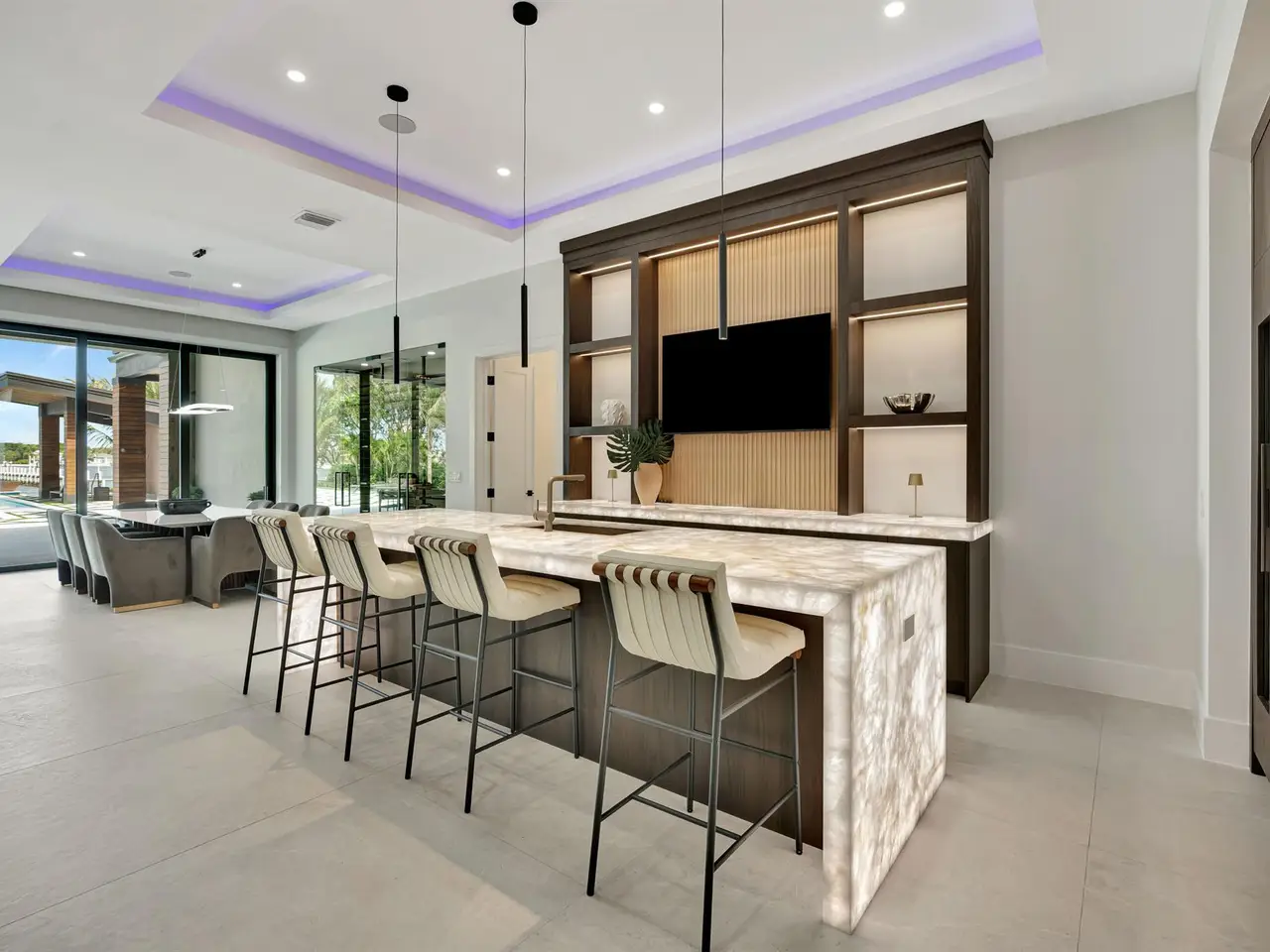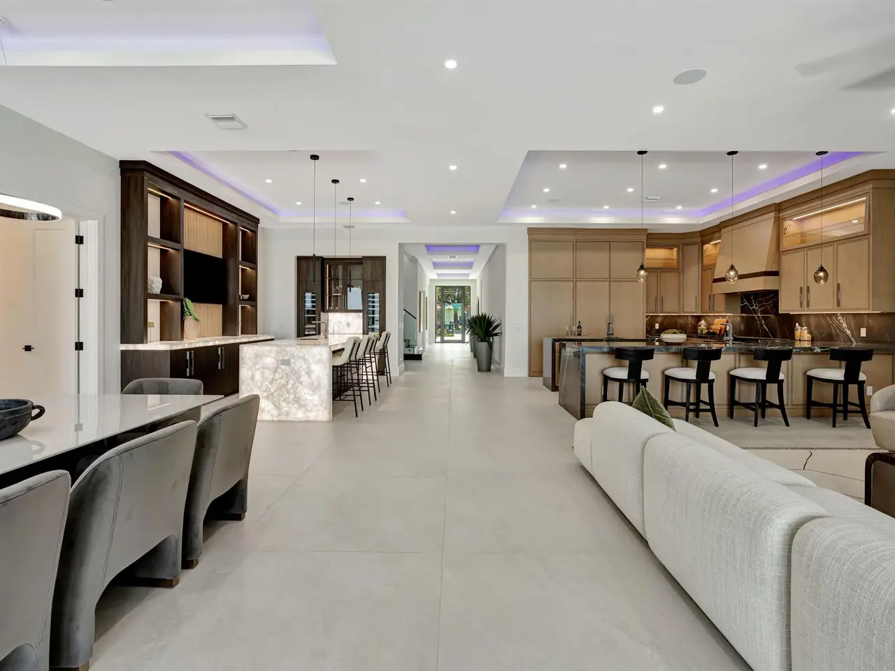Brand-new gated intracoastal estate in prime Lantana location! Brand new 385 foot dock with 32k boat lift and pilings to tie up your very large vessels. This is the lowest price per square foot new construction on the direct intracoastal in Palm Beach County! Walk to the beach, Eau Resort & Spa, and top dining spots. Just 1.5 mi to I-95, minutes to PBI & private jet access. This smart, energy-efficient compound offers ultimate privacy with unobstructed water views, upstairs/downstairs living rooms & master suites. Loaded with upgrades: Sonos, security, landscape lighting. Backyard is a showstoppera"$500K+ resort-style pool, sunken firepit, waterfall gazebo w/ 10 stools, and multiple fire features. Luxury living at its finest!