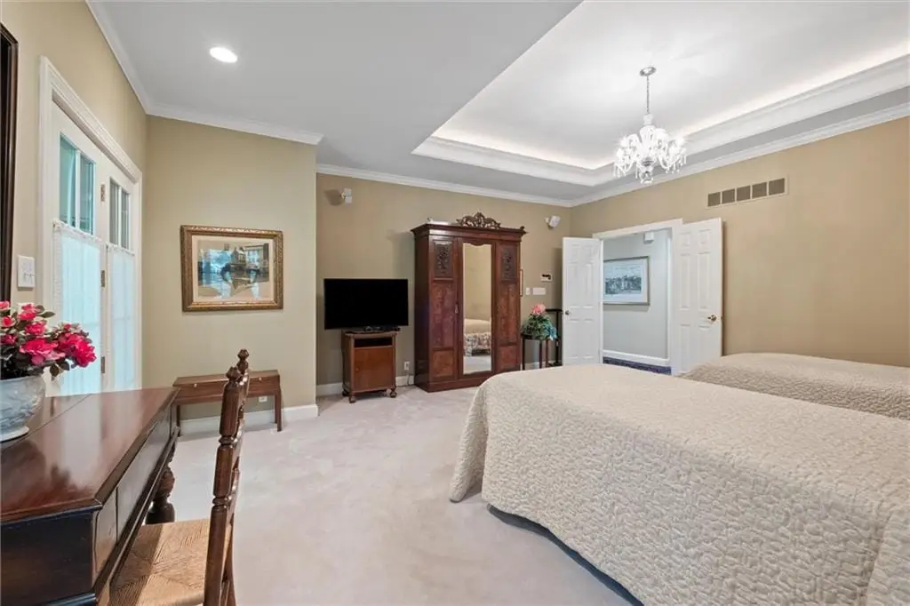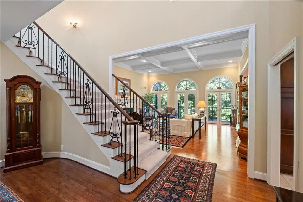 Exclusive Gated Retreat! Tucked away at the end of a quiet cul-de-sac in a private gated community consisting of just eight homes, this residence combines elegance, functionality and serenity. A dramatic two-story entry with sweeping staircase sets the stage, while tall ceilings with coffered detail and crown molding and beautiful hardwood floors throughout the main level create timeless sophistication. Designed for entertaining, this home offers a large formal dining room with bar sink and wine fridge, a spacious hearth room, and an inviting eat-in kitchen featuring double ovens, two new stainless steel dishwashers, granite counters, large island and generous prep space. Don't miss the large composite all season screened-in porch, which makes a perfect sleeping porch and is great for hosting guests or simply relaxing as it overlooks the treed surroundings. The porch wraps around the entire back of home and leads to a second covered area with access from the primary bedroom creating the perfect retreat. The main floor features a luxurious primary suite with spa-like bath, plus a versatile office with custom built-ins. Upstairs features three large bedrooms, each with their own en-suite bath plus a magical playroom that transports you to your favorite childhood storybook. The walkout lower level expands the living space with a full second kitchen, fireplace, bedroom with its own private sitting area and a large exercise room with steam shower. The home is wired with Bose speakers and sits on a beautifully treed, private lot. Don't miss your opportunity to see this estate sized home in the highly desirable location of Chartwell West.