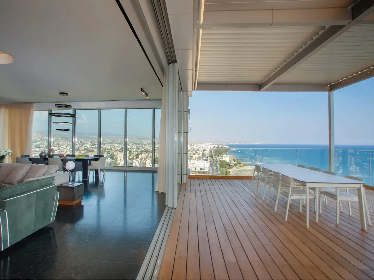 Ultra Prestigious, super luxe, seafront duplex penthouse at the most prominent area of Limassol. Facilities of a 5* Hotel , at the comfort and the convenience of a tower penthouse. Breathtaking views of the city and the sea, magic sunsets, sunbathing afternoons at the spacious pool , within an enormous sun deck, are only some of the ample benefits of the high-end living in this gorgeous, magic place. All anyone can imagine, allowing for a luxurious experience, within the confines of your home, such as a country club, a tennis court , an Italian restaurant and cafe, a shopping plaza, a spectacular wellness spa and many more.