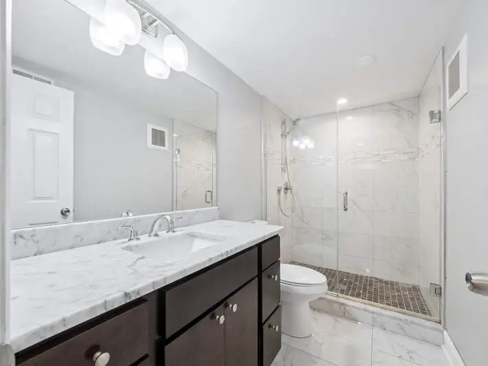 Luxurious primary suite with spa-inspired bathroom