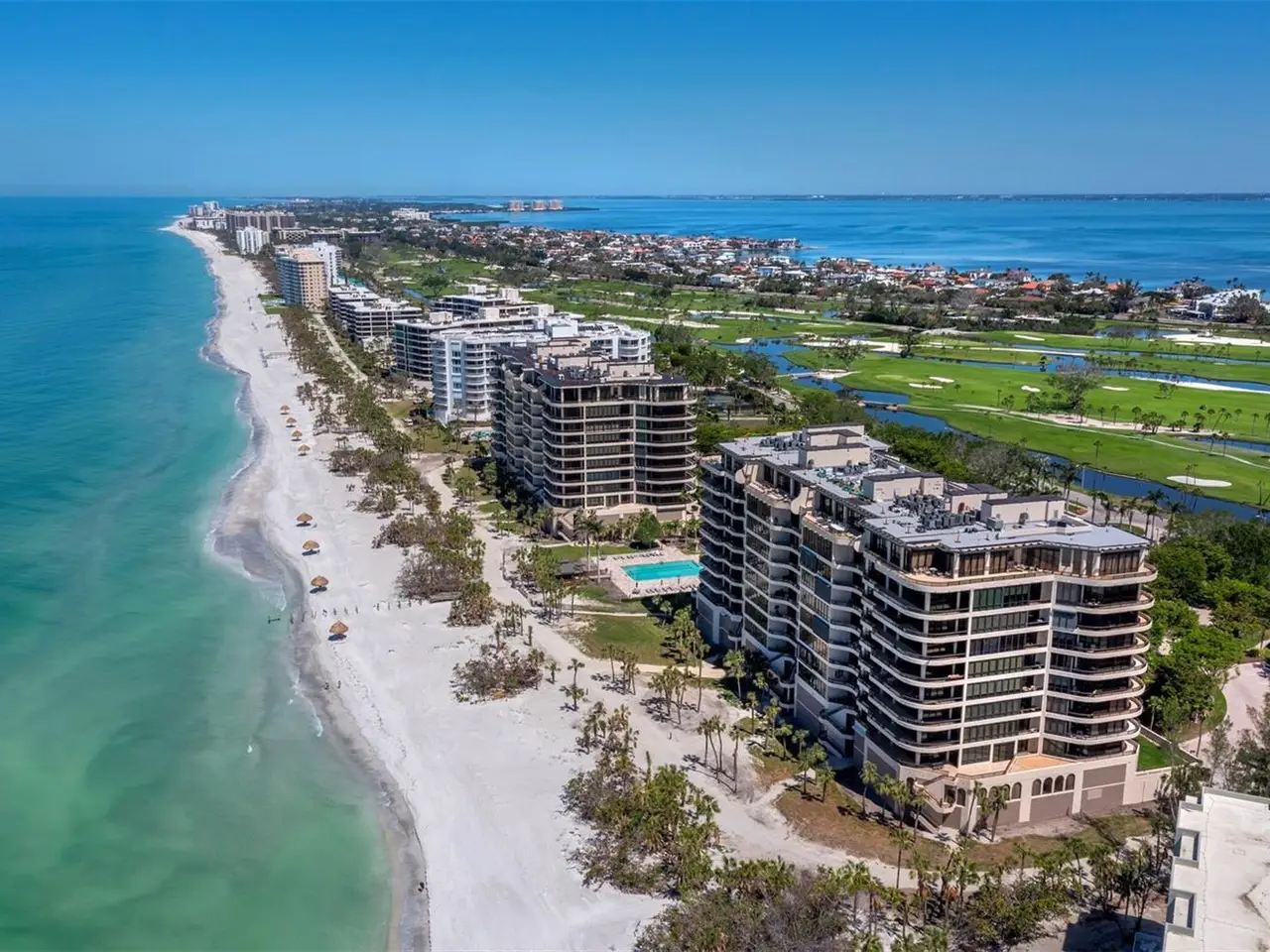 Exquisite Gulf-Front Residence at L’Ambiance. Presenting a truly rare opportunity—this direct Gulf-front 2-bedroom plus den residence offers the pinnacle of beachfront living at the prestigious L’Ambiance on Longboat Key. Featuring the coveted Sabal floor plan, this thoughtfully designed home boasts both sunrise and sunset terraces. Start your mornings with serene eastern light and end your day with sweeping, unobstructed views of the Gulf from your expansive western terrace. Effortlessly blending refined coastal style with luxurious finishes, the residence offers a spacious layout with two bedrooms and a versatile third space—ideal for a home office or guest room—paired with a nearby full bath. The Gulf-front primary suite is a peaceful retreat with panoramic water views, direct terrace access, abundant closet space, and dual bathrooms designed for privacy and comfort. L’Ambiance is Longboat Key’s premier beachfront community, offering an exceptional lifestyle with a 24-hour staffed gatehouse and full-time concierge, a resort-style beachfront pool surrounded by lush tropical landscaping, and two Har-Tru tennis courts. The state-of-the-art fitness center includes his and her locker rooms, and residents enjoy access to game and billiard rooms, a wine room, and a private library. Three elegantly appointed guest suites are available for visiting friends and family. Additional highlights include secured underground parking, a private storage locker, and an unbeatable location just moments from the shops and dining of St. Armands Circle. The residence is also within walking distance to the Longboat Key Club’s acclaimed restaurants and resort amenities. This is beachfront living at its most luxurious—an extraordinary coastal retreat that rarely becomes available.