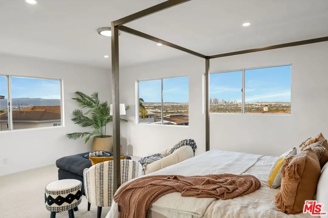 Welcome to this striking Mid-Century Modern residence, thoughtfully updated to blend timeless architecture with today's modern comforts. Perched in a cul-de-sac in the sought-after Baldwin Hills Estates neighborhood, this home showcases expansive use of glass that flood the interior with natural light while framing captivating views of the city and surrounding hillsides. The open-concept kitchen is a true showpiece, featuring brand-new stainless steel appliances, custom solid wood Shaker-style cabinetry, quartz countertops, stainless farm sink, and warm plank flooring. A cozy breakfast area with scenic outlooks offers the perfect start to your day. Flowing seamlessly from the kitchen, the family room boasts soaring vaulted ceilings and a dramatic fireplace, creating an inviting space for both casual living and entertaining. Original refinished hardwood floors highlight the home's character, while the spacious primary suite has been refreshed with designer Berber carpeting, a generous walk-in closet, and sweeping city light views that stretch all the way to Downtown Los Angeles. Two additional bedrooms provide comfort and flexibility, ideal for family, guests, or a home office. Functionality is enhanced with a dedicated laundry room/service porch, two-car attached garage, LED lighting, and abundant storage throughout. Outdoors, the property embraces its Mid-Century spirit with clean lines, natural light, and a sense of indoor-outdoor flow. Adding to its appeal, the home is located just minutes from Kenneth Hahn State Recreation Area and the scenic Baldwin Hills Scenic Overlookperfect for hiking, jogging, or simply enjoying the outdoors. With convenient access to Culver City, the Westside, and DTLA, this property combines style, comfort, and location in one remarkable package. Discover the perfect balance of classic design and modern living!