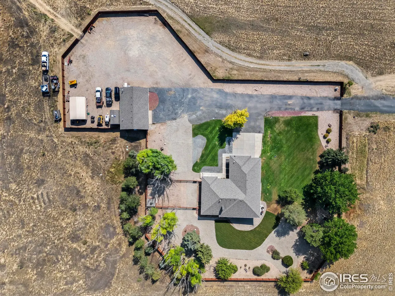 Location, Location, Location! This exceptional 36-acre property offers unbeatable convenience - just 2 miles south of Crossroads Blvd, 1 mile north of Hwy 34, and minutes to I-25 - yet it feels a world away with peace, quiet, and incredible front range mountain views. The 4,272 sf home starts with 5 bedrooms, 3 bathrooms, 3 car attached garage & fresh exterior paint. There's room for several cooks in this big kitchen featuring a large granite island, pantry, and tons of counter & cabinet space. The vaulted great room with gas fireplace opens to the light & bright dining room. Rear wraparound deck to soak in the scenery or enjoy the sunset. Finished walk-out basement includes a family room with second fireplace, wet bar, workout room/flex space, plus generous storage. Outside, you'll find over 1 acre of beautifully landscaped lawn with grass, trees, sprinklers, and fenced yard, plus an additional 35 acres - Colorado living at its finest. Enjoy covered decks, a fire pit, chicken coop, and even a duck blind. Need to park your boat? RV? No problem! There's so many options in the 1,246 sf heated shop with mini split, oversize garage doors, concrete floor, and a bathroom on it's own septic. Plenty of room to build a barn. Large carport behind the shop adds more flexibility. Pre Inspected. Check out the video & then come see for yourself. There's room to breathe, space to play, and views you'll never stop loving.