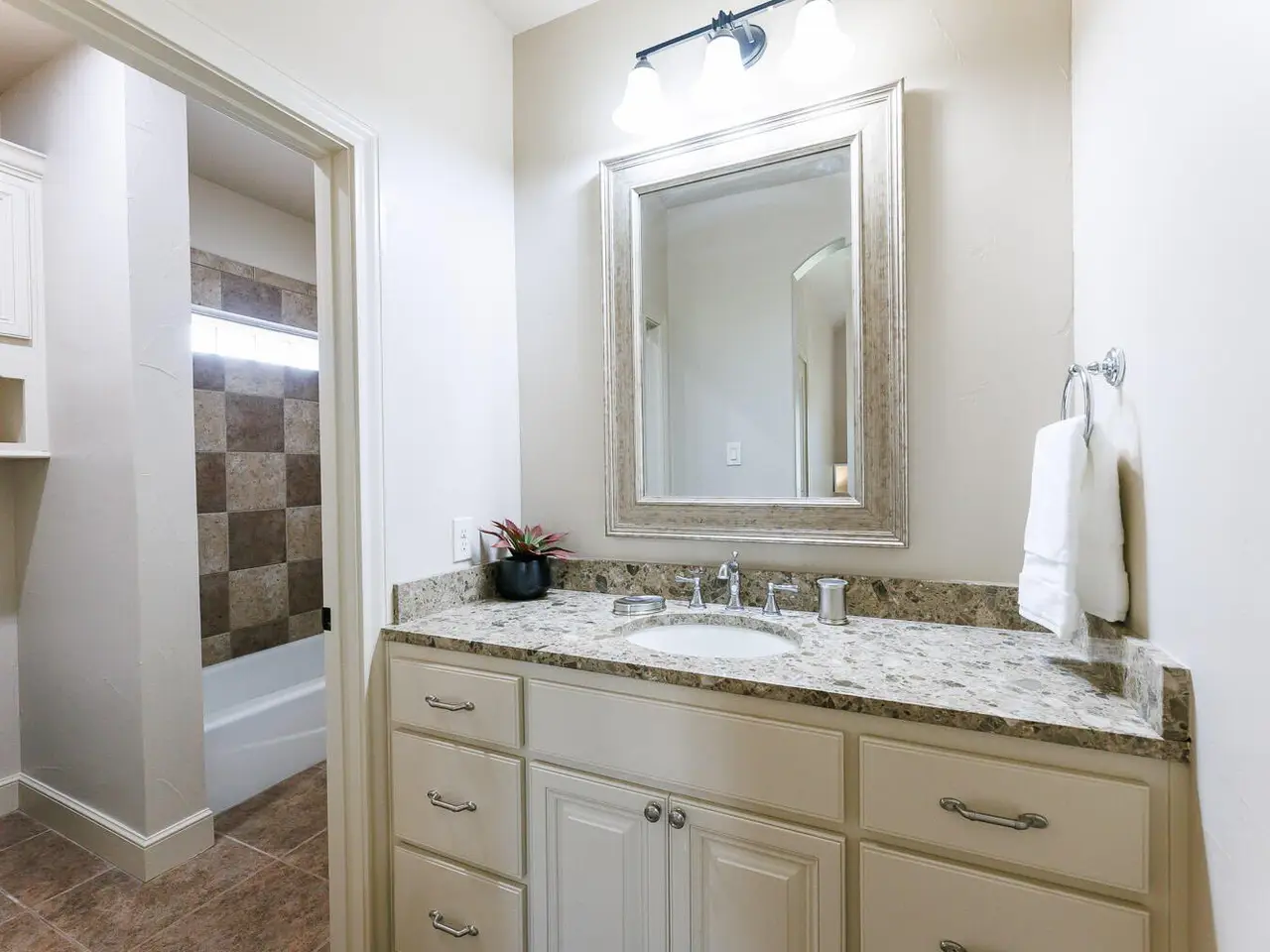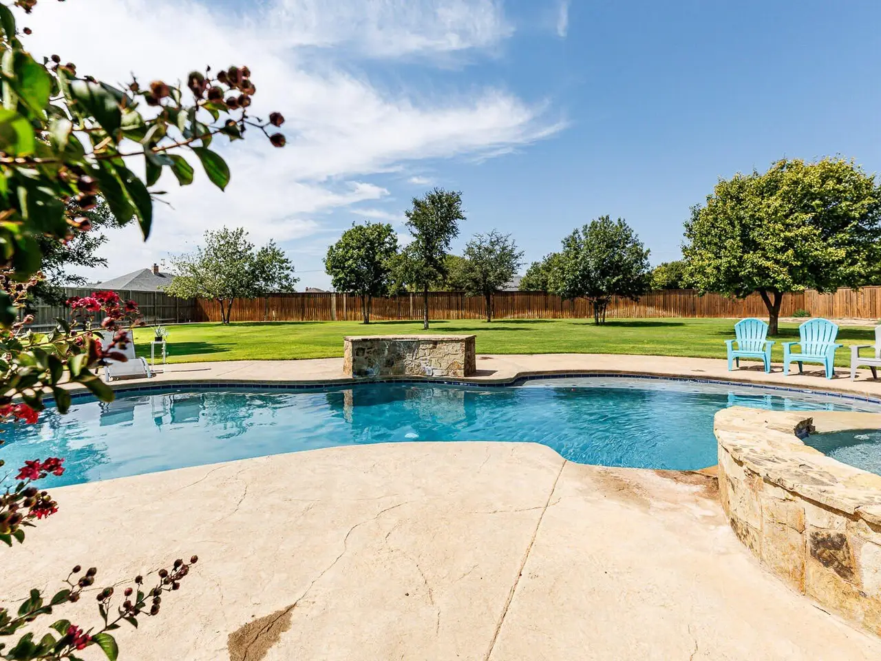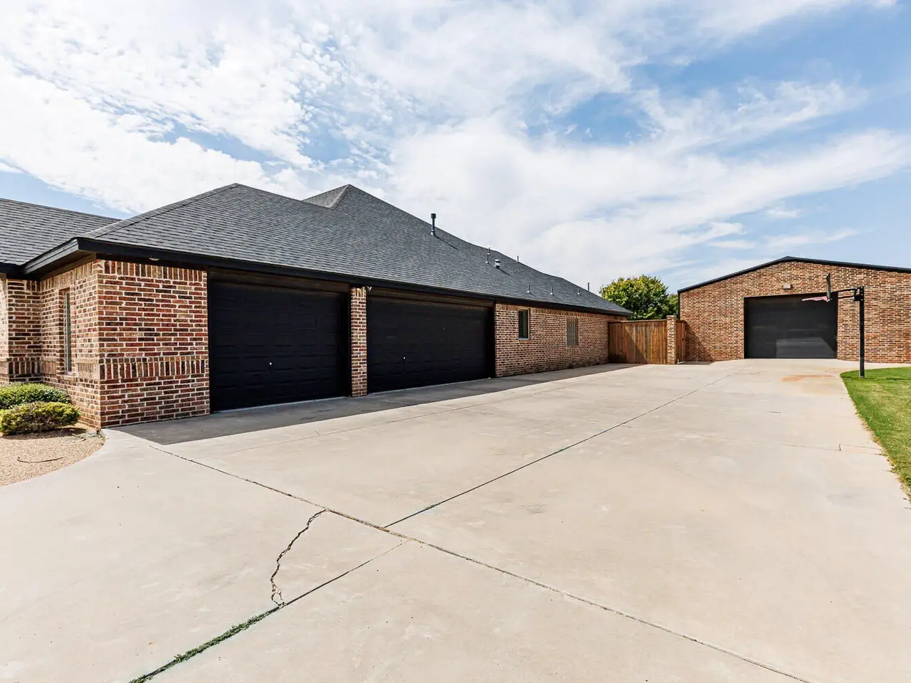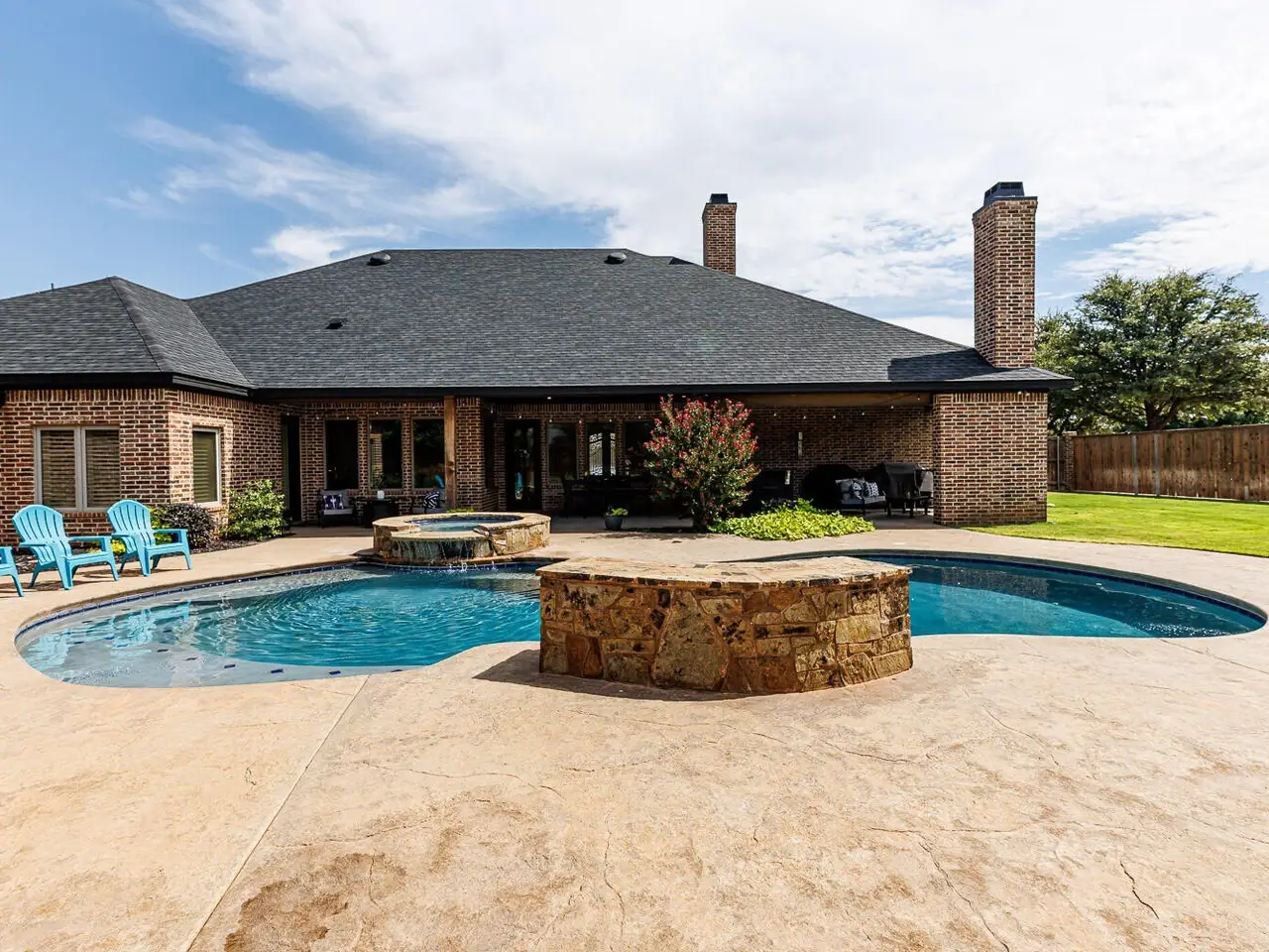 Amazing Home at Cedar Creek in Lubbock, where Iron gates and gorgeous homes set the stage for refined living. It offers four bedrooms, three bathrooms, a three-car garage, and a basement. The inviting living area boasts vaulted ceilings and a beautiful fireplace, opening seamlessly to the spacious kitchen with a large breakfast area, all overlooking the sparkling pool and expansive backyard. A formal dining room that doubles perfectly as a home office, a large pantry, a generous laundry room, a convenient office nook, and an isolated primary suite with a separate large shower and tub, perfect to unwind after a long day! Step outside to your private retreat, featuring a covered patio with bar and fireplace, a beautiful pool and hot tub, and plenty of room for entertaining. The shop, featuring two overhead doors and a bathroom plumbed for a shower, offers versatility as a workshop or a man cave. This Cedar Creek home offers the ideal balance of space and comfort! It is perfect for family gatherings, entertaining friends, and creating lasting memories. Don't miss out, schedule your showing today!