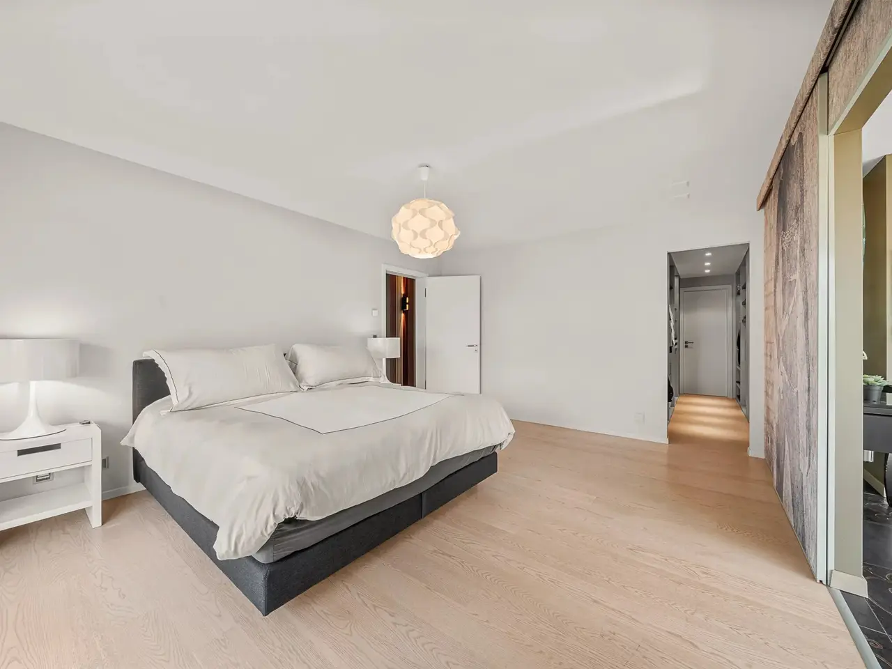 Discover this duplex penthouse apartment, located in a prestigious residence composed of two apartments. This exceptional property, spread over two floors, offers breathtaking views of Lake Geneva, blending modernity and elegance in an idyllic setting. The first level, spanning 136 sqm, opens onto a vast 180-sqm terrace, perfect for enjoying the stunning lake & Alps panorama. This level features four bedrooms, including two en-suites. The master suite is a true invitation to relaxation, with an open bathroom equipped with a shower and hammam, separate toilets, and a spacious walk-in closet. The second suite also has its own shower room and WC. Two additional bedrooms, an extra dressing room, and a bathroom with a shower and separate WC complete this floor. The second level, covering 160 sqm, is distinguished by its vast, light-filled living room, extended by a winter garden with direct access to a 107 sqm terrace wrapping around the floor. An elegant and functional open-plan kitchen seamlessly integrates with the dining area in this convivial living space. This floor also includes an en-suite bedroom with a shower room and separate WC, a guest WC, and an entrance with a cloakroom. The apartment benefits from four indoor parking spaces and a private garage (in addition), and two 12.5-square-meter cellars, providing generous storage space. A bright and elegant entry hall leads to the lift from the garage. The apartment benefits from Minergie-certified construction, ensuring high energy performance and a healthy living environment. For added convenience, central vacuuming is installed throughout the entire space. Additionally, the geocooling system provides natural and eco-friendly cooling during summer.