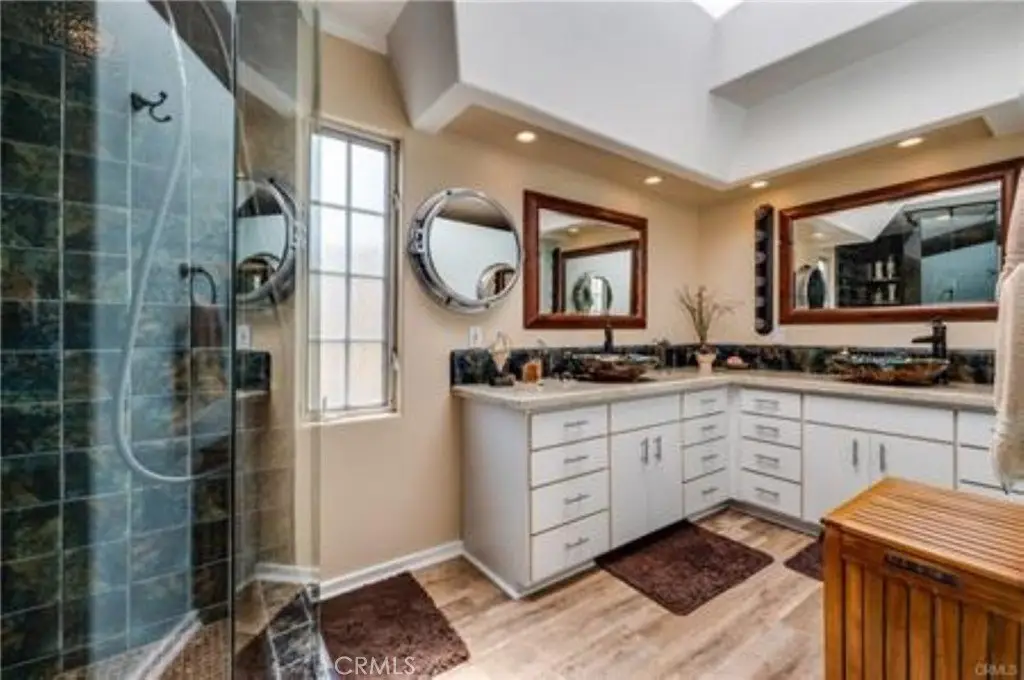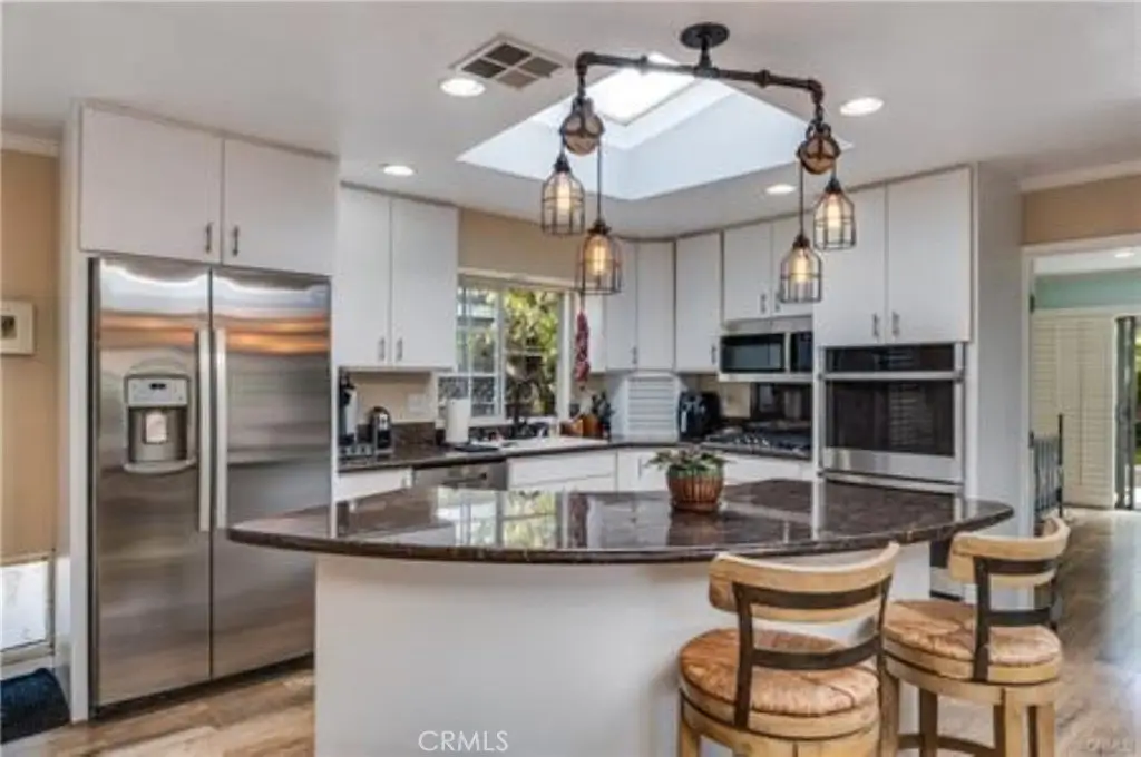 Welcome to a stunning, completely remodeled 2-bedroom, 2-bath open-concept home on the highly desired bluff of Paradise Cove in Malibu. This beautifully landscaped property features a modern 2-year-old aluminum roof with solar panels, an updated electrical panel with a designated exterior plug for a generator, and copper plumbing and electrical wiring throughout. The gourmet kitchen boasts new stainless steel appliances, including a double oven and 5-burner cooktop, granite countertops, custom cabinets, and a spacious granite-topped island with ample storage. A large skylight and custom lighting enhance the bright and inviting atmosphere. The dining area, adorned with a custom chandelier and China cabinet, opens to an expansive Trex deck via a sliding door. The family room, designed for entertaining, features two skylights and a double ceiling fan, while the large living room showcases an ocean-themed frieze at ceiling framed with marine rope, a corner travertine-faced gas fireplace, and art alcoves. The updated guest bath includes wainscoting, an enclosed shower over the tub, and ample storage. The open and bright primary bedroom has sliding doors leading to a back Trex deck and deck-level spa. The primary bath features a large walk-in shower with designer tile, a quartzite-topped custom dual sink vanity, and a skylight. Throughout the home, you'll find engineered wood flooring, recessed lighting, and plantation shutters. Outdoor amenities include a large built-in BBQ with a counter and seating area, a Rumford gas fireplace, a well-lit large shed with interior electrical outlets and shelving, and over 190 square feet of concrete-lined rolling storage hidden by sliding doors. The property is equipped with under-coach lighting for easy night access, a kayak storage bay, and extensive outside lighting controlled from the inside. Additional features include a tankless water heater, a covered driveway, an outside hot and cold water shower, a golf cart with its parking and charger, and an earthquake cradle for safety. This exceptional property offers unparalleled luxury and comfort in a prime Malibu location. Don't miss this incredible opportunity to own this beautiful retreat in the heart of Paradise Cove, Malibu. Embrace the beauty of coastal living and make this enchanting home yours today! Low space rent.