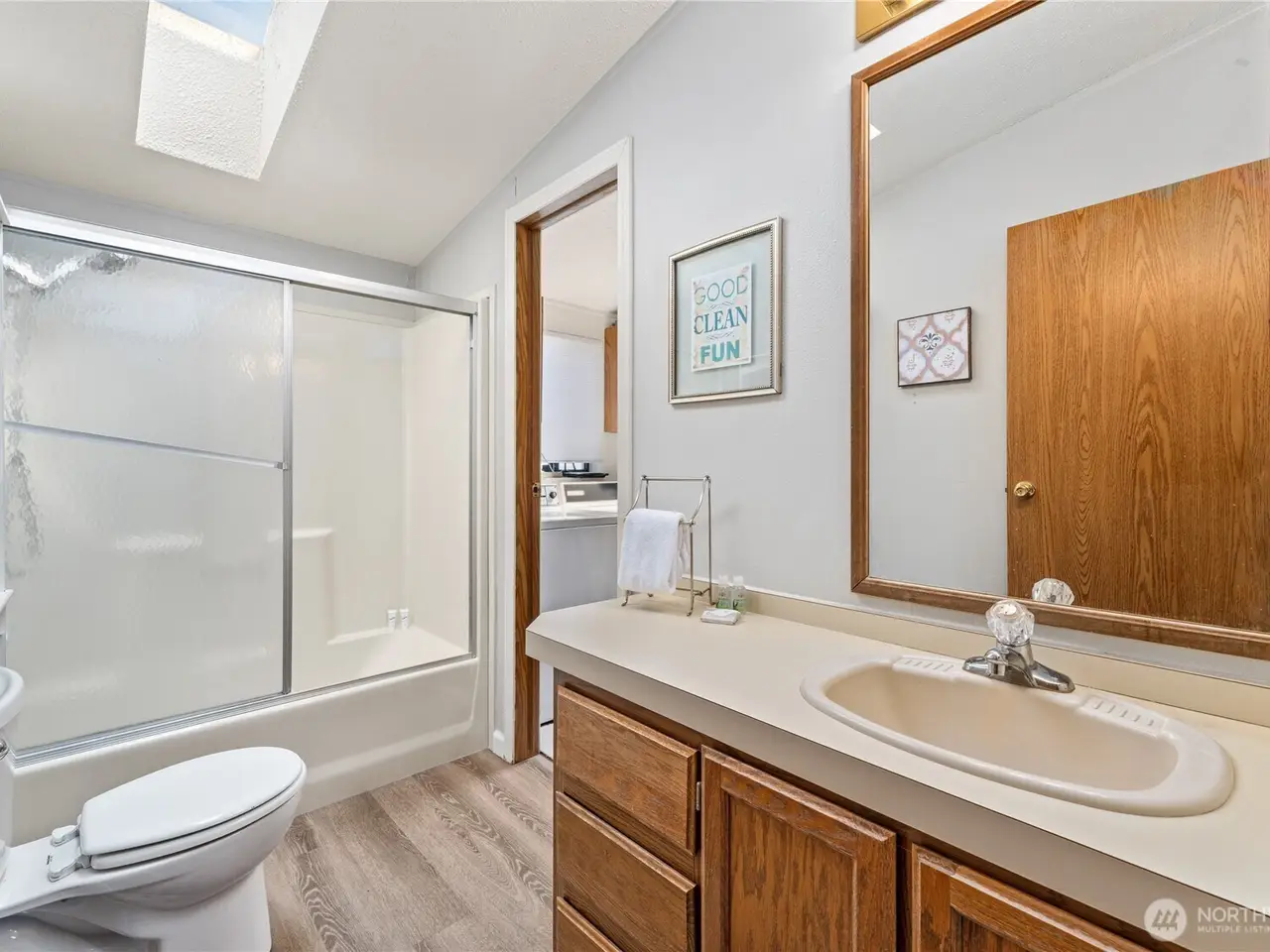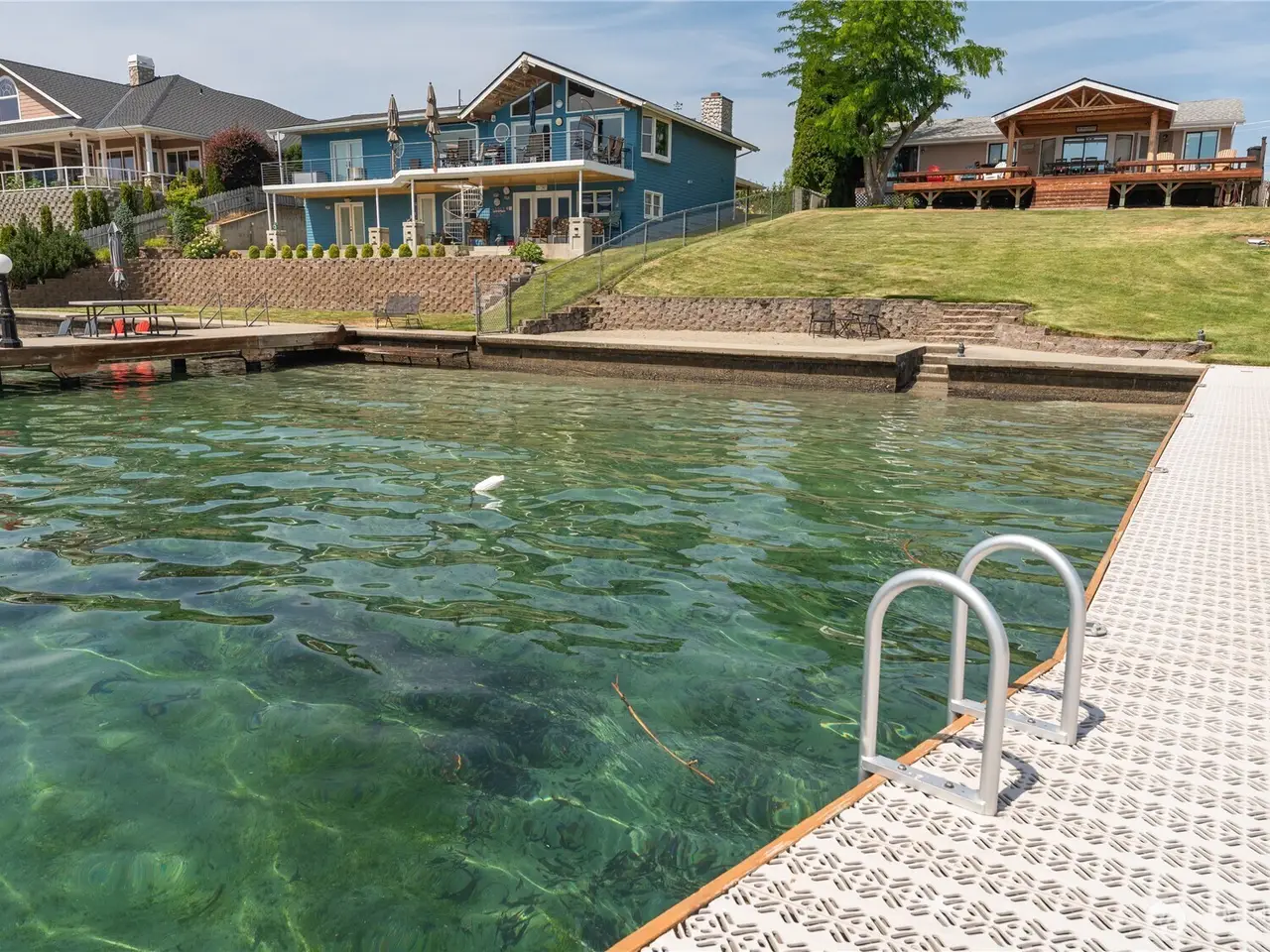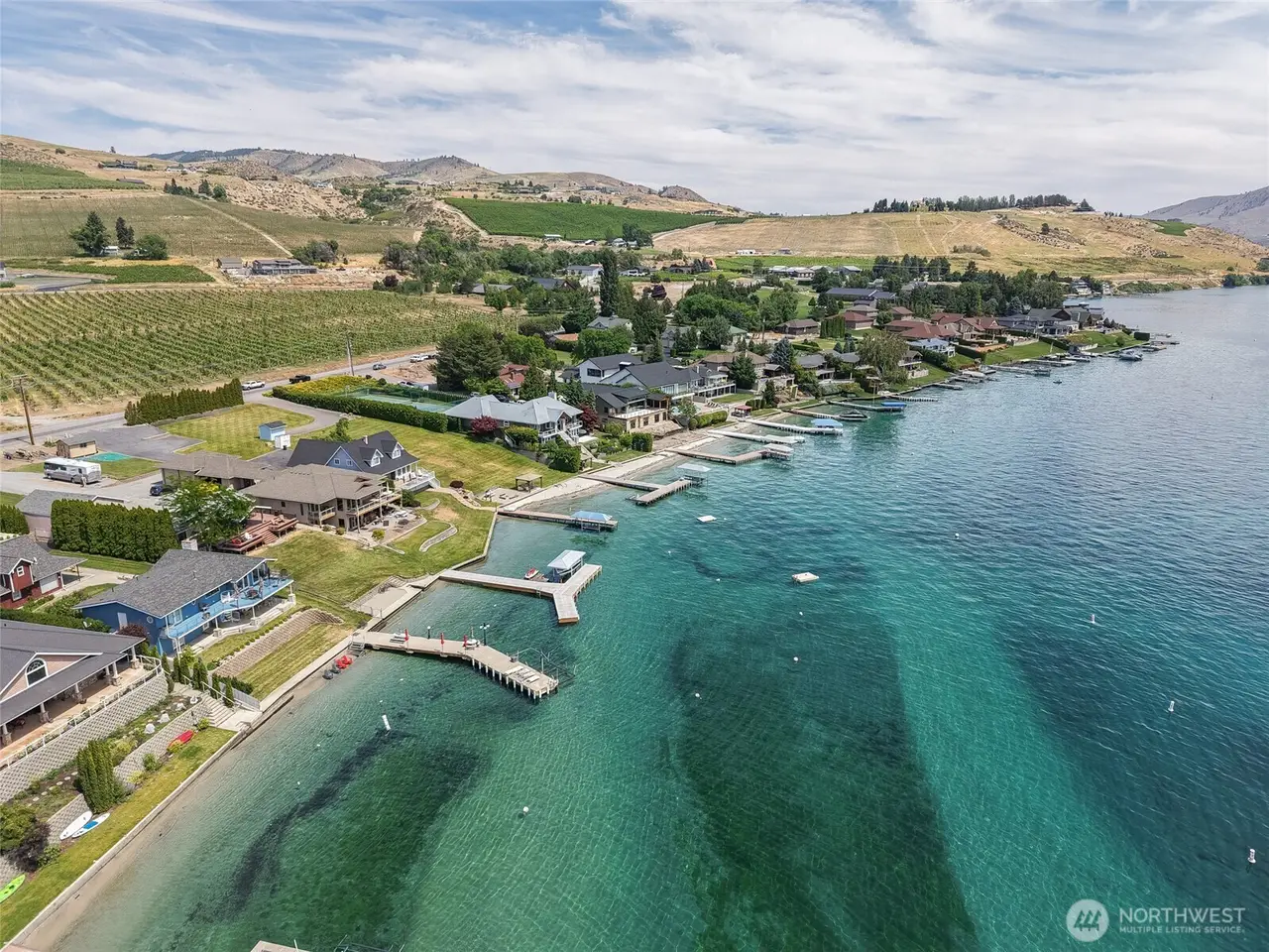 Welcome to 34 Leisure Lane! This rare .9-acre property boasts 56 feet of low bank waterfront with a concrete bulkhead and stairs to a sandy beach. Enjoy a resurfaced shared dock and a stunning, newer lake-facing deck off a charming three bed, two bath, 1,300 square foot home. Two lots (front and back) offer exceptional flexibility and space, including a three-bay shop, four RV hookups, and tons of parking. Mostly flat with a gentle slope - perfect for outdoor living and future development/building. Prime location with easy, level access off a paved road. On sewer, with LCRD domestic water and irrigation. One of the nicest stretches of real estate on Lake Chelan & amongst some incredible new homes and remodels. House plans by Complete Design can be included!