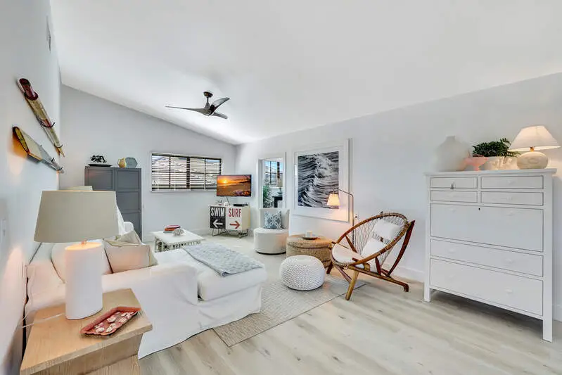 - Open floor plan with coastal-inspired finishes