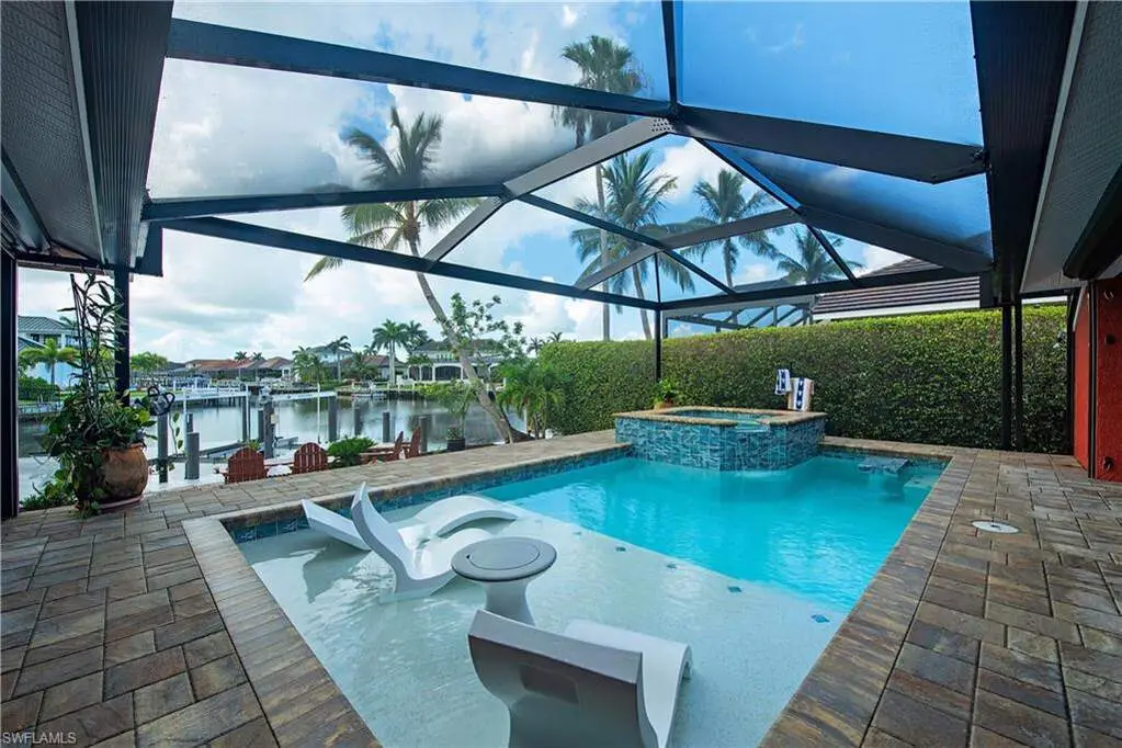 Welcome home to one of Marco Island's best-kept secrets - a sun-soaked, move-in-ready waterfront retreat offering the perfect blend of comfort, privacy, and island charm. This lovingly remodeled (2015) 2-bedroom + flex space, 3-bath home is ready just in time for seasonal living or year-round enjoyment. With its southern exposure, wide-water views at the convergence of canals, and dolphins and manatees as your daily neighbors, this home invites you to slow down and savor the natural beauty of coastal life. Tucked on a quiet street just 2 miles from the beach and walking distance to restaurants, shops, parks, and the seasonal weekly farmers market, the location offers a welcoming entry into a tight-knit, no-HOA community where friendliness is the local currency and every sunset feels like a private show. Inside, the home features a freshly painted interior (ceilings, walls, and trim) and a light-filled open-concept layout designed for effortless living and entertaining. The kitchen includes a breakfast bar that flows into the spacious great room, perfect for morning coffee or evening wine with friends. You'll find: A private guest suite with its own ensuite bath A flex space ideal for a home office or 3rd sleeping space A full pool bath/laundry room that's also connected to the owner's suite The primary bedroom includes a custom walk-in closet with a built-in island (8 full-size drawers + 4 smaller drawers), making dressers optional. The ensuite bath features a bidet and walk-in shower for spa-like ease. Outdoors, this home is a true oasis: Heated pool + spa with multi-color LED lighting controlled via aqualink, 3-piece in-pool Ledge Lounger furniture included, New picture window lanai screens + 15' x 30' covered space, Separate room off lanai for storing pool and fishing gear, 20' x 30' paved patio overlooking the water for dining, lounging, or stargazing, Private dock with 2 remote-control lifts: 14,000 lb boat lift 7,000 lb jet ski/kayak lift, 80-foot seawall, underwater lights, and your own artificial reef. The home is equipped with high-end upgrades to make life easy and secure: Whole-home generator (500-gallon propane tank, full at closing) Metal roof and Storm Smart screen for lanai protection Ring cameras front and back 2-car garage with app controlled garage door opener, epoxy floors, auto-lift storage, and adjustable shelving, Circular driveway for easy guest access Personal touches add charm: Mango and fig trees ready for harvest A rare staghorn fern, a living sculpture that thrives without soil Unique mailbox and turtle yard art that bring a bit of whimsy to your curb appeal. Whether you're seeking a full-time residence, seasonal retreat, or a luxury rental opportunity, this home is ready to welcome you - just in time for the coming season.