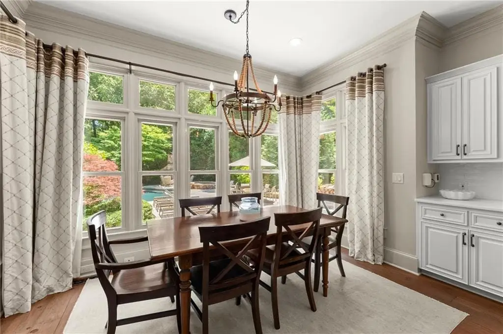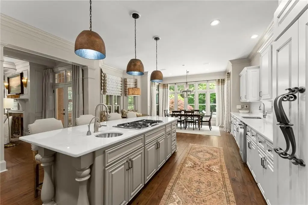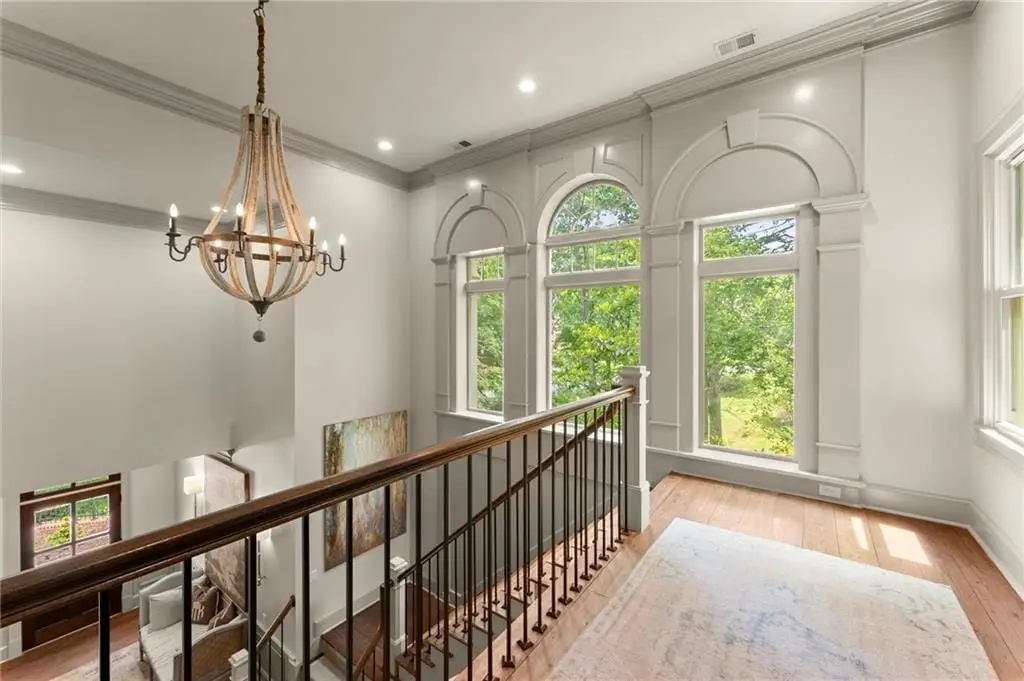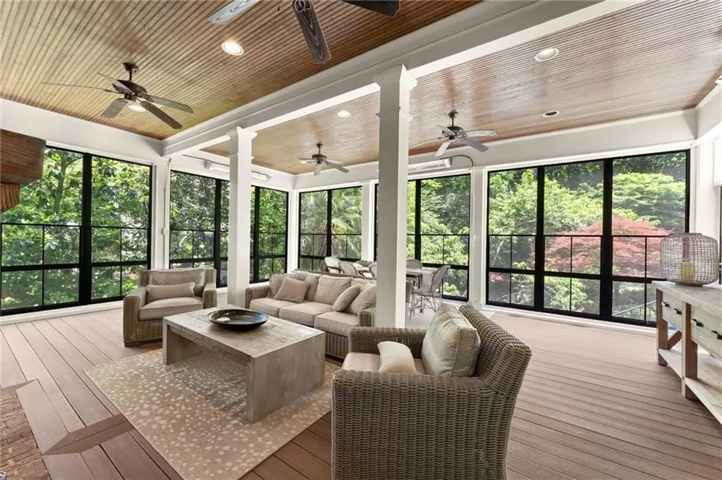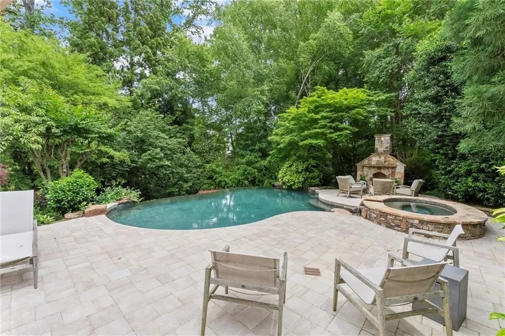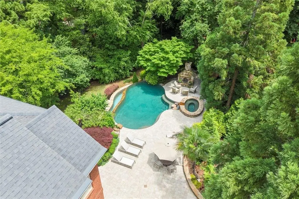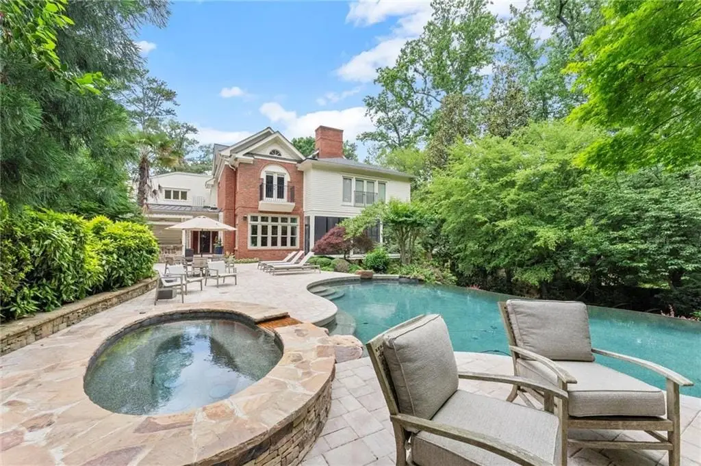 Exceptional home in Atlanta Country Club on a quiet cul-de-sac is enhanced with refined architectural details such as window transoms, privacy alcoves, high profile molding, stair landings and much more. The professionally designed and renovated residence offers a cohesive and timeless transitional style throughout making it turnkey ready. Upon entry, a two-story foyer will greet you with a truly elegant staircase and dramatic windows. A formal living room is adjacent to the entryway. A spacious but warm family room with coffered ceilings opens seamlessly to a sophisticated kitchen with marble countertops, Sub-Zero refrigerator, Thermador gas range, KitchenAid appliances, warming drawer, prep sink and banquet seating. A butlers pantry with wine fridge and glass cabinetry adds elegance while connecting the kitchen and dining room which easily accommodates 12 guests. The main level also offers a chic powder room with alcove entrance as well as a full bath with hidden shower, two large storage closets, and an expansive laundry room with built-ins and a desk area. A portico-covered private back entry leads into an access hallway with a mudroom and connects to the main laundry room. Upstairs the newly expanded Primary Suite is entered through a private sitting room with a fireplace. The oversized bedroom showcases a wall of windows with a stunning view of the pool and a fireplace. A true dressing room houses four custom, built-in armoires. The suite features His & Her walk-in closets. The fresh, all white primary bath includes a steam shower, heated floors, dual vanities, water closet and heated towel rack. Additionally, two more bedrooms with walk in closets are connected by a true Jack and Jill bath. A third secondary bedroom has an ensuite bath with a walk-in closet. A fourth suite style bedroom is accessed by a private staircase, ensuite bath and walk in closet. This large suite would be ideal for a nanny, guest or other. A secondary laundry room is located upstairs for convenience. A sixth bedroom with ensuite bath is on the lower level. The fully finished basement opens to a sunny spacious living area with a fireplace and leads to a fully equipped kitchen with double ovens, dishwasher, refrigerator and granite bar. Additionally there is a soundproof media room, weight room with sauna and a powder room. Enjoy year-round outdoor living on the covered porch featuring new Eze-Breeze windows, infrared heaters, and a cozy fireplace. The walk-out terrace level showcases an infinity-edge pool, brand-new paver pool deck (2024), hot tub with waterfall, outdoor kitchen with grill, sink, refrigerator, granite counters, bar seating, and a freestanding fireplace plus ample yard space beyond. Three-car garage with epoxy flooring. Ample parking in the driveway. This is luxury living at its finest in one of Atlanta’s most prestigious communities.