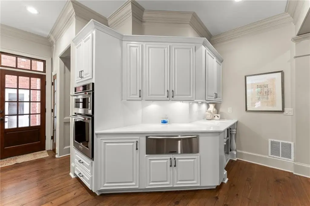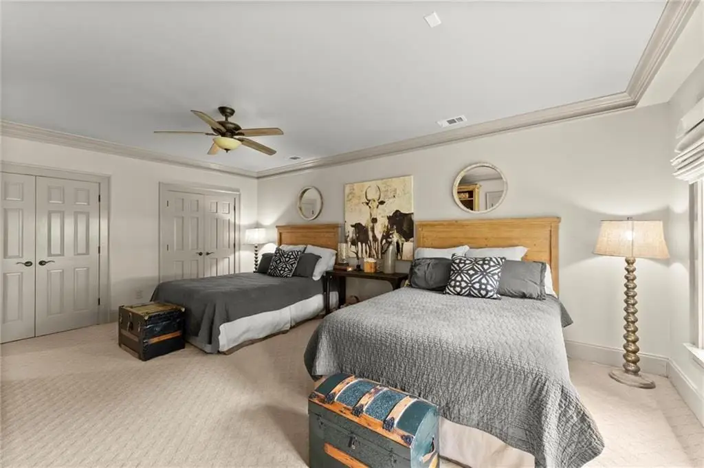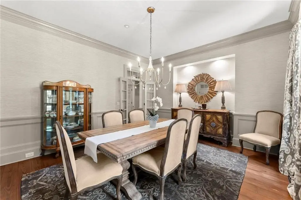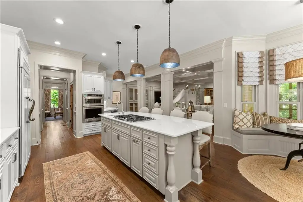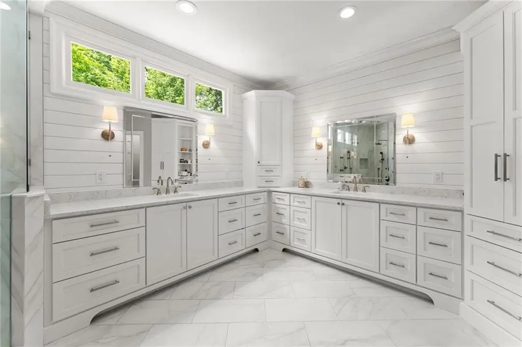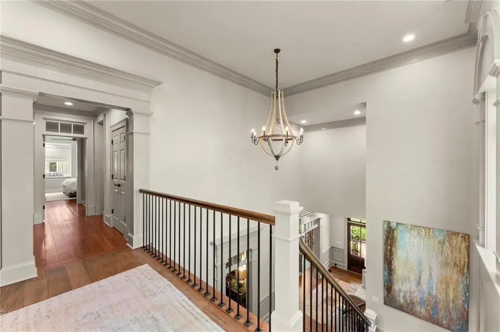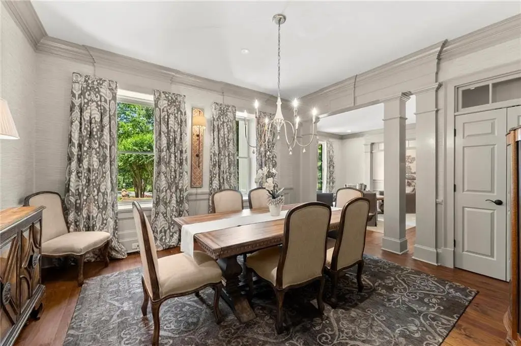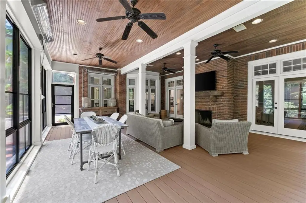 Exceptional home in Atlanta Country Club on a quiet cul-de-sac is enhanced with refined architectural details such as window transoms, privacy alcoves, high profile molding, stair landings and much more. The professionally designed and renovated residence offers a cohesive and timeless transitional style throughout making it turnkey ready. Upon entry, a two-story foyer will greet you with a truly elegant staircase and dramatic windows. A formal living room is adjacent to the entryway. A spacious but warm family room with coffered ceilings opens seamlessly to a sophisticated kitchen with marble countertops, Sub-Zero refrigerator, Thermador gas range, KitchenAid appliances, warming drawer, prep sink and banquet seating. A butlers pantry with wine fridge and glass cabinetry adds elegance while connecting the kitchen and dining room which easily accommodates 12 guests. The main level also offers a chic powder room with alcove entrance as well as a full bath with hidden shower, two large storage closets, and an expansive laundry room with built-ins and a desk area. A portico-covered private back entry leads into an access hallway with a mudroom and connects to the main laundry room. Upstairs the newly expanded Primary Suite is entered through a private sitting room with a fireplace. The oversized bedroom showcases a wall of windows with a stunning view of the pool and a fireplace. A true dressing room houses four custom, built-in armoires. The suite features His & Her walk-in closets. The fresh, all white primary bath includes a steam shower, heated floors, dual vanities, water closet and heated towel rack. Additionally, two more bedrooms with walk in closets are connected by a true Jack and Jill bath. A third secondary bedroom has an ensuite bath with a walk-in closet. A fourth suite style bedroom is accessed by a private staircase, ensuite bath and walk in closet. This large suite would be ideal for a nanny, guest or other. A secondary laundry room is located upstairs for convenience. A sixth bedroom with ensuite bath is on the lower level. The fully finished basement opens to a sunny spacious living area with a fireplace and leads to a fully equipped kitchen with double ovens, dishwasher, refrigerator and granite bar. Additionally there is a soundproof media room, weight room with sauna and a powder room. Enjoy year-round outdoor living on the covered porch featuring new Eze-Breeze windows, infrared heaters, and a cozy fireplace. The walk-out terrace level showcases an infinity-edge pool, brand-new paver pool deck (2024), hot tub with waterfall, outdoor kitchen with grill, sink, refrigerator, granite counters, bar seating, and a freestanding fireplace plus ample yard space beyond. Three-car garage with epoxy flooring. Ample parking in the driveway. This is luxury living at its finest in one of Atlanta’s most prestigious communities.