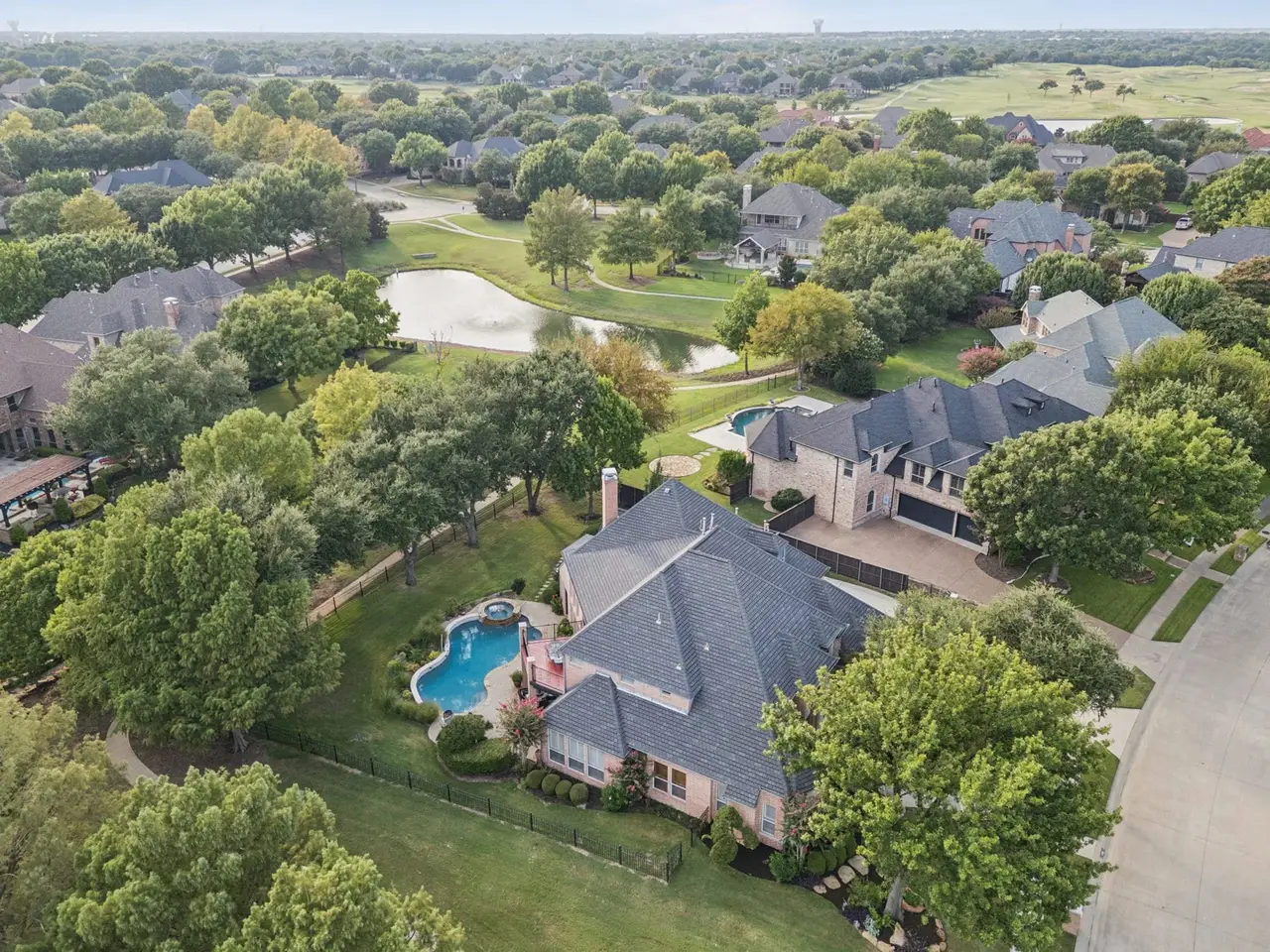 Rare East-Facing Gem in McKinney, TX - voted Best Place to Live in the U.S! Experience refined living in this custom masterpiece, gracefully situated on a large corner lot embraced by sweeping greenbelt views & tranquil ponds. Walls of windows frame a picture of serenity, while the setting offers both privacy & the vibrant active lifestyle of Stonebridge Ranch - with a highly rated Bennett Elementary just a short walk away. From the moment you arrive, stunning iron doors welcome you into a grand entryway where soaring ceilings & an open-concept design create the perfect stage for effortless entertaining. The chef’s kitchen is a showpiece, blending rich honey maple cabinetry with sleek granite countertops & premium appliances that will inspire culinary creations. The main level is a sanctuary of comfort & elegance. Retreat to the expansive primary suite, host guests in their own private suite, or work in style from the distinguished office with coffered ceilings. A versatile flex room with breathtaking pond views invites possibilities - from a game room to an intimate lounge. Gleaming hardwoods flow seamlessly throughout, adding warmth and timeless sophistication. Upstairs, the luxury continues with a spacious game or play area & three oversized bedrooms - each with hardwood floors, walk-in closets & bath access, ensuring comfort for all. Step outside to your own resort-style paradise. Multiple patios frame the sparkling pool & spa, where majestic trees & shimmering water create a backdrop of pure tranquility. Its the perfect setting to savor Texas sunsets & make lasting memories with family & friends. A rare combination of elegance & function, this residence also offers generous storage, expansive pantries & a side facing, three-car gated garage courtyard. With a subzero fridge, washer, dryer, TVs, state-of-the-art audio system & pool table included it's ready to move right in!
