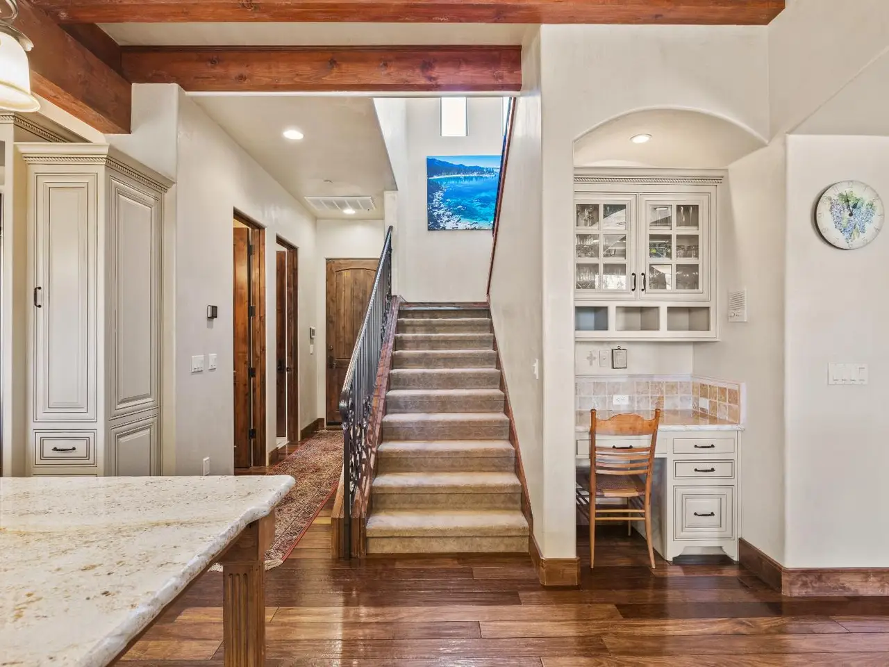 A Tuscan Masterpiece on the 18th Fairway at Winchester Country Club - Experience the elegance of 17th-century Italy blended with modern luxury in this stunning Tuscan-style estate high above the 18th fairway of Winchester Country Club. Spanning 5,236 square feet, this four bedroom, six bath home offers breathtaking views of the golf course and foothills. Enter into Old World charm with arched doorways, hand-molded plaster walls, and open-beam ceilings. Hardwood and tile floors flow throughout, accented by stonework and premium finishes. The gourmet kitchen boasts Viking and Bosch appliances, antique-glazed cabinetry, and chiseled granite countertops. The primary suite features a vaulted ceiling, stone fireplace, spa-like bath with heated marble floors, jetted tub, and dual copper sinks. Upstairs, enjoy a large Game/Home Theater room, wet bar, and expansive balcony with panoramic views. A charming casita offers versatility as a guesthouse or office. The outdoor space includes a front courtyard, covered patio, outdoor kitchen, spa, and fountain, all overlooking the golf course views from this 1.10 acre lot. Additional features include owned solar, a Generac Standby Generator, a wine cellar, and a four-car garage. This estate offers unparalleled luxury in a premier golf course setting.