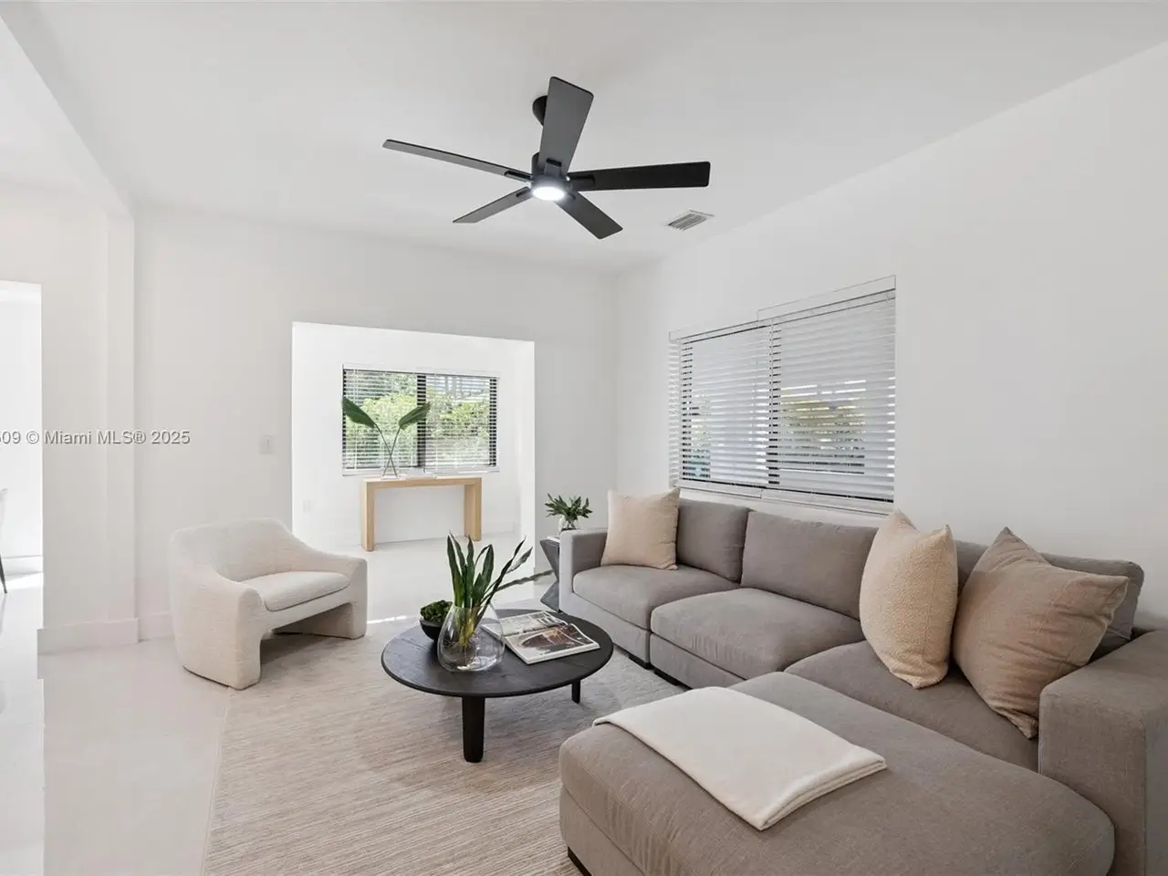 Turnkey renovation in the historic Mary Brickell Roads neighborhood. Bright, modern 3-bedroom, 3-bathroom house with a private 1-bedroom, 1-bathroom guest house—both showcasing all-new impact windows and doors, tile flooring throughout, custom floor-to-ceiling kitchen cabinetry, quartz countertops, oversized kitchen islands with waterfall edges, new stainless steel appliances, custom bathrooms with floor-to-ceiling tile, in-unit washer and dryer, and central A/C. The guest house is connected by a quiet, professionally landscaped courtyard and viewing deck, while the main house also offers a private front deck and garden—perfect for enjoying peaceful mornings and afternoons. Prime location within walking distance to places of worship, A-rated schools, world-class shopping, and entertainment.