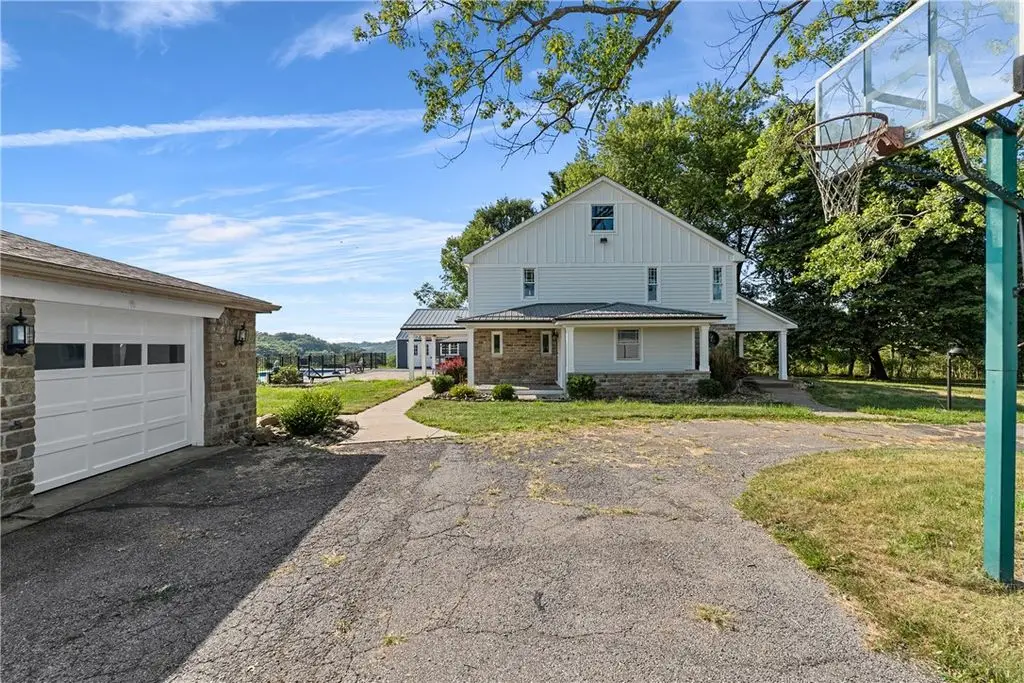 Welcome to this beautifully renovated five bedroom contemporary craftsman's style farmhouse nestled on 1.5 acres in a picturesque country setting. Completely updated throughout, this home seamlessly blends modern comfort with timeless charm. This home is the perfect retreat for space, style and serenity. The home offers an abundance of windows with sun-filled living areas, two-story Great Room with stone log-burning fireplace, designer kitchen with huge center island kitchen, fully equipped to meet all your culinary needs, updated baths, main level home office and secondary bedroom. Nicely sized mudroom and two laundry rooms. Outside is an entertainer's paradise-enjoy the swimming pool, poolside clubhouse, featuring an outdoor built-in bar, and hot tub. A three-car detached garage provides ample storage and workspace. This property offers the best of country living with modern amenities just minutes to major highways, shopping and recreation.