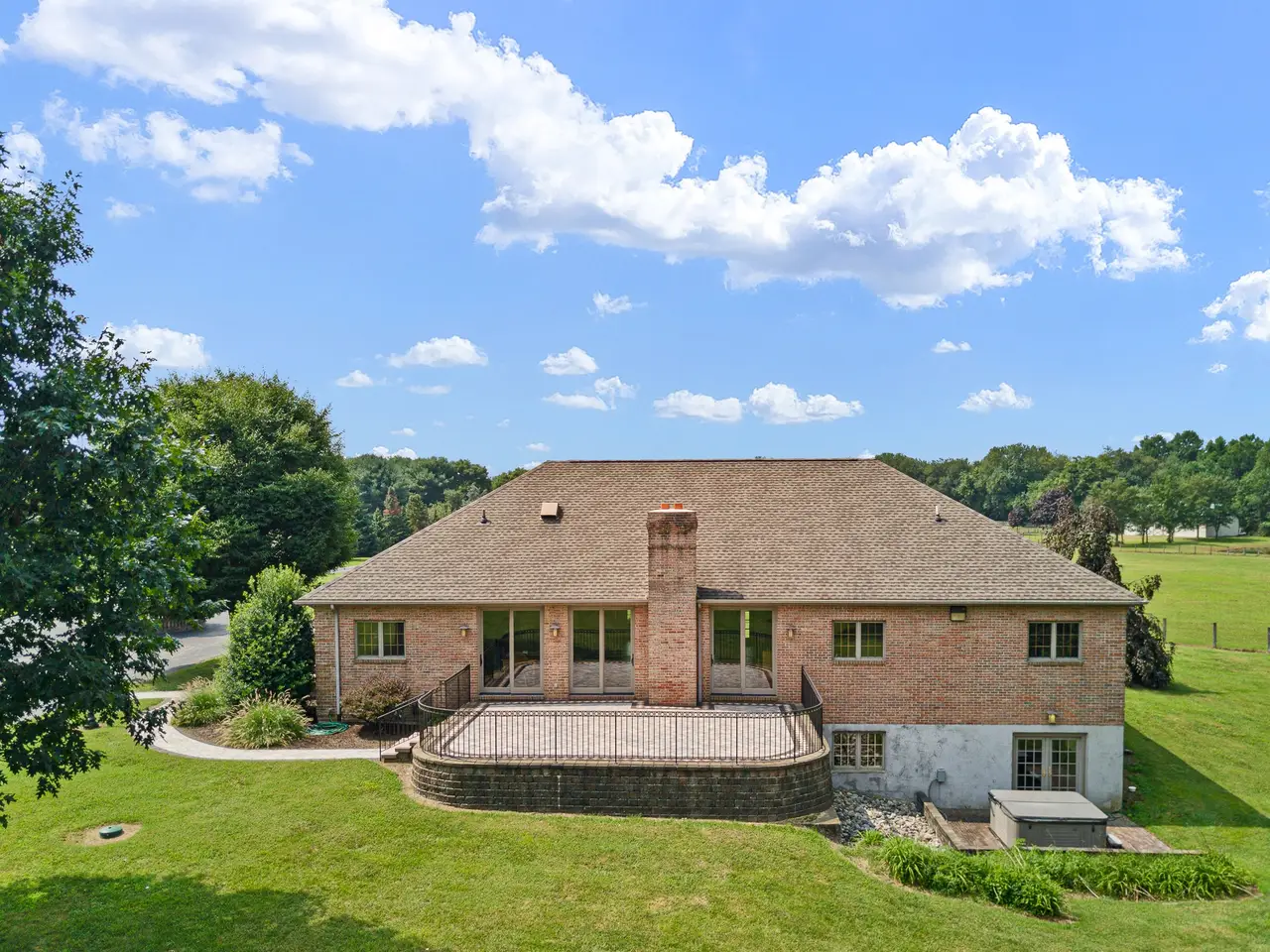 Welcome to Windmere Farm – a stunning country estate situated on 14.21 acres, recently enhanced with over $135,000 in updates. This custom, all-brick ranch blends comfortable living with casual luxury, offering features that go well beyond the ordinary. As you enter the spacious foyer, your eye is immediately drawn to the family room and the expansive views beyond, visible through two tall sliders leading to the patio and backyard. To the right, the open dining area offers another slider for seamless indoor-outdoor living. The chef’s kitchen is a true showpiece, equipped with: 6-burner Viking gas range with two ovens (one gas, one convection); Sub-Zero refrigerator/freezer; two Bosch dishwashers; under-counter ice maker; and custom hickory cabinetry with soft-close drawers and under-cabinet lighting. Just off the family room is a charming library, featuring custom cherry built-ins and a large arched window. It can be closed off with pocket doors for privacy. Beyond the library, glass French doors open to a large flex room—ideal for a second office, playroom, or studio—which also connects to the kitchen. On the opposite wing, a pocket door leads to the bedroom quarters. The primary suite boasts a triple arched window, a spacious en-suite bath with updated fixtures and lighting, and a large walk-in closet. Two additional bedrooms share a beautifully updated hall bath. The fully finished lower level—with walk-out access to the hot tub - features new LVP flooring, a private office space, and a mini-split system for year-round comfort. Step outside the family room to a large patio with custom wrought iron railings and Cambridge pavers. Across from the kitchen is the four-car, all-brick garage, complete with: tile flooring; EV charging station; wall-mounted vacuum system; gas heat and full insulation. For additional space, a 42' x 60' insulated pole barn with heat, A/C, water, and electric sits nearby. The property also includes: fenced pasture with run-in shed (currently home to Teddi, the llama); backyard cedar woodshed; heated/cooled kennel with auto-fill water station and two garage bays; and 8 water hydrants throughout the property. Recent updates include: roof (5 years old); Marvin Ultimate windows & sliders (new); engineered hardwood flooring; full interior repaint (2024); septic inspection & repairs (2024). Windmere Farm offers peace and quiet, with horses as your neighbors, while being just minutes from restaurants, shops, and all that Middletown has to offer. The home is not visible from the street—showings are by appointment only. Call Renée with any questions.