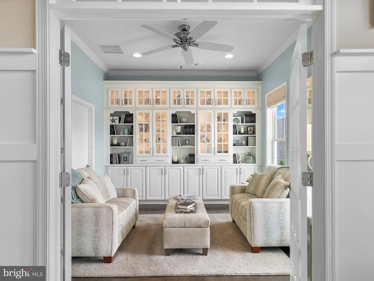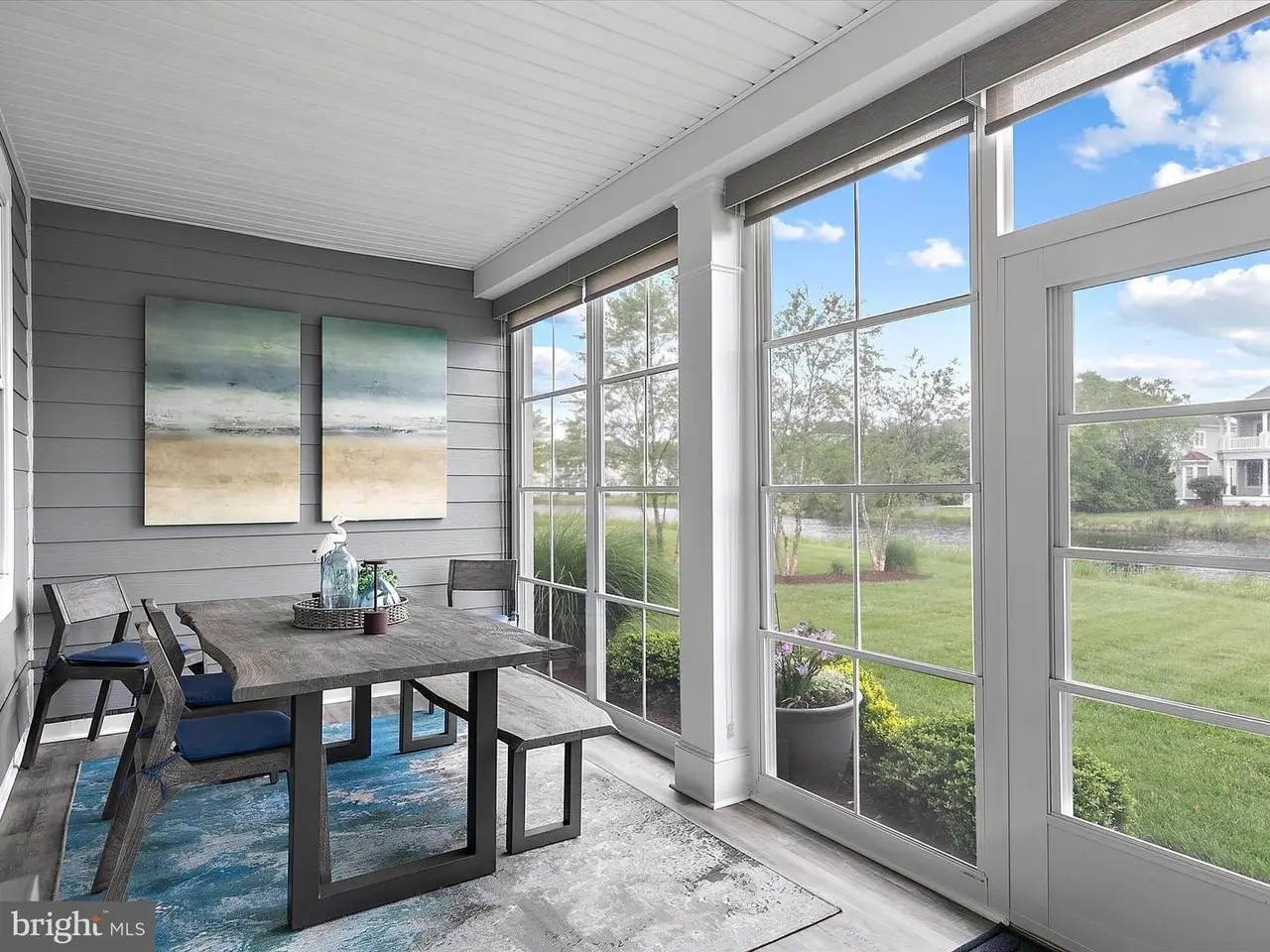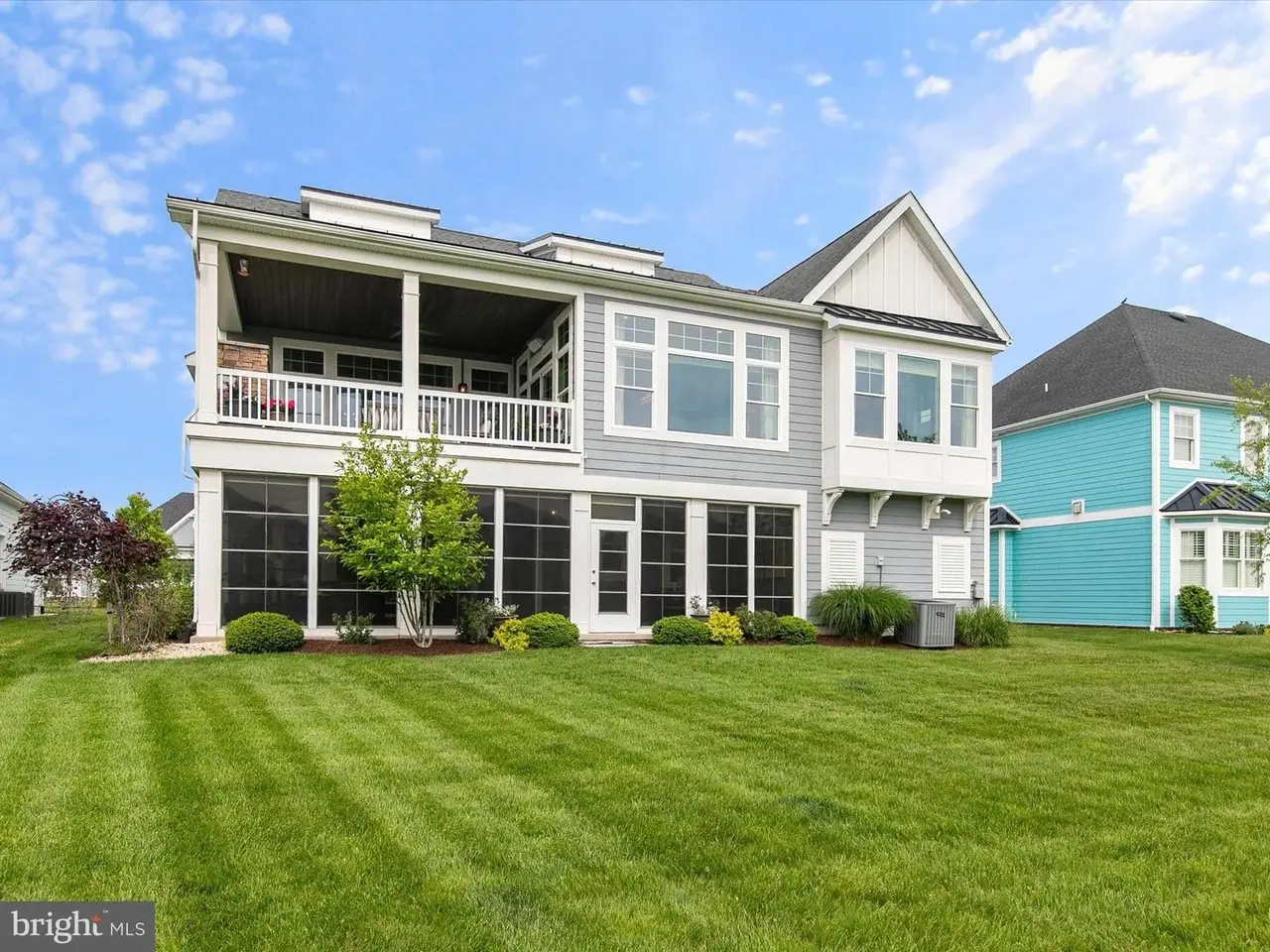Coastal Elegance Perfected in the Peninsula on Indian River Bay Tucked into one of the most sought-after coastal communities in Delaware, this exquisite residence in the Peninsula on the Indian River Bay offers a lifestyle as elevated as its design. With over 3,000 square feet of luxury living space, three bedrooms, three and a half baths, and sweeping pond views, this home seamlessly blends refined coastal style with thoughtful upgrades at every turn. A premium pond lot sets the tone before you even step inside, with custom landscaping, stone facade accents, and an inviting front porch that whisper of the quality within. Step through the front door and be immediately struck by the craftsmanship, wide-plank, random width, hand-scraped engineered hardwood floors flow throughout the main level, complemented by triple-panel wainscoting, crown moldings, and designer lighting fixtures that lend warmth and sophistication to every space. At the heart of the home, a top-tier chef's kitchen stuns with quartz countertops, a custom center island, and white farmhouse sink framed by a glass tile backsplash and premier cabinetry. An additional wall oven, Advantium oven, under-cabinet lighting, and even a built-in vacuum beneath the sink make this kitchen as functional as it is beautiful. The adjacent dining area was extended during construction, adding space for entertaining and opening to the upper deck through sliding glass doors. A coffered ceiling elevates the dining experience, while a cantilevered gas fireplace with full stone surround anchors the living room with coastal charm. Every detail throughout the home has been curated with an eye for elegance-from the beamed ceiling and dormer beadboard detail in the living room to the tray ceiling with beadboard and crown molding in the foyer. Plantation shutters and custom window treatments throughout lend a cohesive, high-end aesthetic. The main level also features a serene primary suite, thoughtfully positioned for privacy, with additional windows, a tray ceiling with rope lighting and headboard detail, and a luxurious en-suite bath. Frameless shower doors, granite-topped vanities, and premier cabinetry make every morning feel like a spa day. Downstairs, the lower level unfolds into a private retreat ideal for guests or relaxed gatherings. A custom entertainment space includes ambient cabinetry lighting, upgraded carpet, a bar sink and wine fridge, and access to the covered rear porch-enclosed with EZ-Breeze panels and finished in low-maintenance LVP flooring with solar shades for year-round enjoyment. An optional third full bath adds convenience and flexibility. Outdoor living is elevated even further on the covered upper rear deck, complete with a fireplace, built-in grilling and cooking area, and tranquil pond views. Whether sipping your morning coffee or entertaining under the stars, this space is designed to inspire. The three-car garage is a rare find, featuring custom cabinetry, professionally installed epoxy flooring, and an expansive storage and utility room. Even the laundry room received a flooring upgrade, reflecting the meticulous attention to detail found throughout the home. Located within the amenity-rich Peninsula community, you'll enjoy exclusive access to a Jack Nicklaus Signature Golf Course, an indoor and outdoor pool, fitness center, spa, tennis and pickleball courts, miles of walking trails, a private beach, and the iconic clubhouse. With everything from bayfront dining to nature preserves just steps from your door, this is more than a home; it's a gateway to a lifestyle of unmatched coastal luxury.
