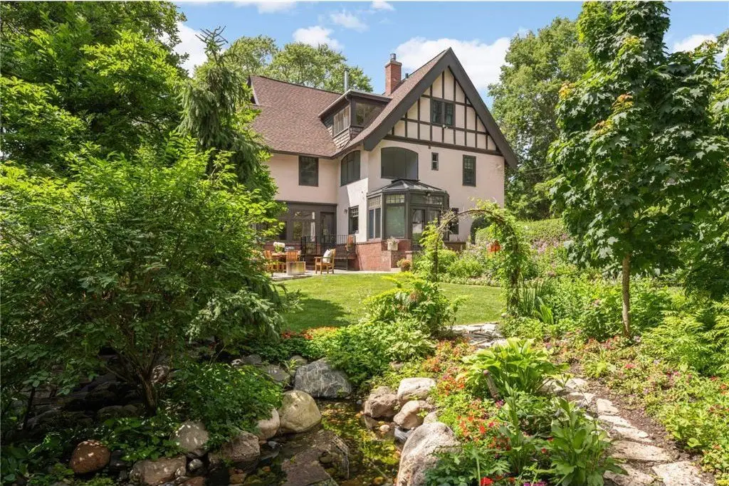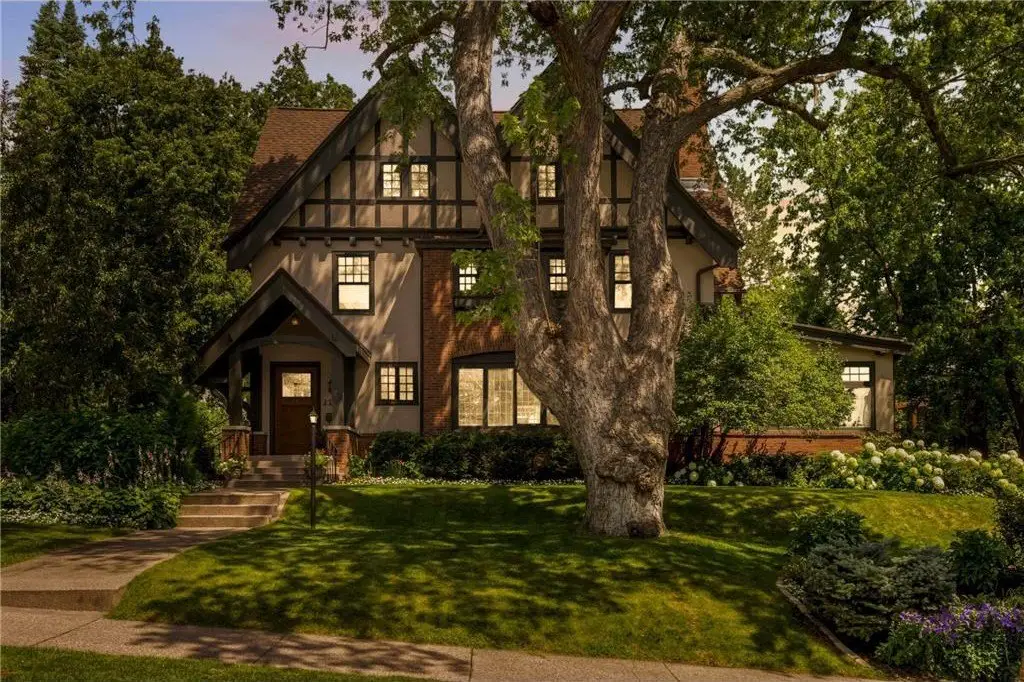 LOCATION, location... Nestled between Lake of the Isles & DT Mpls, renowned architect, Harry Wild Jones, designed this stately 1909 American Tudor Revival. Situated on an oversized lot, the house exudes a magical, casual elegance. Effortlessly melding historic beauty with thoughtful renovations. Main floor highlights include a beautifully crafted open staircase; a chef's kitchen with an atrium-style dining nook, inset cabinetry, walk-in pantry, & prof appliances; custom oak mudroom; a sun-filled formal dining rm w/ orig clay floor tiles; Leaded French doors; a cozy den w/ rich oak wookwork & built-in bookshelves; and, a spacious formal living room with the orig woodburning fireplace. The backyard is STUNNING w/ multiple access points for seamless indoor/outdoor living. A true oasis with an expansive tiered bluestone patio & terrace, mature gardens, and a peaceful babbling brook. Plus, the perfect sodded flat area for kids & adults alike. Note the clever (large) bike + canoe + paddleboard storage under the terrace for EZ access to LOTI & trails. The 2nd & 3rd floor offers tree-top lake views and hosts 5 bedrooms (including the luxe primary suite), an office, 4 thoughtfully appointed bathrooms, 2 charming porches, & ample attic storage. Completing this fine home is the lower-level hang-out space (w/gorgeous limestone walls), a renovated 3/4 tiled bath, laundry, and additional storage. MOVE IN and ENJOY the Minneapolis Lakes Area to the fullest.