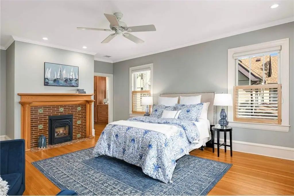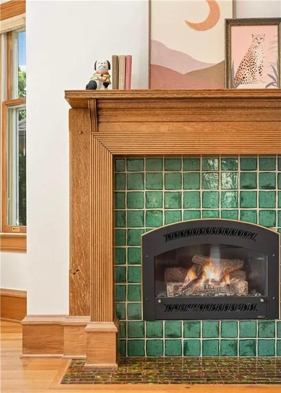 • Original fireplaces with tilework