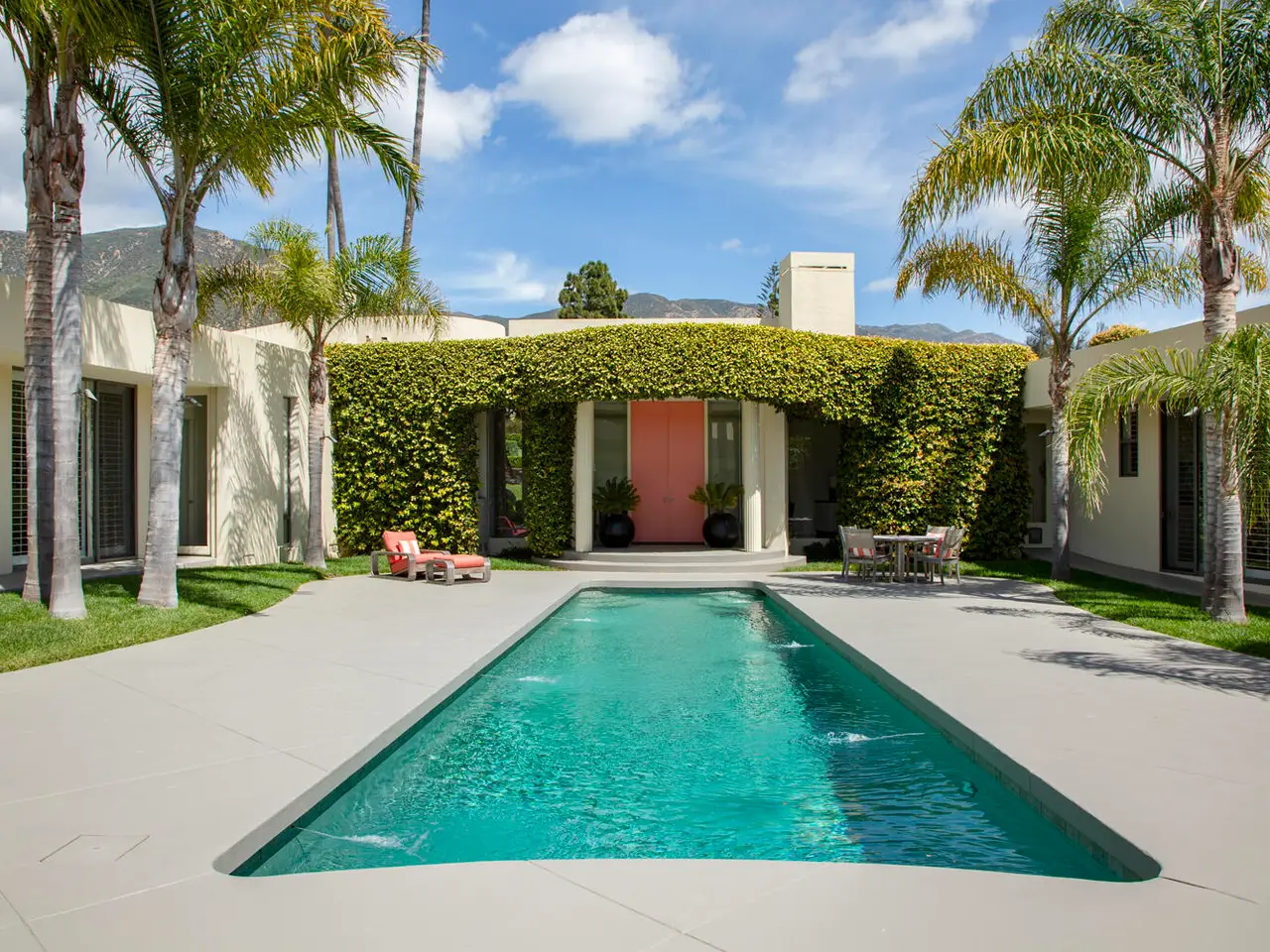 Mid-century elegance with a Palm Springs vibe and sweeping views in Montecito's guard-gated Birnam Wood Golf Club. Move-in ready with flexibility to reimagine-virtually staged images highlight design options. Designed by James Morris, the home showcases clean lines, walls of glass, and seamless indoor-outdoor flow. Set in the Golden Quadrangle, it offers panoramic mountain and fairway views, a dramatic courtyard with pool, and sunlit interiors. With soaring walls and open spaces, it's an art collector's dream. The flexible, mostly single-level layout includes 3 bedroom suites, office, 2 powder rooms, detached studio, and ample parking. Steps from the clubhouse, enjoy golf, dining, and community amenities.