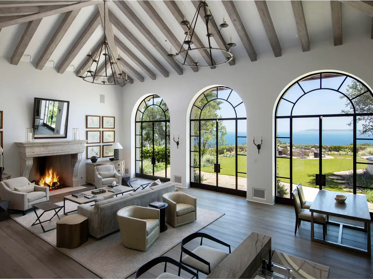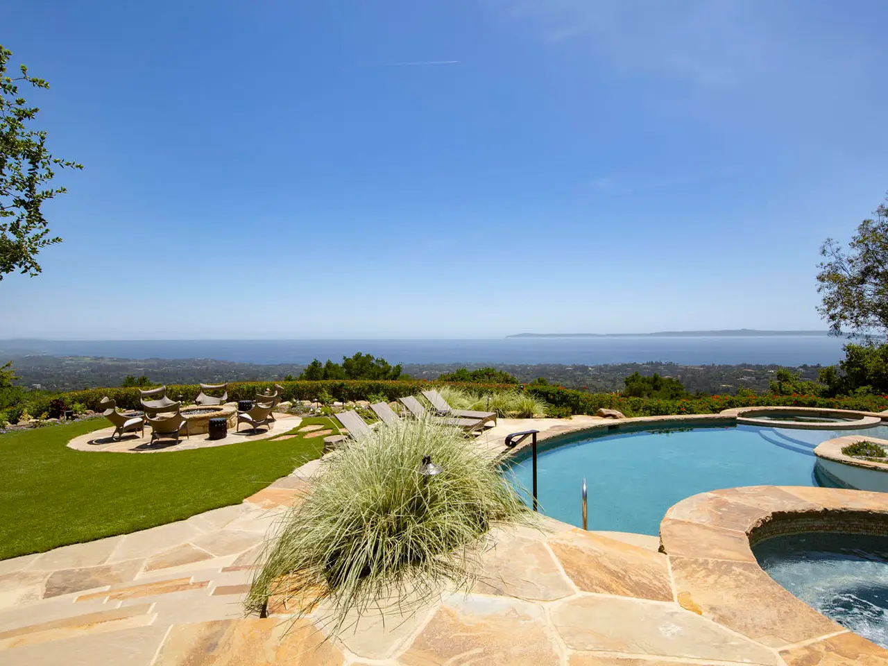 Nestled in the hills of Montecito, this newly renovated estate offers unmatched panoramic ocean, island, and mountain views. The grand main residence features soaring ceilings, wide-plank wood floors, arched French doors, a showstopping kitchen, a formal dining room, and a luxe primary suite with dual bathrooms and closets. Three additional bedroom suites, two guest houses, and stunning outdoor spaces--complete with an outdoor kitchen, pool, spa, gardens, and multiple terraces--create an unmatched living experience in a private gated setting.