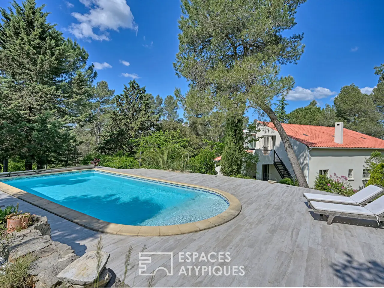 Just a few minutes from Montpellier, nestled in a preserved natural environment, this character house stands on a wooded plot of over 7,300 sqm, on the edge of a 10-hectare pine forest, a rare privilege in the immediate vicinity of the city. Behind its recently renovated facades, this building develops a generous surface area where space and light are in the spotlight. The ground floor accommodates four bedrooms, two bathrooms, as well as a 50 sqm dual-aspect living room, built around a cozy fireplace. A vast terrace naturally extends the interior spaces to the outdoors, ideal for savoring the tranquility of the place. Set aside, a discreet swimming pool invites you to relax in complete privacy. The interior, bright and functional, retains its authentic charm while offering multiple possibilities for development: a mezzanine overlooks the living room and leads to a 19 sqm room to be arranged according to your desires? office, library, or spare bedroom. Upstairs, a 50 sqm independent apartment, accessible from both the exterior and interior of the house, completes the property. It is a real asset for accommodating family, friends, or for considering rental income. The outdoor spaces, to be reinvented, leave room for all projections: vegetable garden, landscaped garden, or relaxation area in the shade of the pines? Located a few hundred meters from schools, shops, and public transport, this property combines absolute calm and practical daily life. Interior renovation work is expected (floors, kitchen, bathrooms), allowing everyone to personalize the place according to their tastes while preserving the existing character. A rare property, between nature and the city, offering remarkable potential in a sought-after area. ENERGY CLASS: D - 186 / CLIMATE CLASS: CD- 49 Estimated average amount of annual energy expenditure for standard use, established from energy prices for the years 2021, 2022 and 2023: between EUR5,850/year and EUR7,960/year. Additional information * 9 rooms * 5 bedrooms * 3 bathrooms * Outdoor space : 7317 SQM * Parking : 5 parking spaces * Property tax : 3 335 €