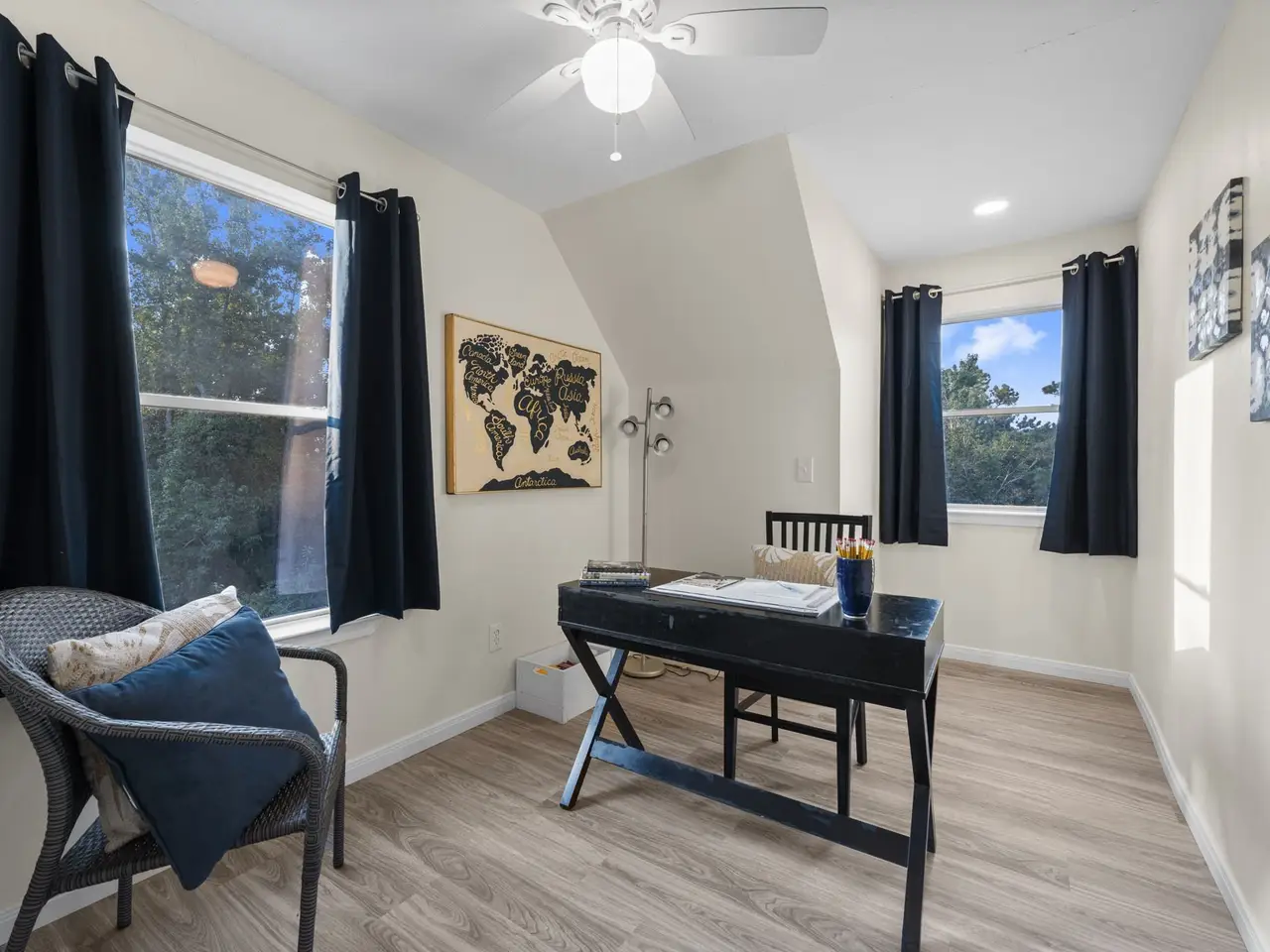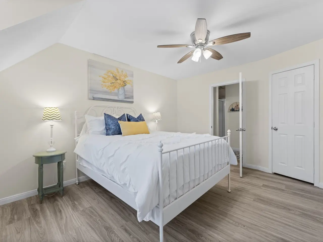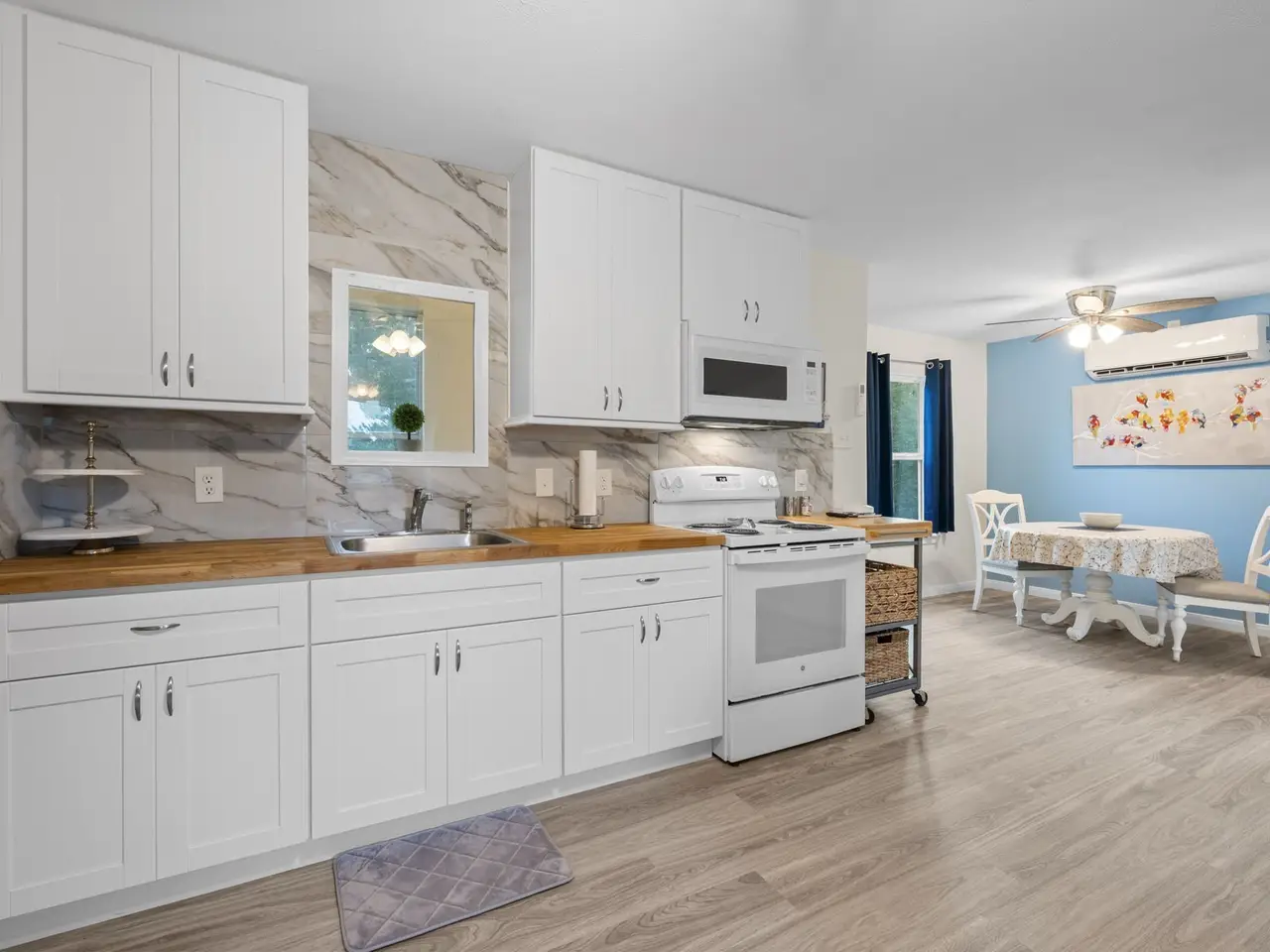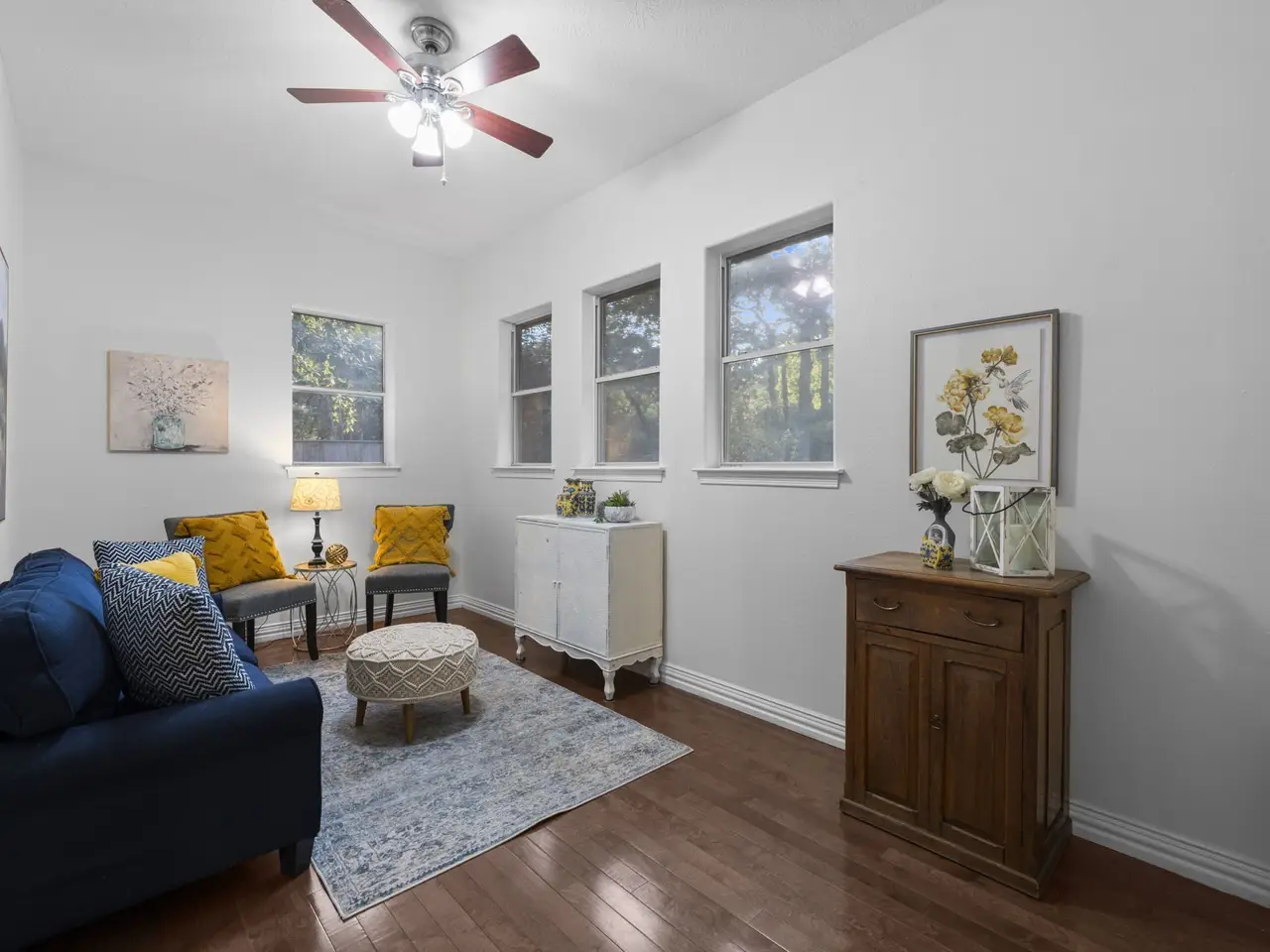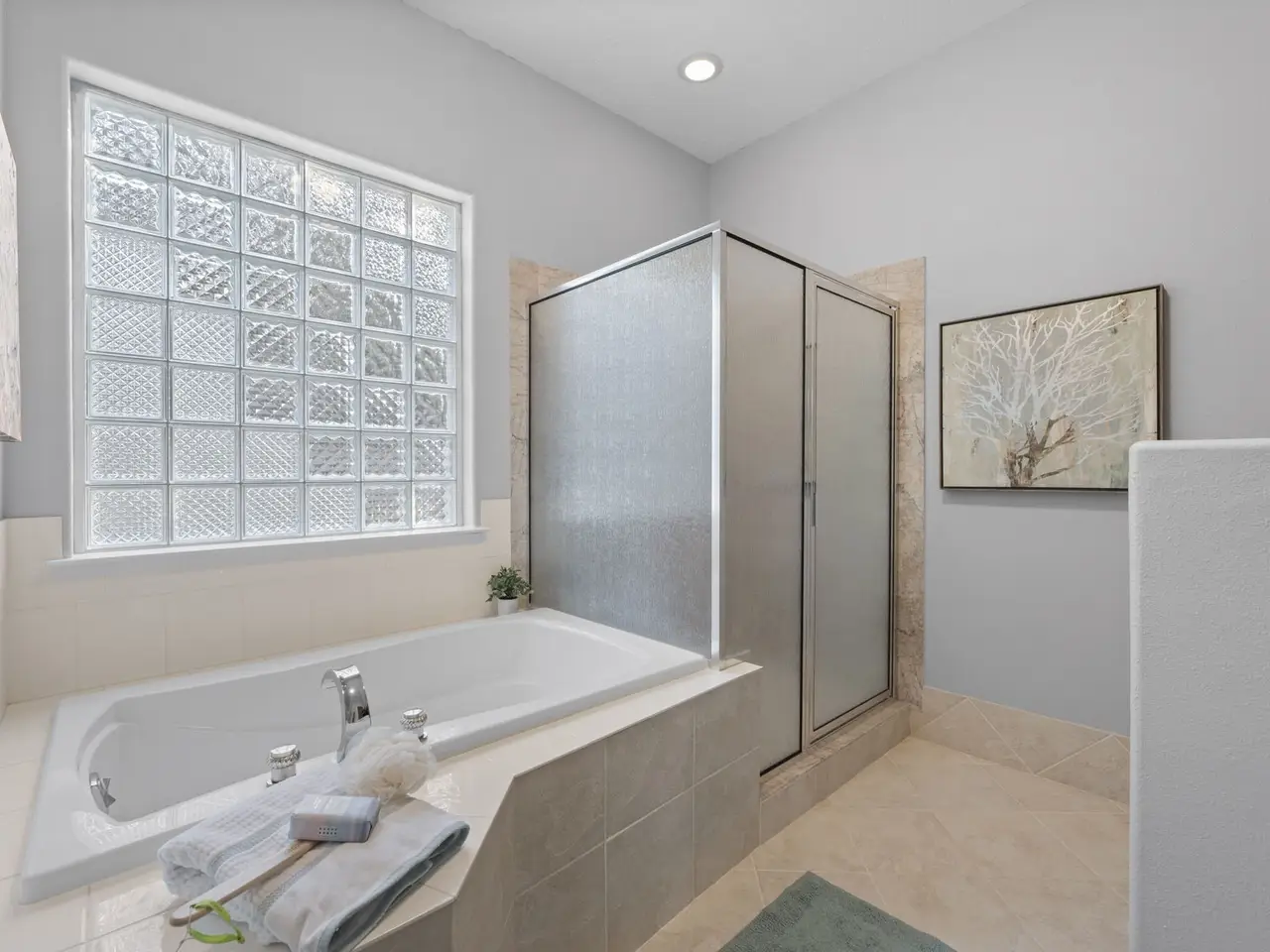 Gorgeous 3.19-acre estate in highly sought-after GATED Crown Oaks, just north of The Woodlands. This expansive property comprises a 5,496 sq ft main residence beautifully updated plus a 797 sq ft renovated garage apartment. Main house features 4 bedrooms and 4.5 baths, including TWO PRIMARY suites on the main level for convenient single-floor living. Completely renovated, chef-inspired kitchen with a large island, quartz and granite countertops, white cabinetry, and new appliances with adjacent hearth room and breakfast room. Generous family room with a wall of windows flooding the space with natural light, complemented by new LVP flooring throughout much of the downstairs. Upstairs includes a large game room and media room, plus two spacious bedrooms with private baths. Renovated upstairs garage apartment: two bedrooms, full kitchen, living room, and bathroom. Fully fenced back yard with a large covered back porch, perfect for entertaining and soaking in the serene 3.19-acre setting.
