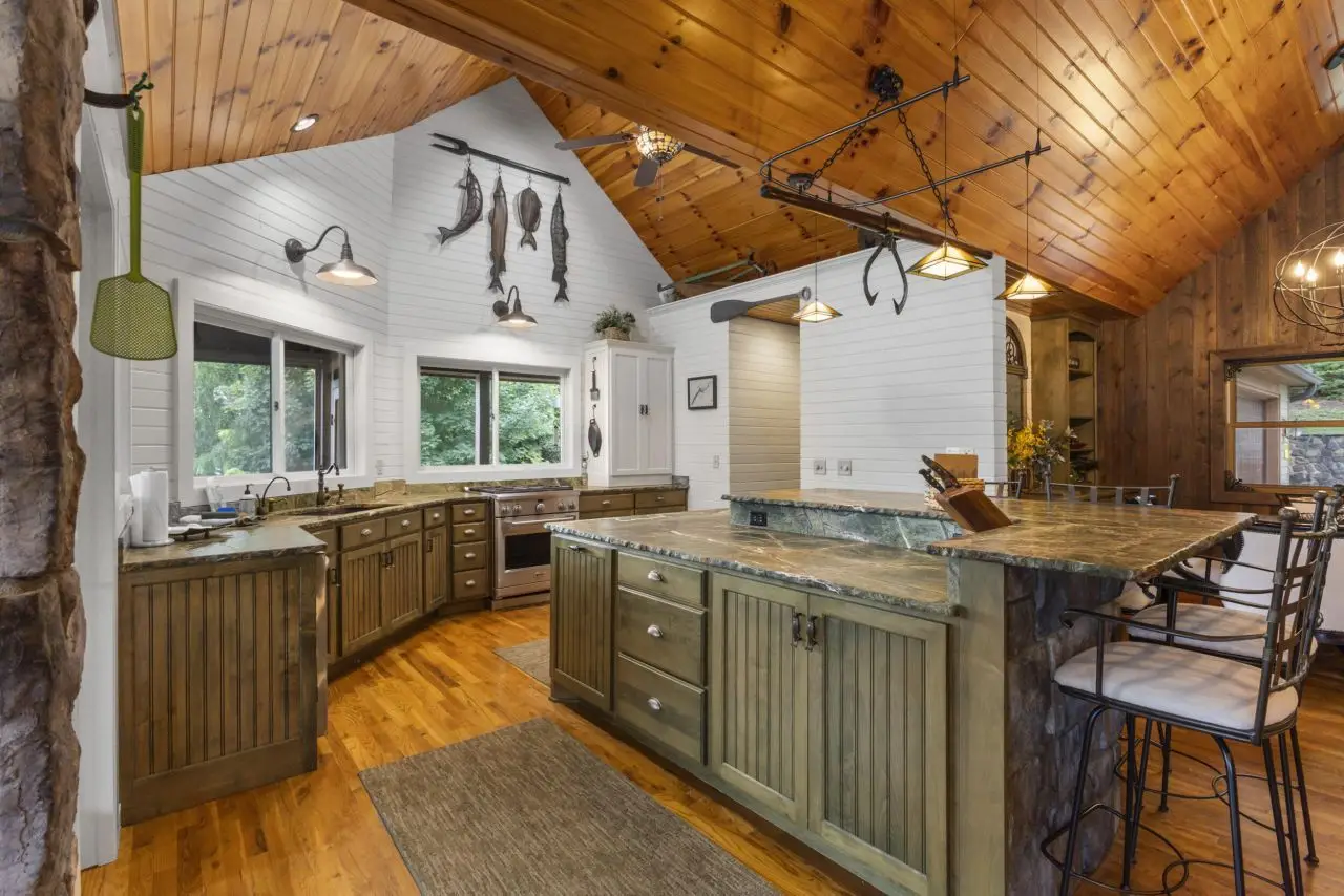 Welcome to 743 Jim Town Rd - Nestled on the serene shores of Cherokee Lake, this one-of-a-kind retreat was masterfully crafted to be a true oasis. From the moment you enter, you're greeted by the warmth of natural textures and awe-inspiring lake views framed by soaring floor-to-ceiling windows. Exposed beams, intricate custom woodworking, built-ins throughout, and a wood stove fireplace create a sense of timeless comfort, elevated by modern ease like remote-controlled electric blinds. Step into the gourmet kitchen featuring chiseled, leathered granite, a Monogram series gas range, custom cabinetry, and a serving pantry complete with a sub-zero refrigerator, a refrigerator drawer and freezer drawer with ice machine, and walk in pantry, hidden by custom sliding doors. The main-level primary suite is a sanctuary with lake views that greet you each morning and a spa-like bathroom that invites you to slow down. Dual vanities, a walk-in shower with body jets, his-and-her closets, and a private dressing room complete the experience. Downstairs is ideal for guests, family, and playful escapes. A generous living area with a kitchenette/bar opens to a guest suite, a children's quarters fitted with custom bunk beds + a full bath, and a secret hideaway perfect for a playroom or bonus sleeping space. Step outside to discover your private lakefront lifestyle. Entertain on the screened porch or open-air deck. Unwind on the lower-level covered patio with a hot tub and gather around the stone fire pit under starlit skies. With 288' of pristine shoreline, your floating dock powered by solar energy, boat lift and jet ski port is waiting on you. A detached 2 level garage provides generous space to house cars, toys, and gadgets. Other improvements include a back up generator, newer roof (2021), and manicured landscaping. A home of this caliber is rarely offered and difficult to replicate. Every detail speaks to thoughtful design and expert craftsmanship. 743 Jim Town Road is truly a remarkable lakefront retreat - one that must be seen to be fully appreciated. Give me a call today to schedule a private tour.