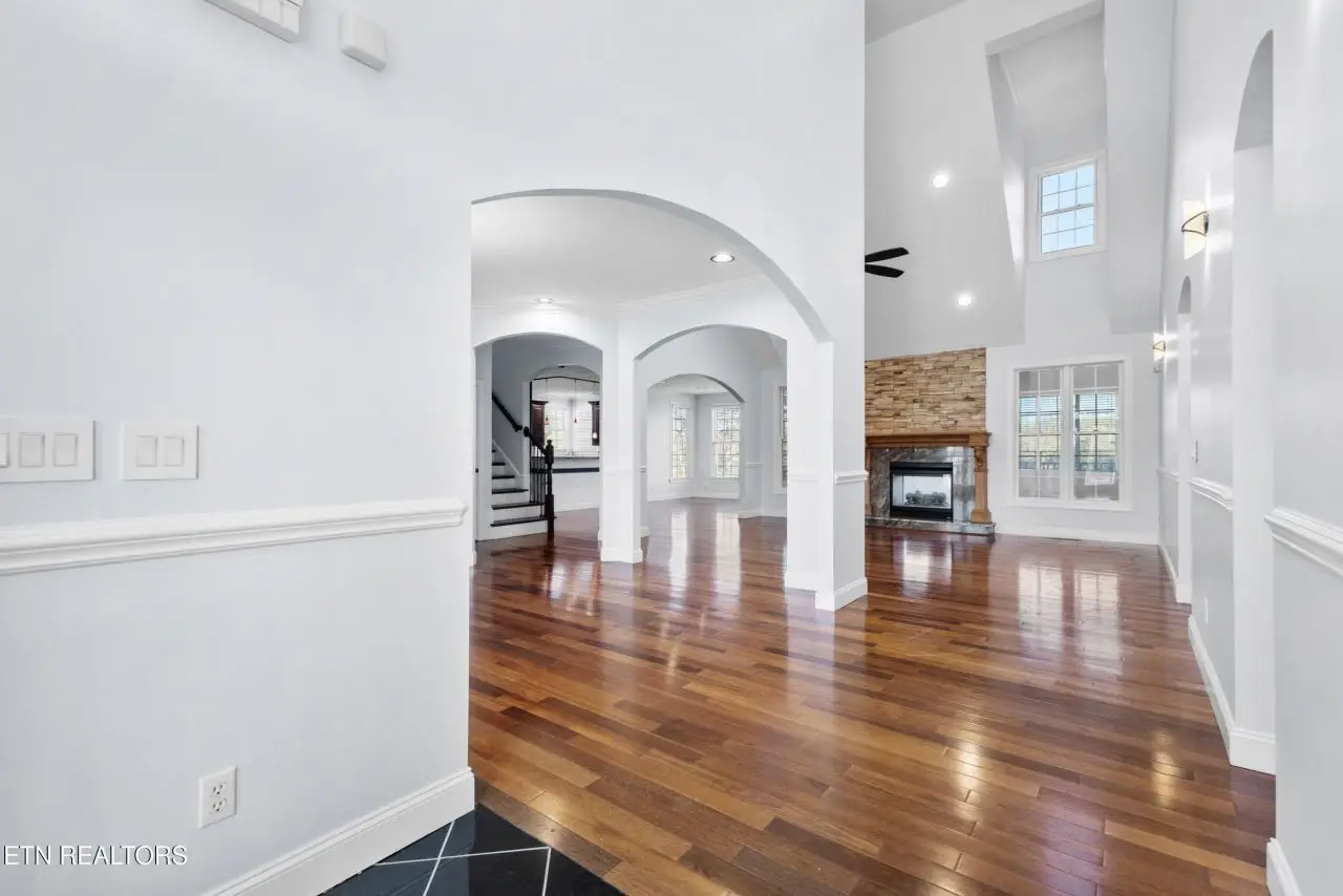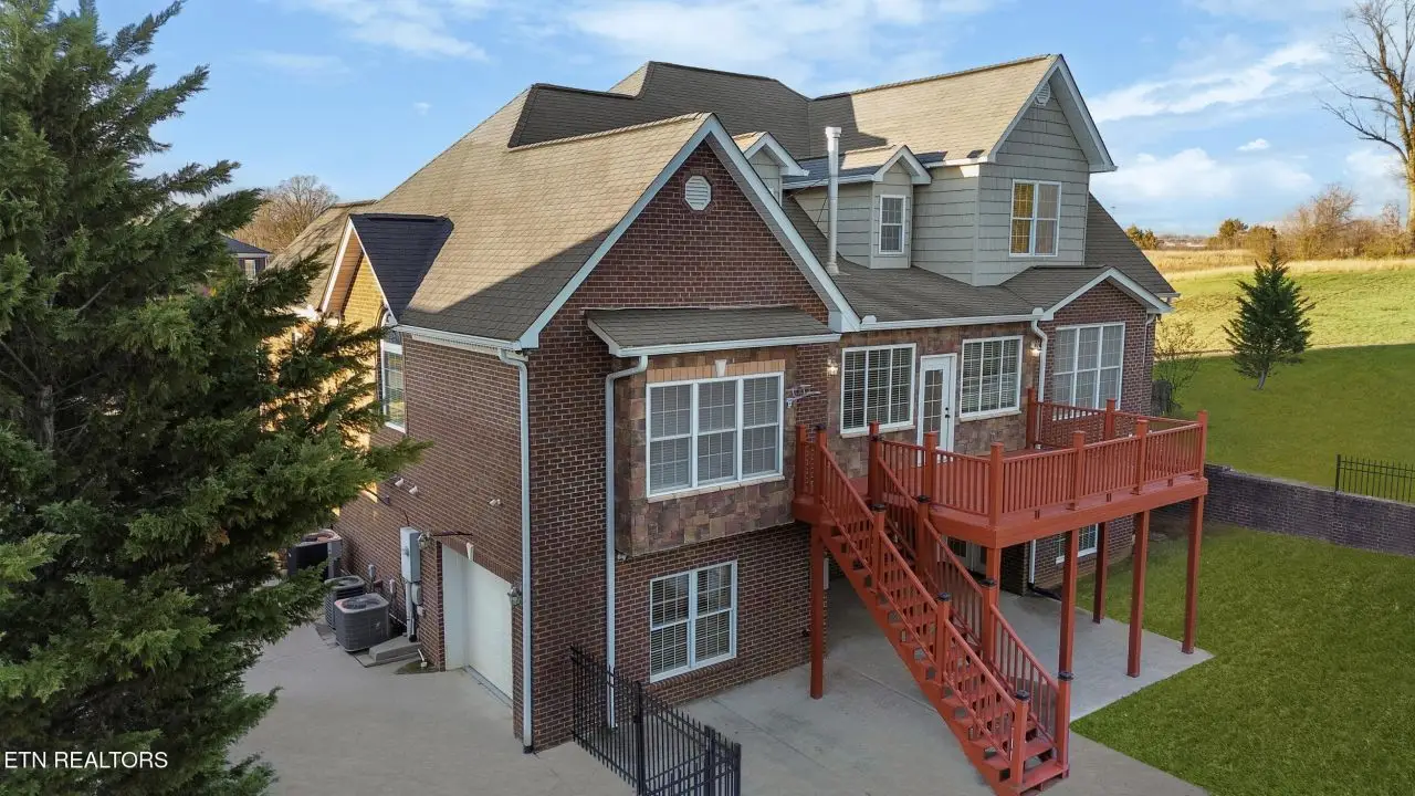 Welcome to this stunning 5-bedroom, 5-bathroom home located in the highly sought-after Cedar Ridge Subdivision. Situated just 45 minutes from downtown Knoxville, this property combines the charm of a peaceful neighborhood with the convenience of nearby amenities. Enjoy the beautiful disc golf and dog park located right across the street and the proximity to Merchants Greene, Morristown's newest hub for commercial and medical services, just five minutes away. This home is built to last, featuring thick poured concrete walls, craftsman-style trims, and exceptional attention to detail. The interior boasts soaring ceilings, including a dramatic 20'+ foyer and main room, over 10' ceilings in the master suite, and high ceilings throughout. The thoughtfully designed master bathroom includes a porcelain-tiled shower with heated flooring for ultimate comfort. There is an additional master suite upstairs. All bedrooms feature newly installed hardwood flooring, adding elegance and durability. The walk-out basement is a showstopper, offering abundant natural light, a theater room, a covered patio, a full bar, and even a panic room for added security. Recent updates completed by the prior owners include luxury vinyl plank (LVP) flooring in the basement, fresh paint throughout, new porcelain tiles, modern appliances, and more. Additional upgrades include granite countertops throughout, stainless steel Whirlpool appliances, manifold cut-off Pex plumbing system, 2-year-old gas water heater, and HVAC system. This home is truly move-in ready, offering a rare combination of luxury, functionality, and modern updates. Don't miss your chance to own this exceptional property. Call today to schedule your private showing!