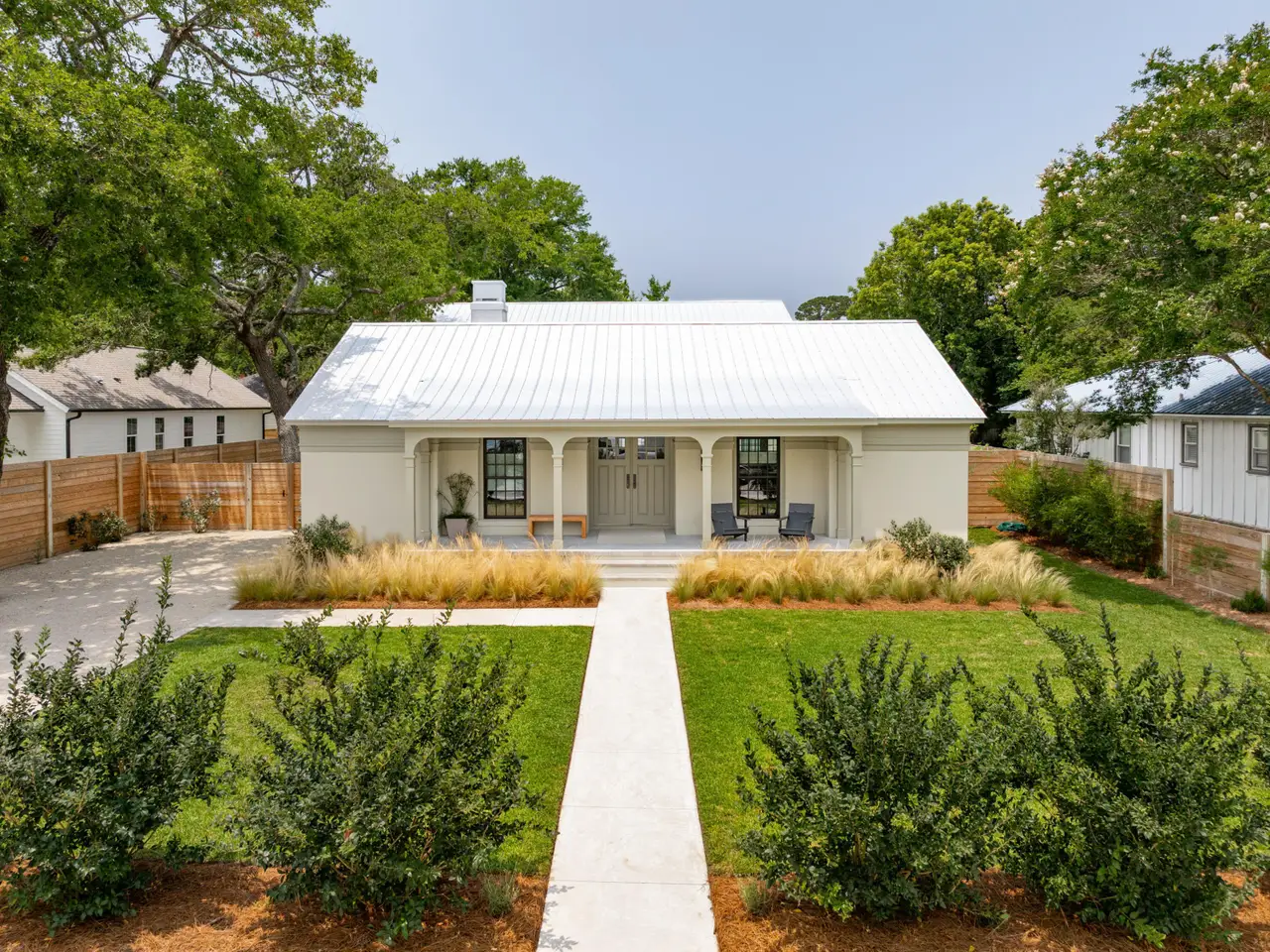 Set on a quiet cul-de-sac in Old Mt Pleasant is one of the finest custom homes you will find in the area. Subtle yet sophisticated, 922 Kincade offers bespoke luxury for those with refined taste. Built with proportion and flow in mind the home appears as a simple ranch in the front but soon the lines of landscaping and the curves of the porch arches draw you in closer and you notice a hyphened estate with multiple courtyards interconnected by sprawling living and entertaining spaces. Spanning nearly four thousand square feet and set on nearly a third of an acre this home has plenty of space but it really benefits from an abundance of privacy that the layout of the home on the oversize lot provides.With immediate curb appeal you can tell 922 Kincade isn't your average new build in Old Mt Pleasant. The stucco and custom sapele arches on the front blend perfectly with the metal roof and modern fixtures and lowcountry landscaping. The front portion of the home benefits from 10 inch reclaimed heart of pine floors, vaulted ceilings, and exquisite millwork throughout. This space serves as the primary entertaining area with the kitchen, living and dining room up front. The high end appliances, custom maple island, and designer grade light fixtures are gorgeous but don't overshadow the craftsmanship that went into the space where the architectural design and natural materials do most of the talking. This space is finished off with a scullery, a half bath and a small office. You have the option to entertain on the front porch, in the central courtyard, or flow back to the rear of the home giving the owners multiple options to choose from. The front house hyphens off down a gorgeous hallway towards the back house. This wide hallway accentuates the large courtyard to the right and another private entry and courtyard to the left. The hall is appointed with concrete floors and lots of glass giving the space a moody and dramatic feel with the natural materials benefitting from the sun pouring through. The flow of this space from front to back and side to side is what sets it apart. Once you are in the back house you have a more relaxed family room / play room with access to a rear courtyard. The first floor also benefits from 2 bedrooms and a central laundry. Upstairs you will find the spacious master bedroom as well as another guest room. All bedrooms have their own ensuite bathroom where the finishes and natural materials shine. Throughout the entire back house the exquisite millwork benefits nearly every wall while high end light fixtures, upgraded hardware, and custom iron railings tie in to give the space a modern feel yet keep the space warm and relaxing. Outside you have a 400 square foot shed that was built with the ability to convert it into a full mother in law suite or keep it as an "over built" shed and golf cart parking. This shed can be accessed from the back courtyard or the central courtyard. Both courtyards would be more than suitable to build a custom pool if you so choose. The central courtyard would be ideal for a pool as it benefits from a large covered porch with access from both the back and front houses as well as the connecting hallway making entertaining a breeze. The flow of the home can not be understated. Set up to entertain and expand and contract based on need the home has so many options to utilize for any activity. If you have an eye for detail and appreciate craftsmanship and architectural design, this home is the perfect match of sophistication and Lowcountry living at its best.