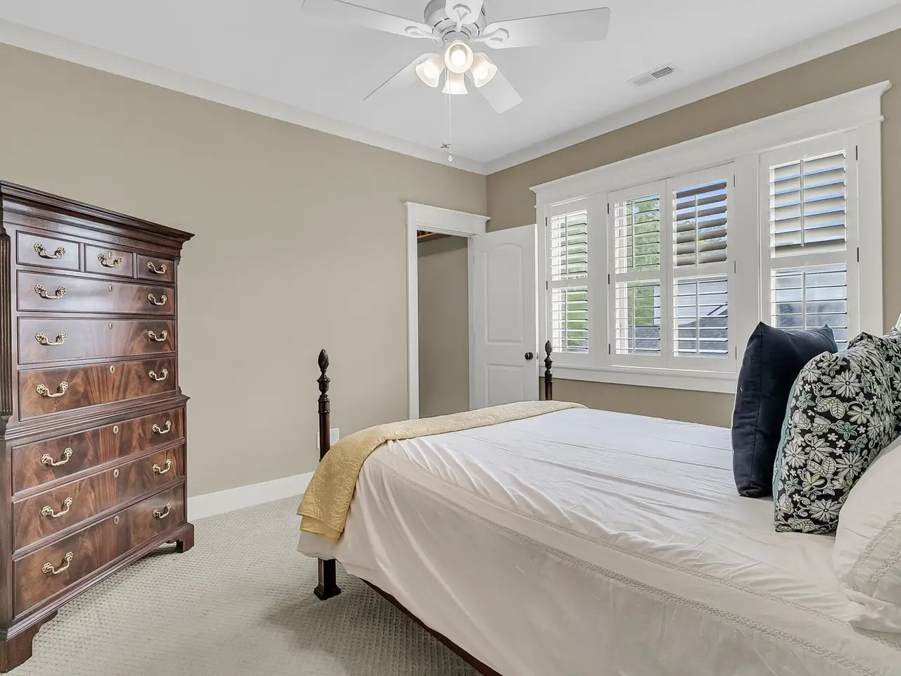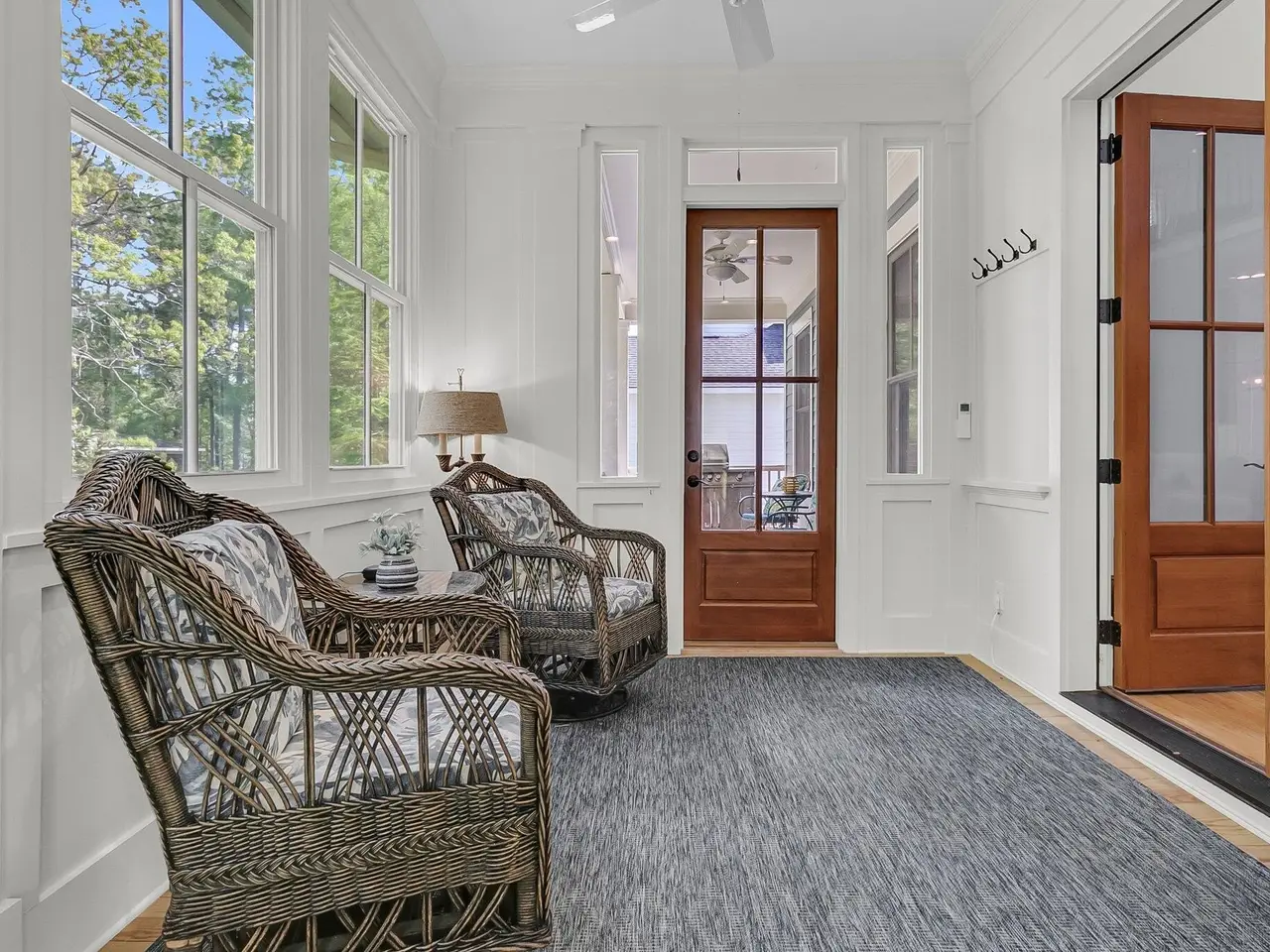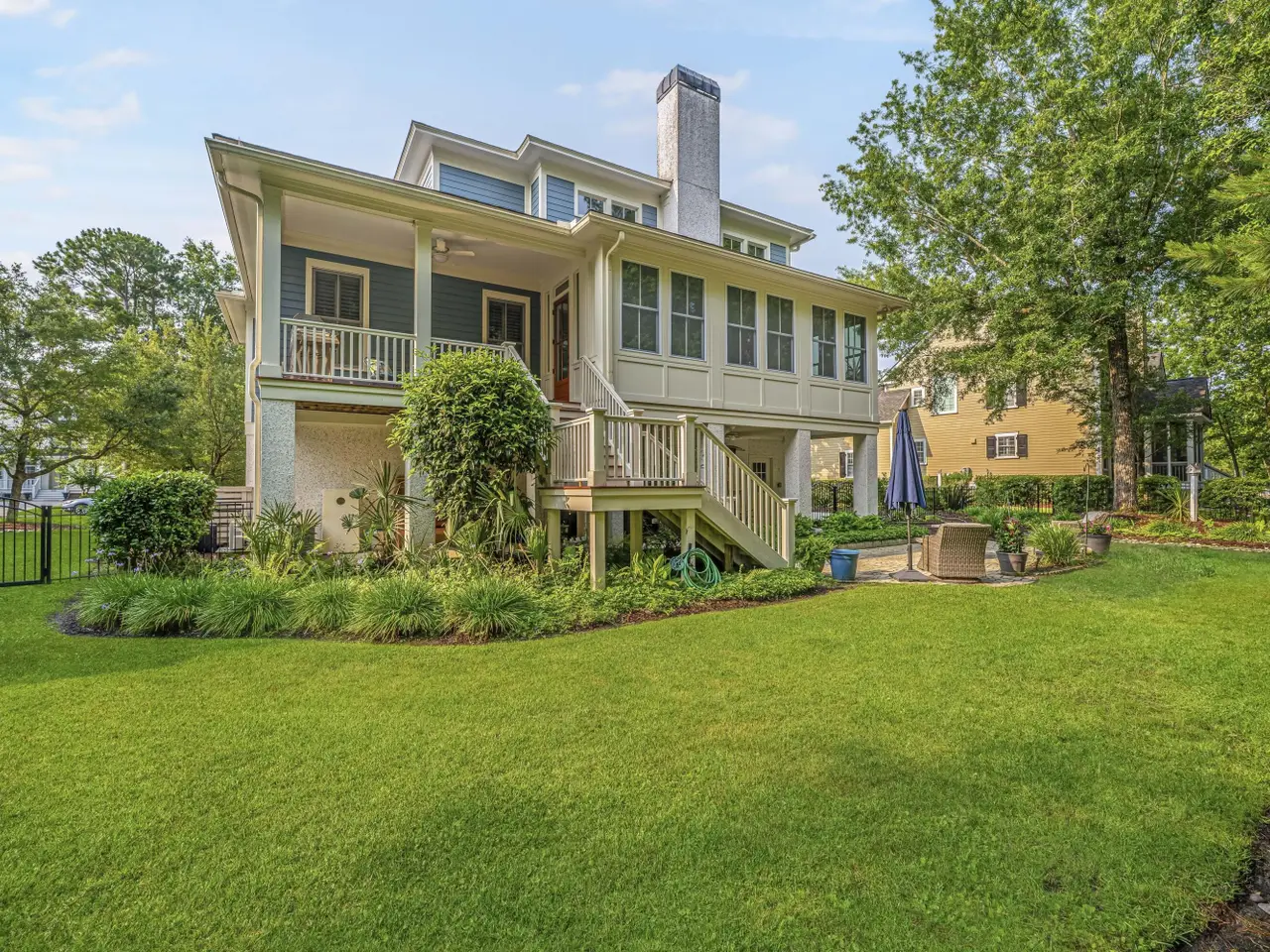 Custom-built by R.A. Smith Construction, this raised Southern-style home blends timeless craftsmanship with modern upgrades in one of Mount Pleasant's most desirable neighborhoods. Featuring approximately 3476 sq ft of well-designed living space, the home offers 4 bedrooms, 3.5 bathrooms, and a 3- garage. The main floor welcomes you with a grand front porch complete with a gas lantern and hurricane shutters. Inside, you'll find an elegant foyer, a formal wainscoted dining room, and a private office with French doors. Throughout the first floor are 10' ceilings, crown molding, wainscoting, and gleaming hardwood floors. The Great Room features a dramatic 19' cathedral ceiling, a gas fireplace with a raised marble hearth, and double set of solid red oak French doors that lead to alight-filled sunroom that has recently been converted into a stunning custom all-weather room for year-round enjoyment. The sunroom seamlessly transitions into an roofed open-air deck with gas line for grilling. The fully renovated 2024 kitchen is a chef's dream, equipped with a 48" Wolf dual fuel range with double ovens, Bosch refrigerator and dishwasher, quartz countertops, an oversized island with pendant lighting, a glass-front serving bar, and custom-built cherry cabinets with slide-out shelves. Adjacent to the kitchen is a spacious laundry room with space-saving pocket doors. There is also a half bath located on the main floor. The primary suite is located on the main floor and includes a large walk-in closet and a luxurious tiled bath with dual vanities, a sunken garden tub, a separate shower with dual heads, and a private water closet. Upstairs features a loft area perfect for a media room or retreat, along with three large bedrooms, two full baths (including one ensuite), walk-in closets, and a dedicated storage room. The fully enclosed cinder block garage spans the entire first-floor footprint and can accommodate up to 5 vehicles. Within the garage there is also an additional enclosed storage room. A full bath rough-in is already in place, allowing for future expansion. Additional highlights include 9' ceilings upstairs, 8' solid core interior doors on the main level, upgraded decorative hardware throughout, and a heated and cooled wine room perfect for collectors and entertainers alike. Park West's resort-style amenities includes a clubhouse, 2 pools; one is zero entry, sand volleyball court, 6 tennis courts, walk/jog trails and play park. Award winning public schools are within the neighborhood as well as shopping, dining, recreational fields, professional offices, grocery, and a gym. Downtown Charleston and the beaches are only 20-25 min away