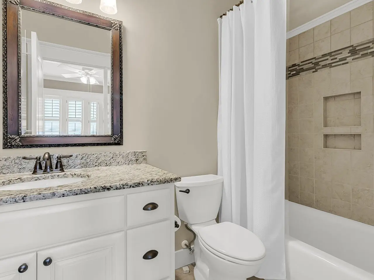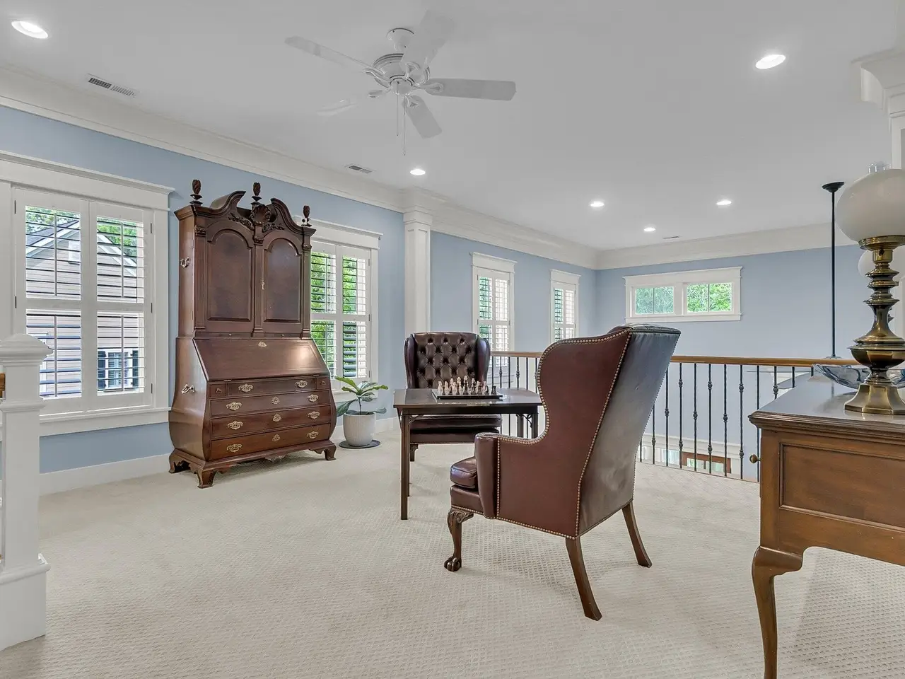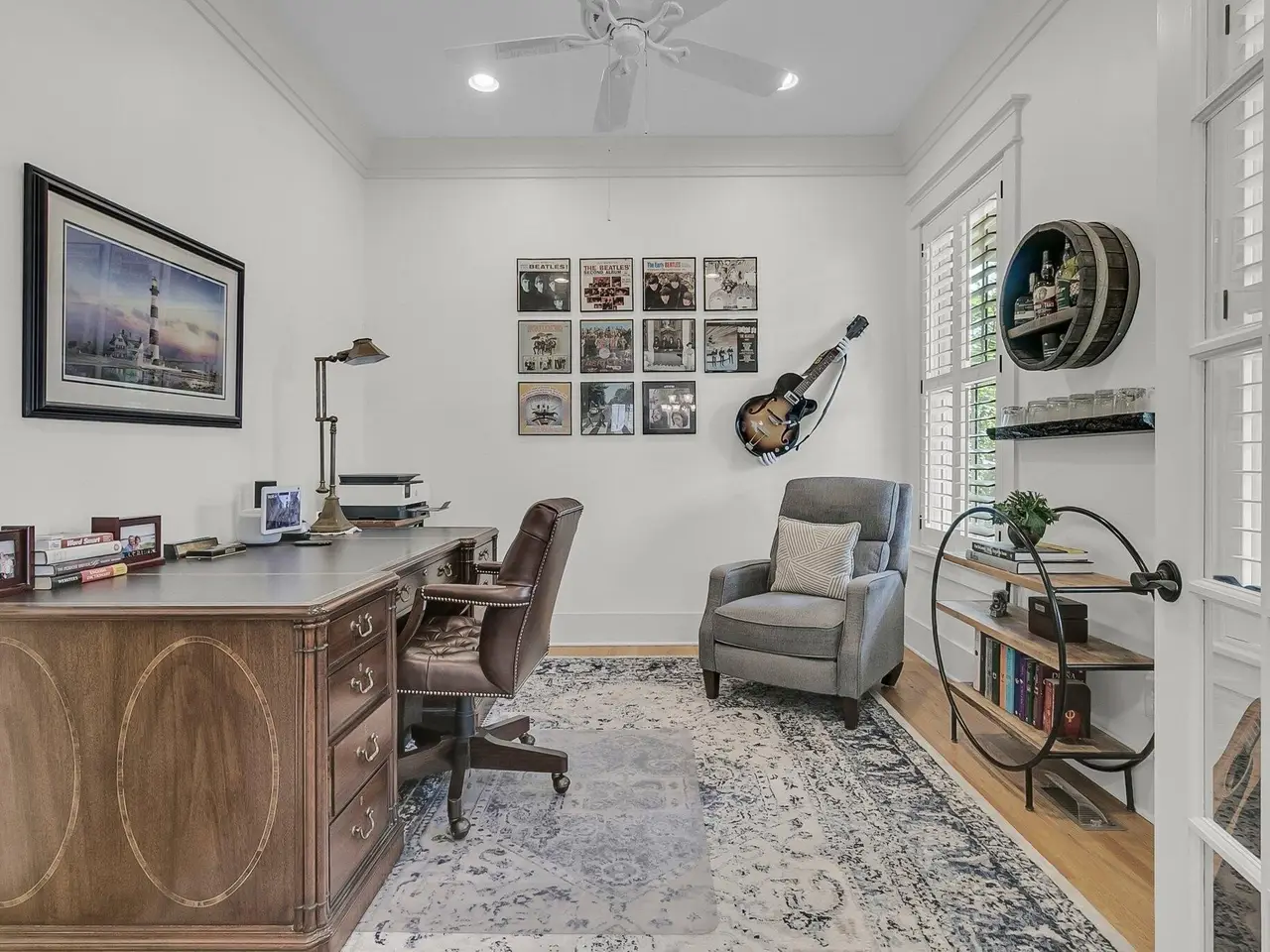 Custom-built by R.A. Smith Construction, this raised Southern-style home blends timeless craftsmanship with modern upgrades in one of Mount Pleasant's most desirable neighborhoods. Featuring approximately 3476 sq ft of well-designed living space, the home offers 4 bedrooms, 3.5 bathrooms, and a 3- garage. The main floor welcomes you with a grand front porch complete with a gas lantern and hurricane shutters. Inside, you'll find an elegant foyer, a formal wainscoted dining room, and a private office with French doors. Throughout the first floor are 10' ceilings, crown molding, wainscoting, and gleaming hardwood floors. The Great Room features a dramatic 19' cathedral ceiling, a gas fireplace with a raised marble hearth, and double set of solid red oak French doors that lead to alight-filled sunroom that has recently been converted into a stunning custom all-weather room for year-round enjoyment. The sunroom seamlessly transitions into an roofed open-air deck with gas line for grilling. The fully renovated 2024 kitchen is a chef's dream, equipped with a 48" Wolf dual fuel range with double ovens, Bosch refrigerator and dishwasher, quartz countertops, an oversized island with pendant lighting, a glass-front serving bar, and custom-built cherry cabinets with slide-out shelves. Adjacent to the kitchen is a spacious laundry room with space-saving pocket doors. There is also a half bath located on the main floor. The primary suite is located on the main floor and includes a large walk-in closet and a luxurious tiled bath with dual vanities, a sunken garden tub, a separate shower with dual heads, and a private water closet. Upstairs features a loft area perfect for a media room or retreat, along with three large bedrooms, two full baths (including one ensuite), walk-in closets, and a dedicated storage room. The fully enclosed cinder block garage spans the entire first-floor footprint and can accommodate up to 5 vehicles. Within the garage there is also an additional enclosed storage room. A full bath rough-in is already in place, allowing for future expansion. Additional highlights include 9' ceilings upstairs, 8' solid core interior doors on the main level, upgraded decorative hardware throughout, and a heated and cooled wine room perfect for collectors and entertainers alike. Park West's resort-style amenities includes a clubhouse, 2 pools; one is zero entry, sand volleyball court, 6 tennis courts, walk/jog trails and play park. Award winning public schools are within the neighborhood as well as shopping, dining, recreational fields, professional offices, grocery, and a gym. Downtown Charleston and the beaches are only 20-25 min away